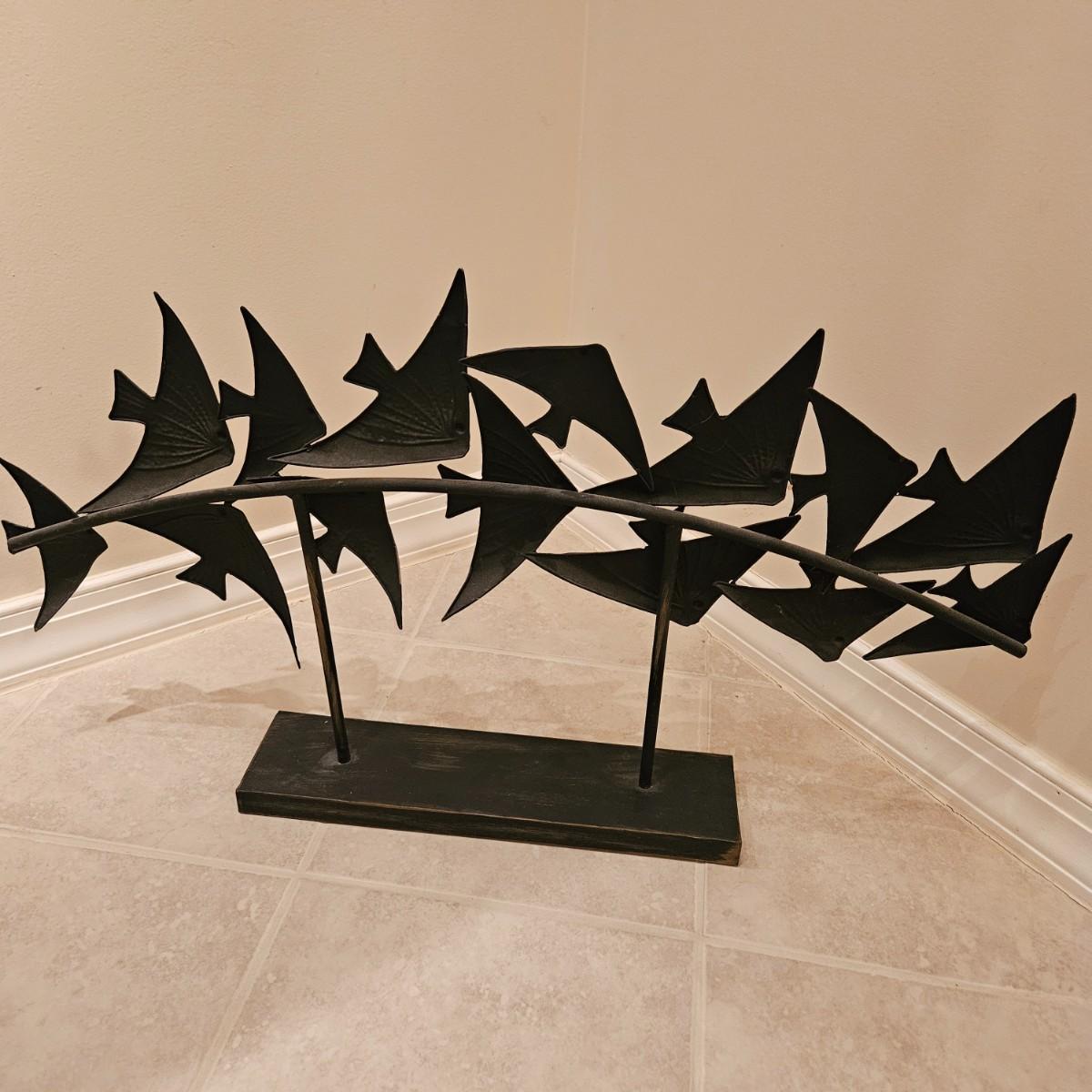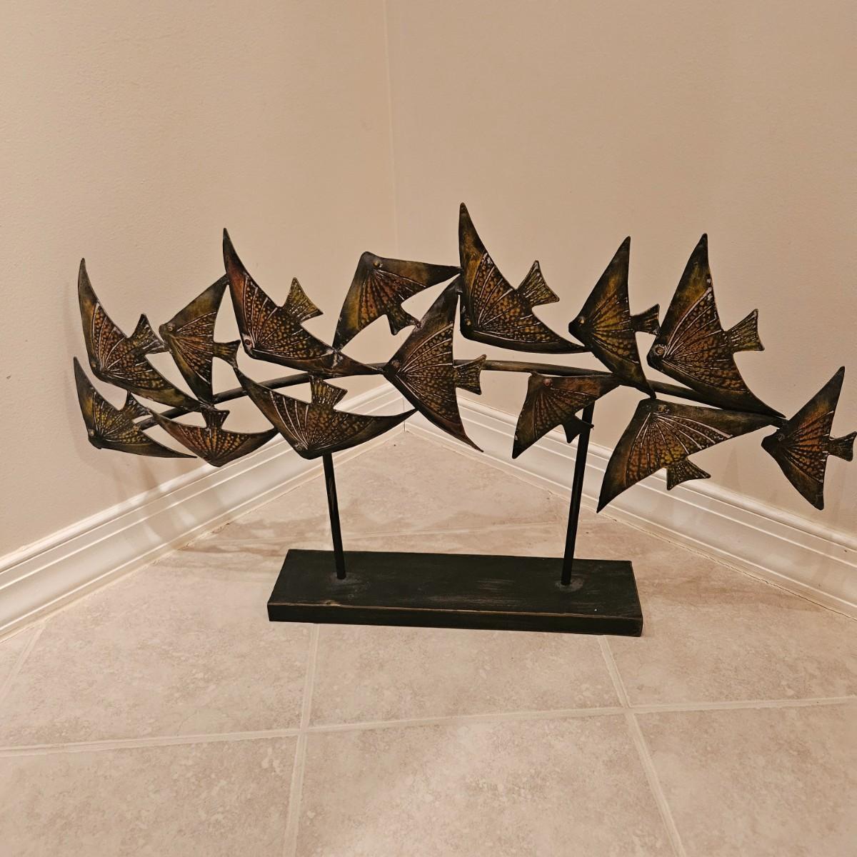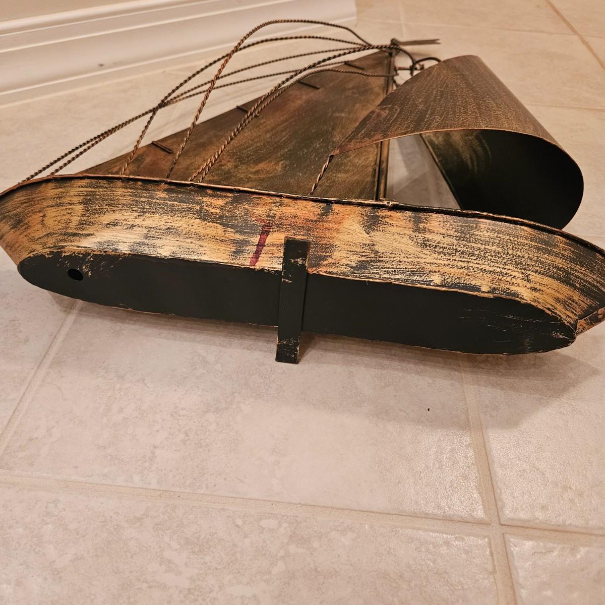 A pair metal art pieces that have a copper like finish. The ship measures approximately 20" x 4" x 27"H. Local pickup only