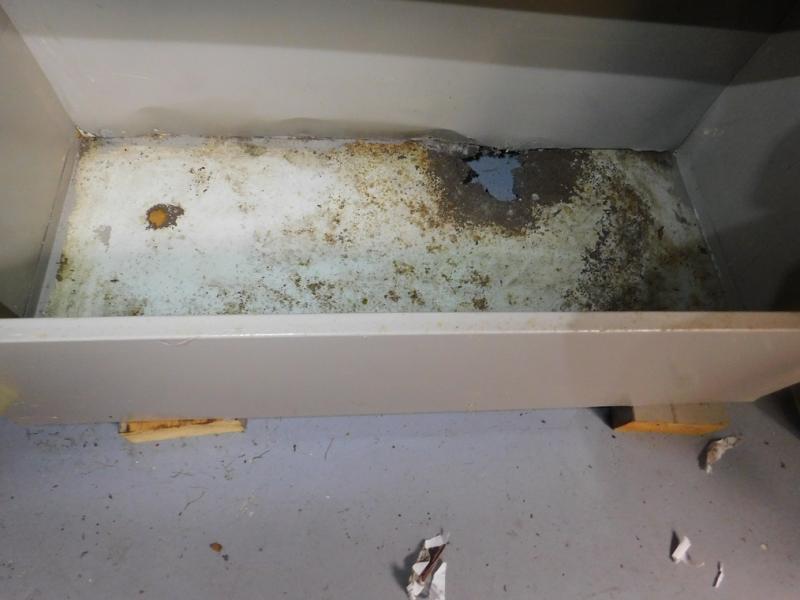 Metal Shop Cabinet has a rust through area on bottom shelf. Otherwise, is capable of useful storage.