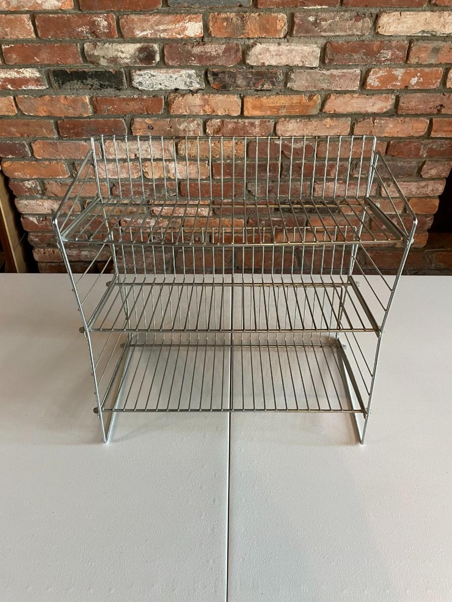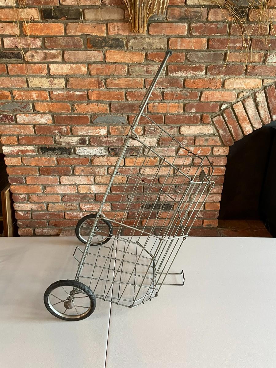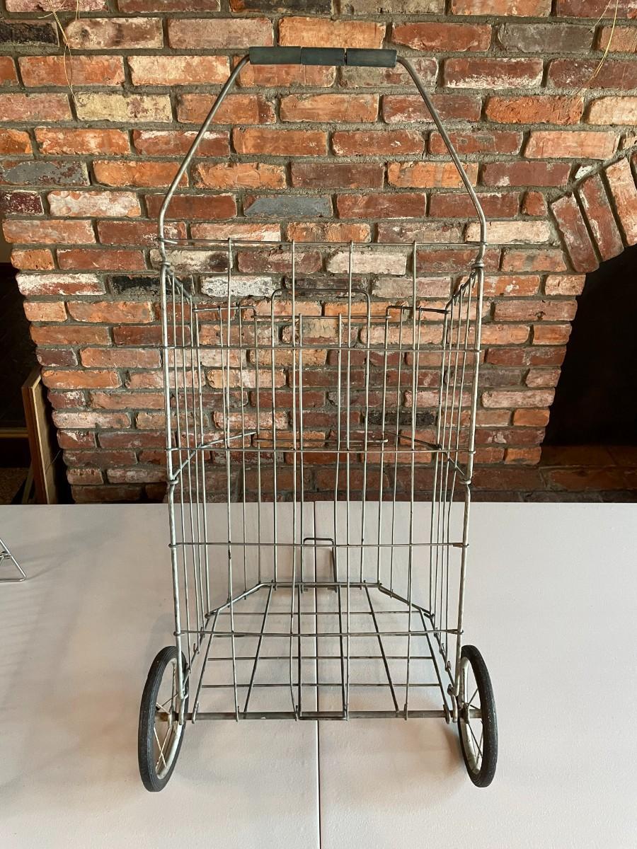 Lot includes 1 small metal shopping cart and 1 small metal rack.Cart: 16L x 12w x 38h