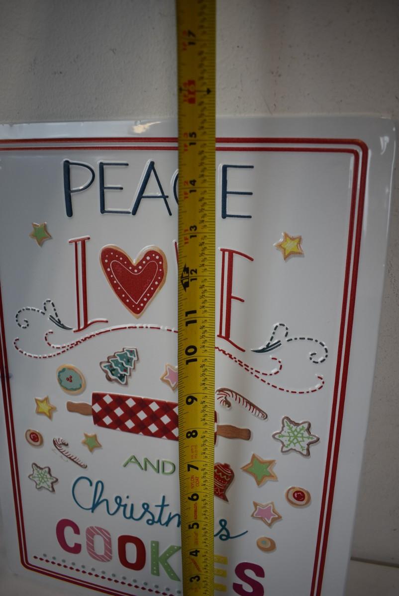 Metal Sign 12x16 "Peace Love & Christmas Cookies" embossed, marker on left side