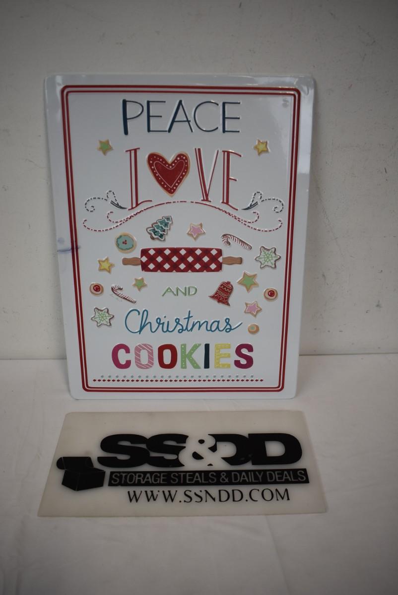 Metal Sign  12x16 "Peace Love & Christmas Cookies" embossed, marker on left side