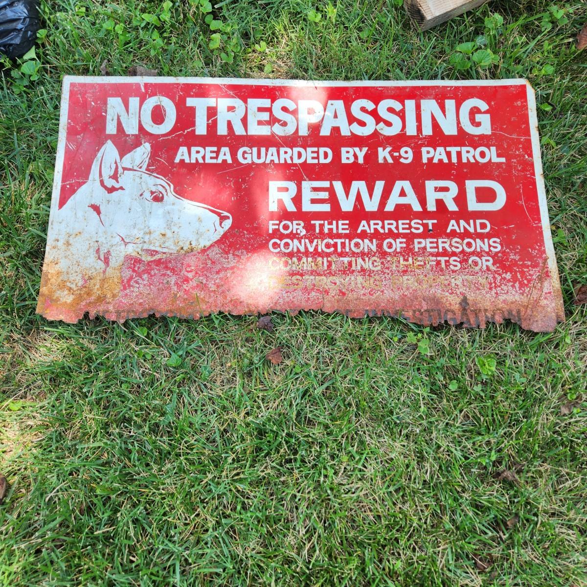 Metal Sign No Trespassing Guarded by K-9 Patrol Garage Man Cave Deco