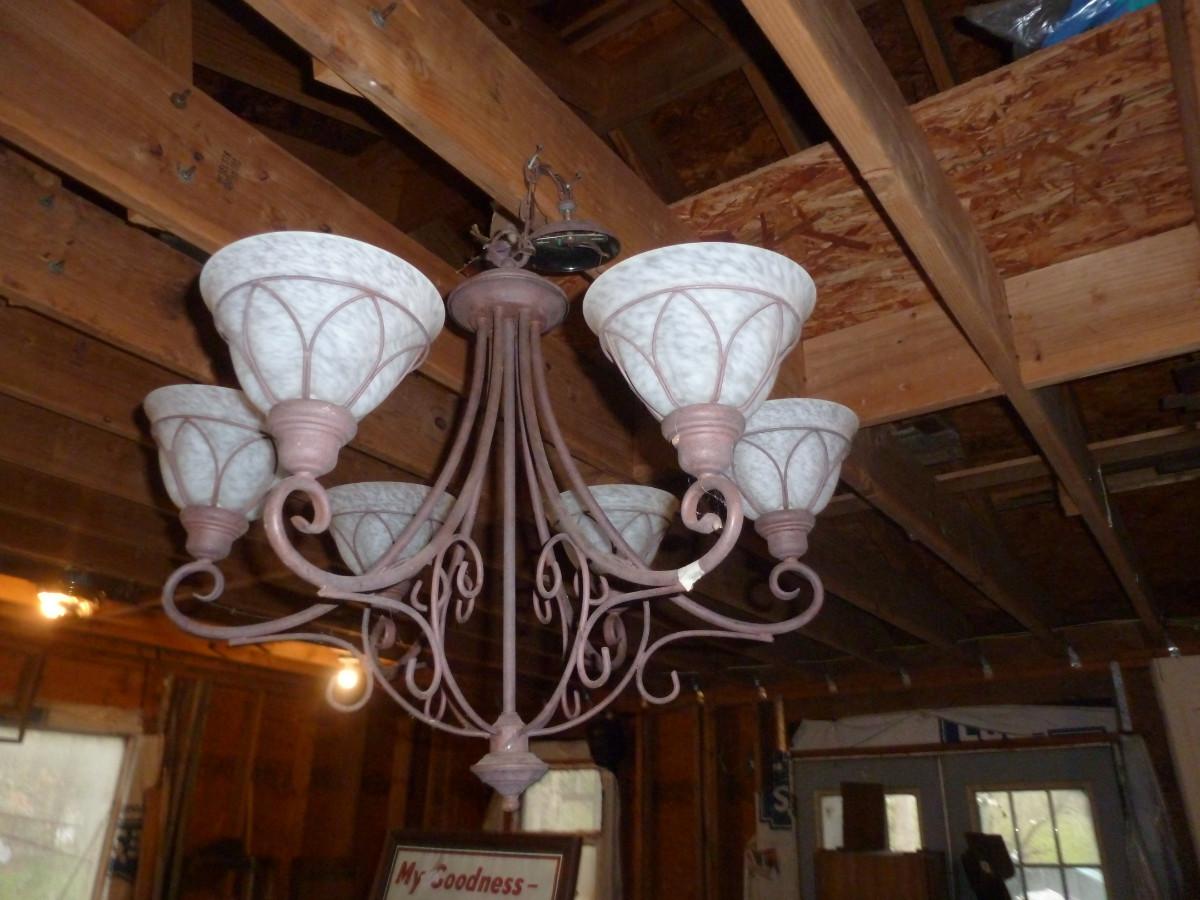 Metal Six Light Chandelier. Measures approx 29" in diameter, 26" tall.