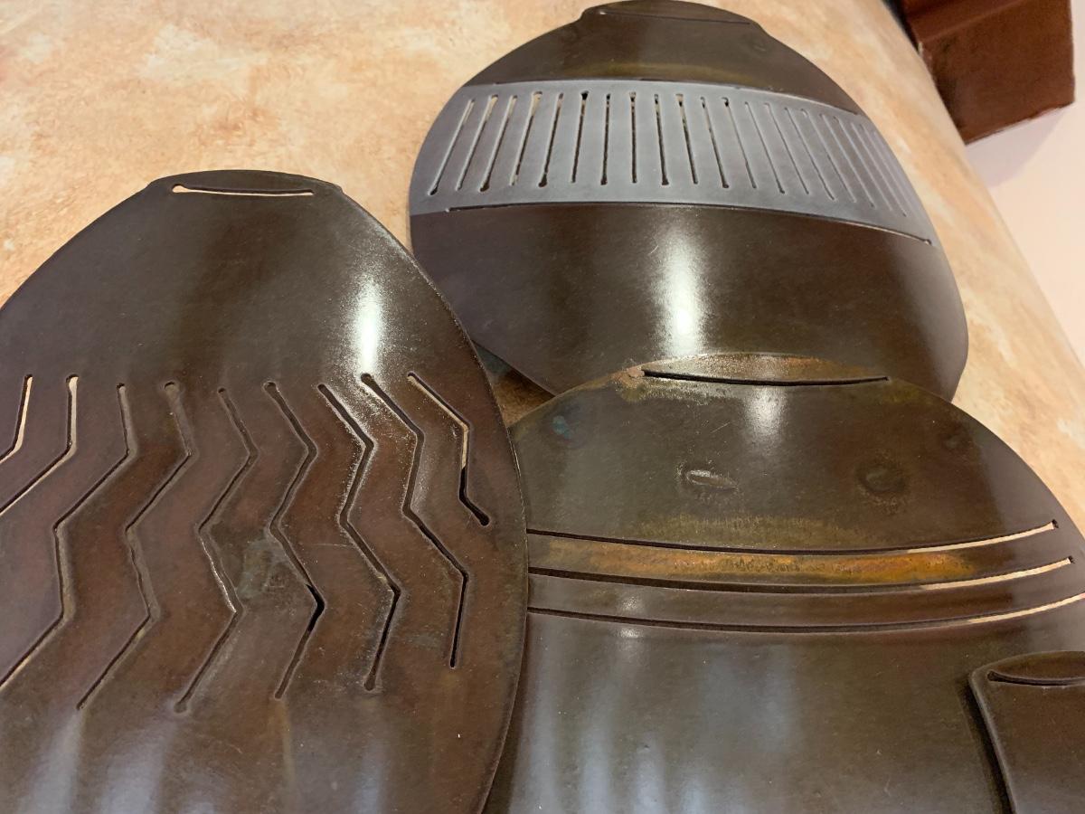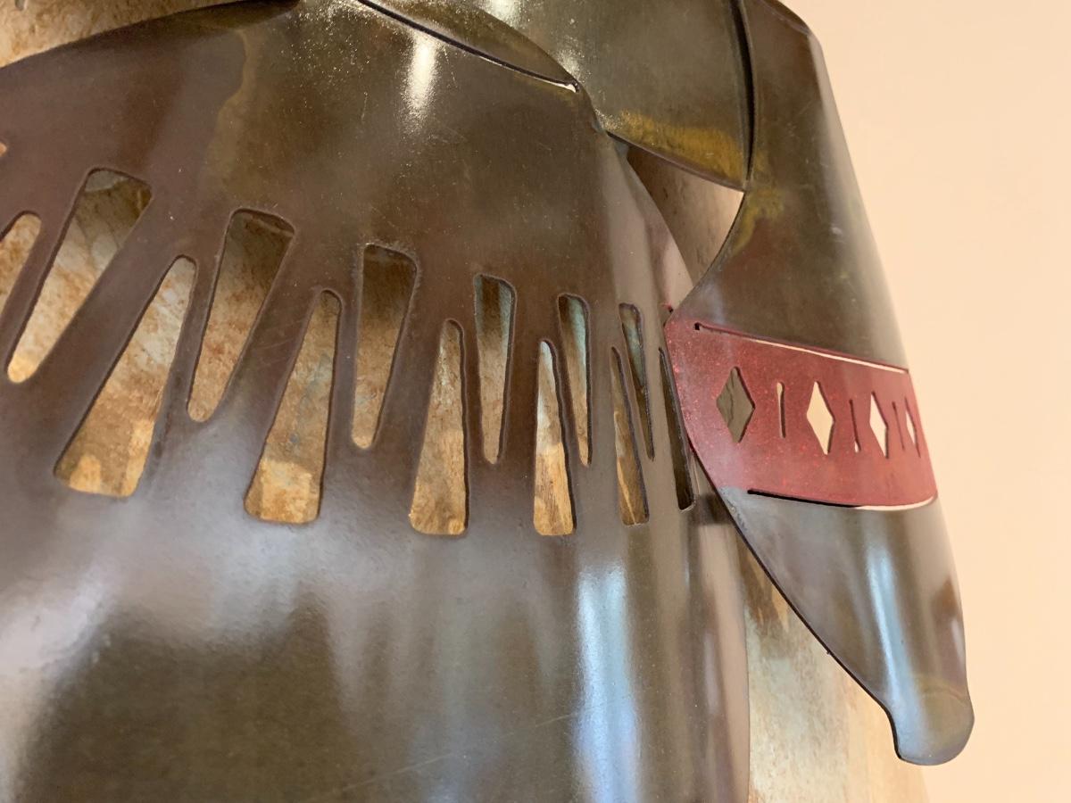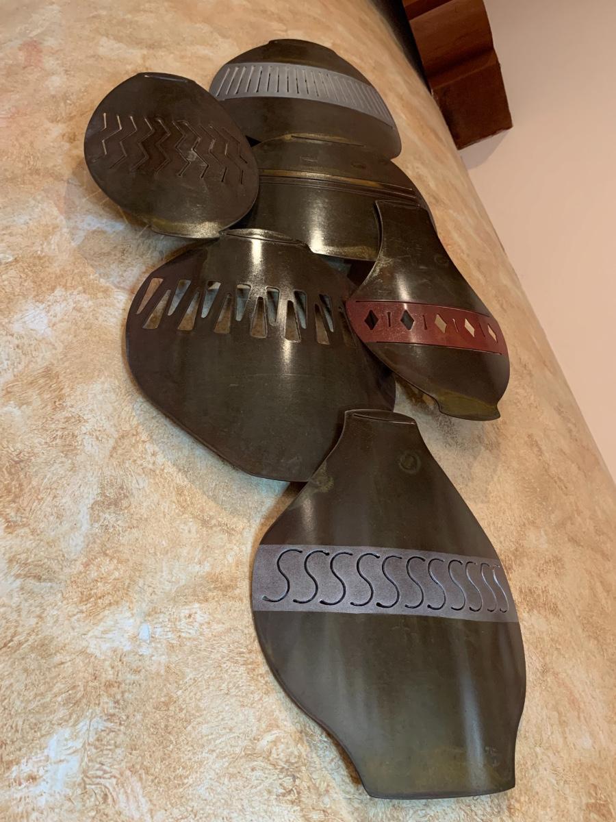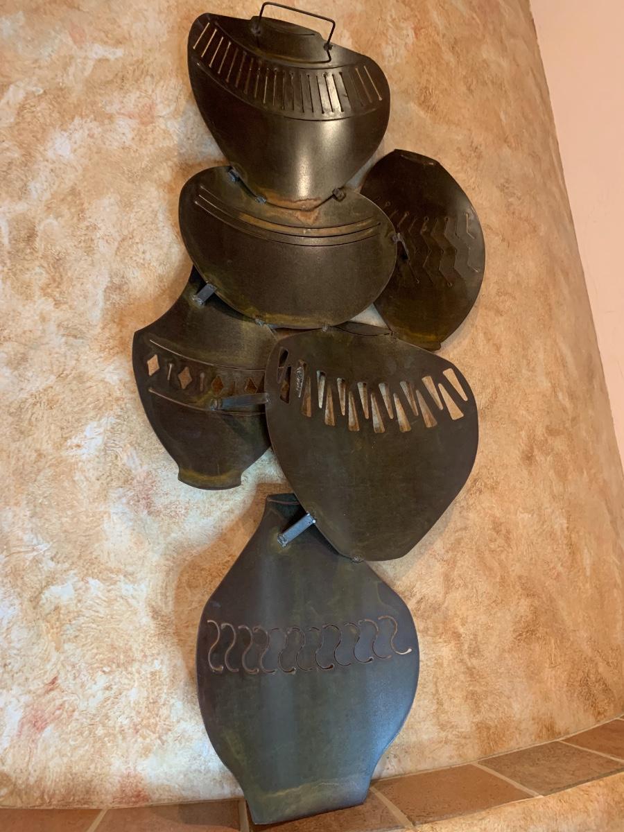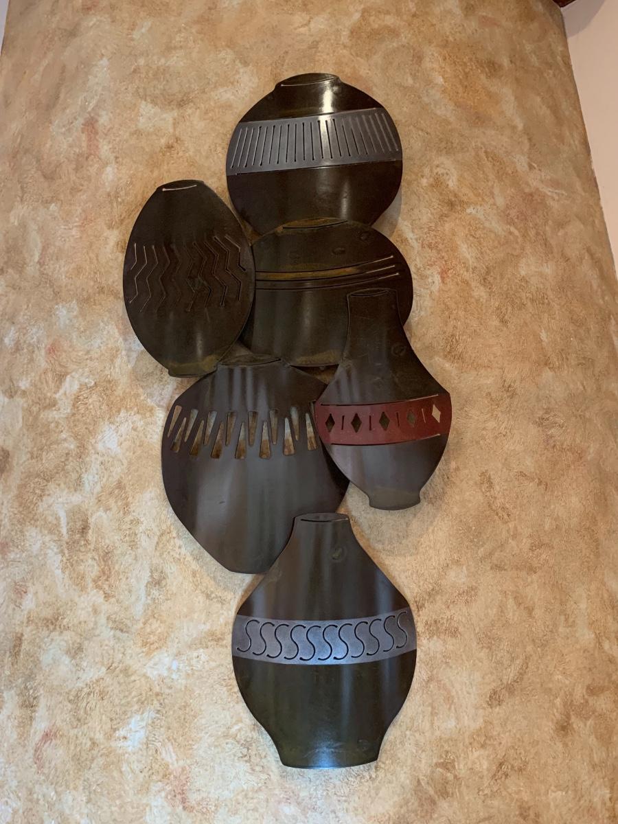 Metal Southwest art in fantastic shape with wall hanger. (39” tall) this is a large piece and very narrow.