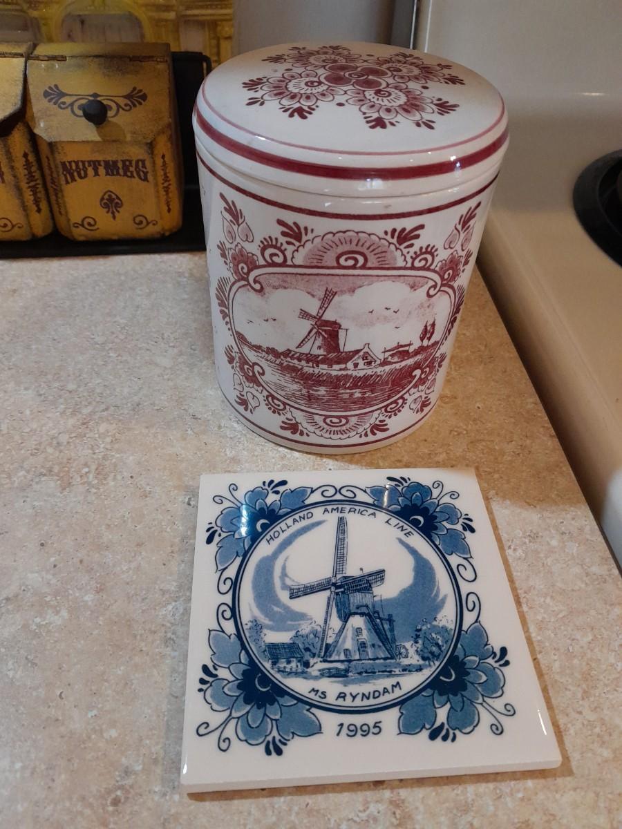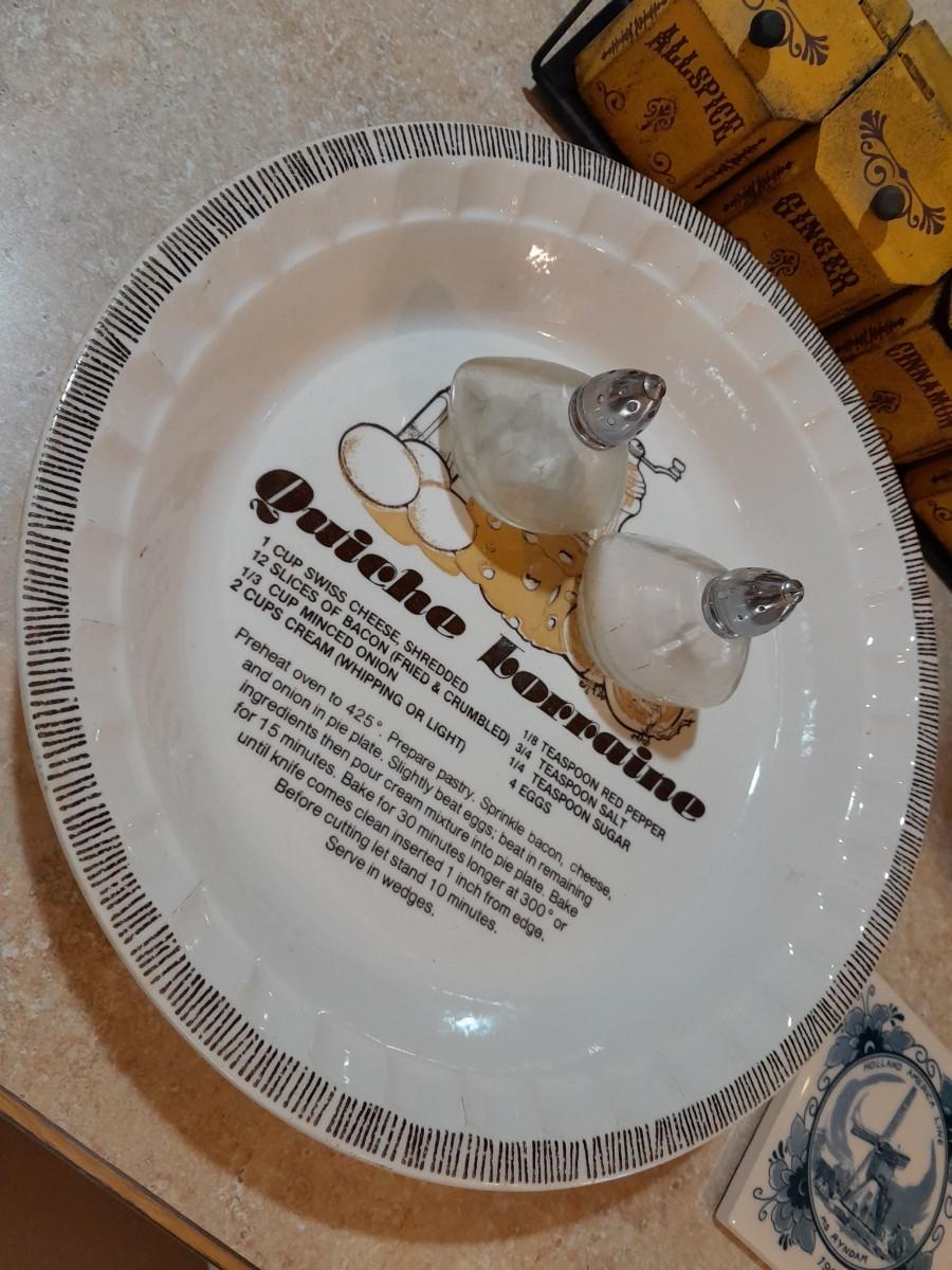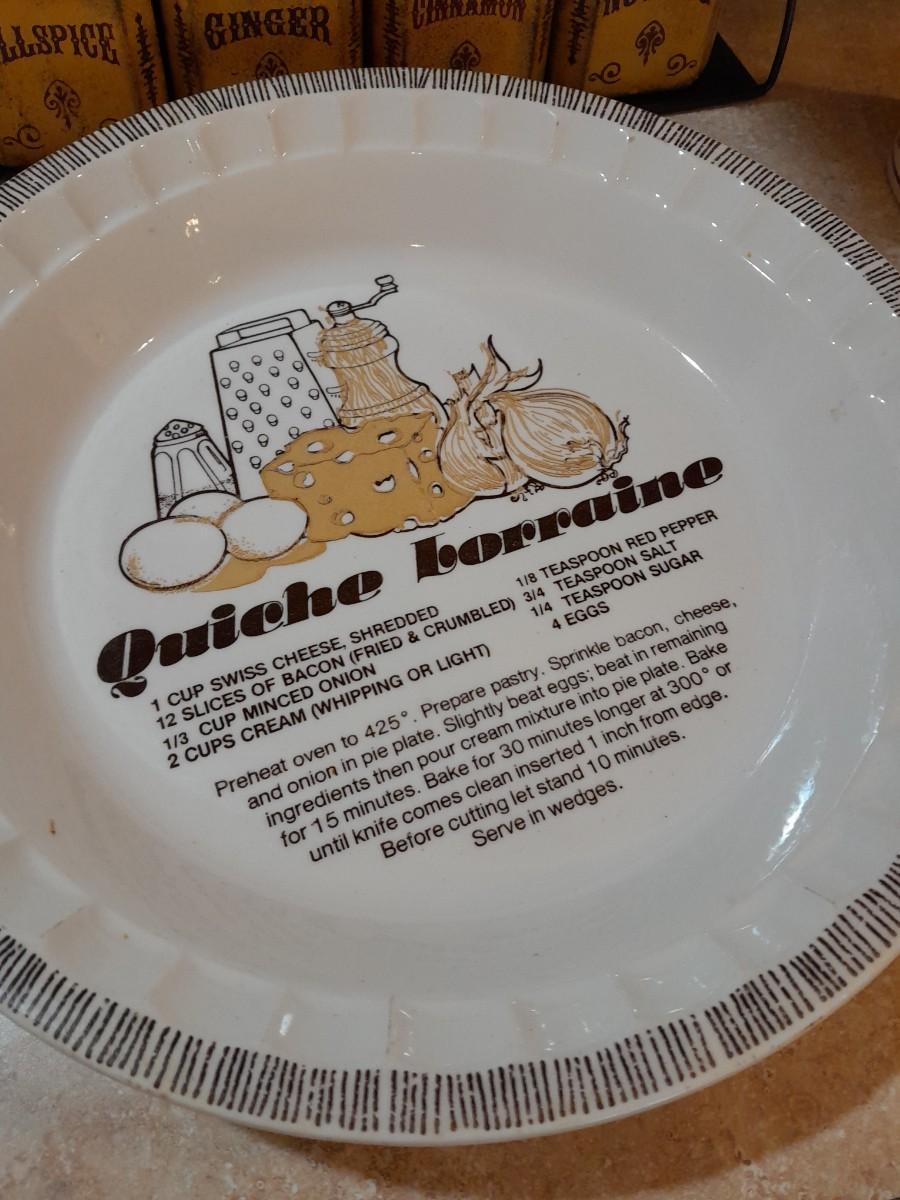 METAL SPICE CONTAINERS, VINTAGE HOUSE SHAPED COOKIE JAR, QUICHE RECIPE PLATE