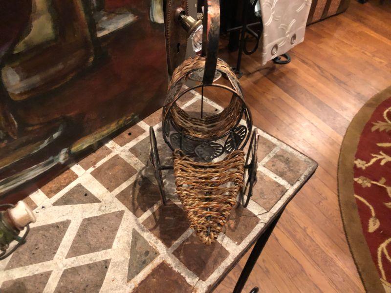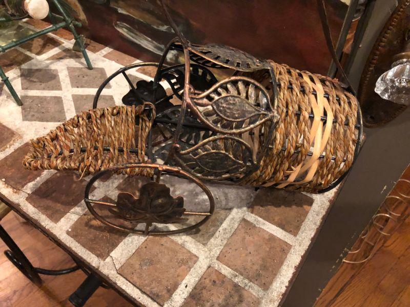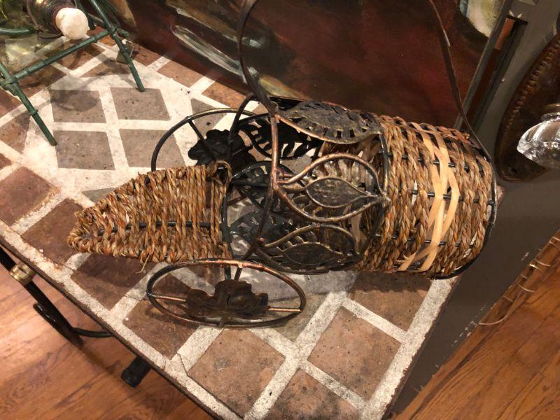 METAL & STRAW WINE HOLDER WITH WHEELS