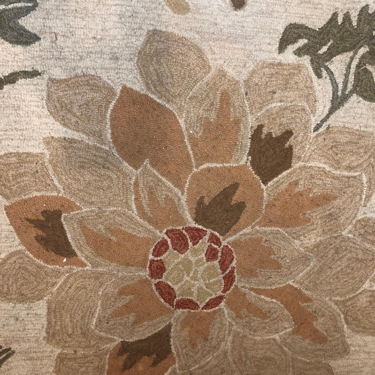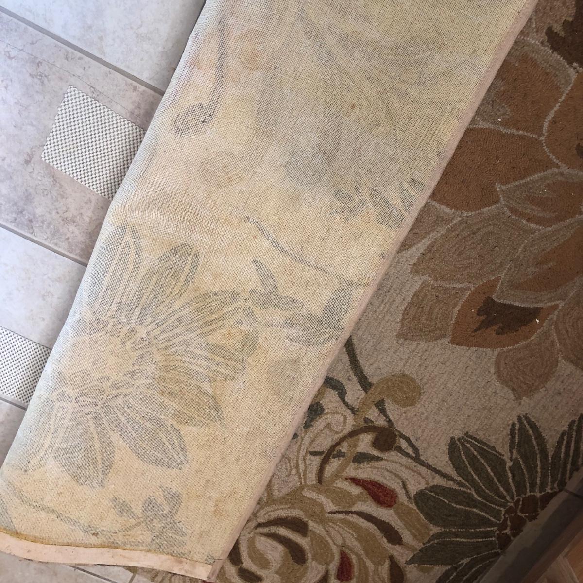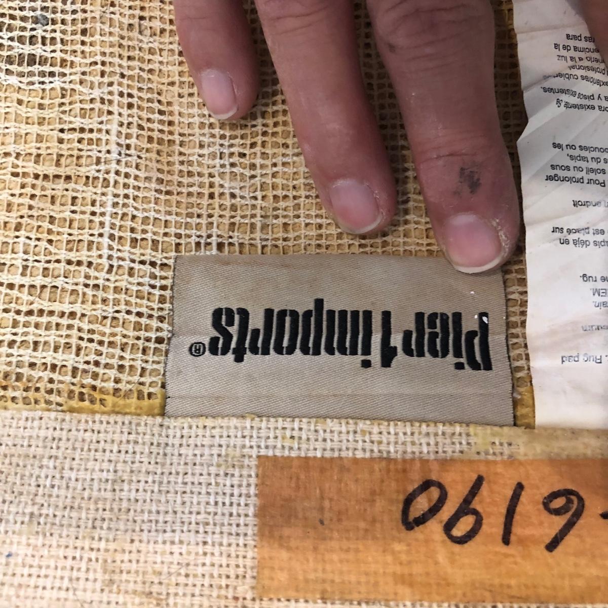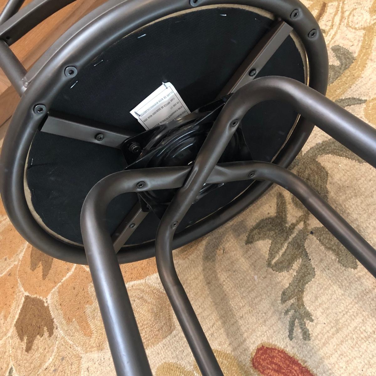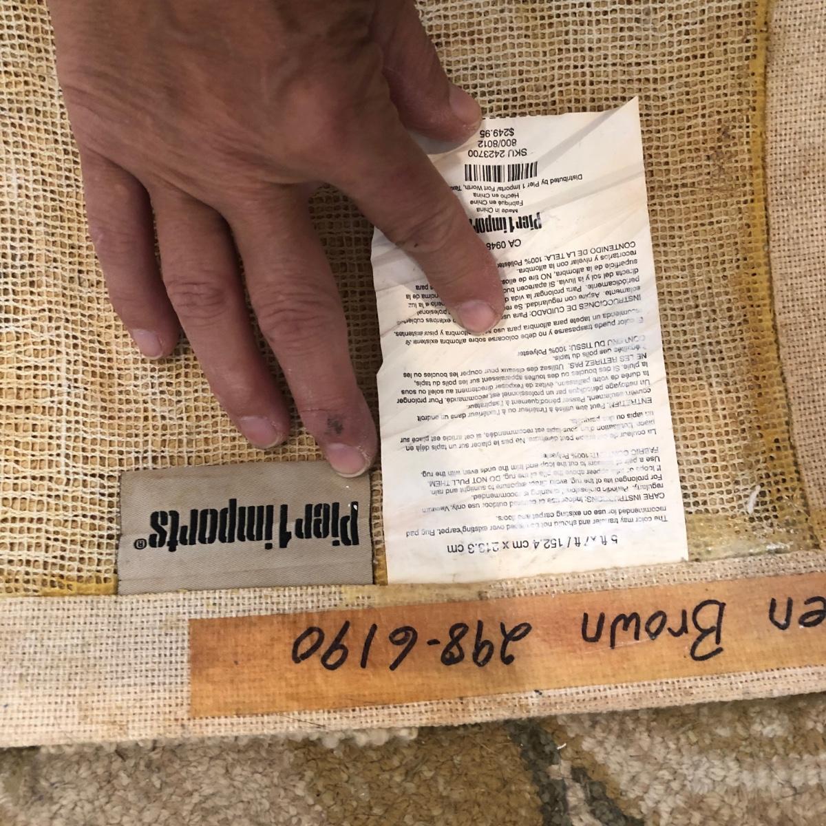 This lot includes a Pier import rug and metal bar stool with a suede fabric seat. The seat on the barstool has a faint stain. The stool measures 18” x 17.5” x 37”. The seat is 23.5” high. The rug is 5’ x 7’. Local pick up only.