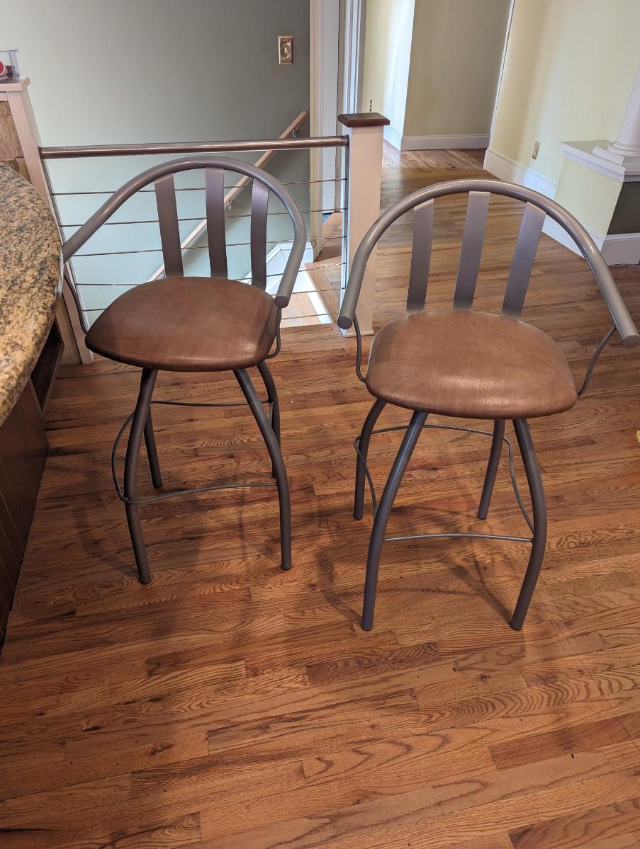 Pair of Metal Swivel Bar Stools with Padded Seats