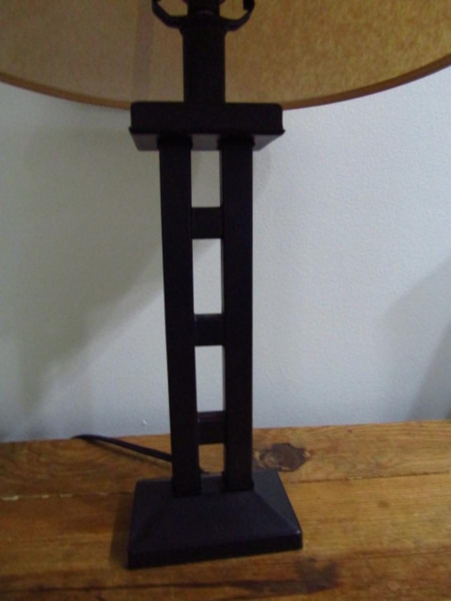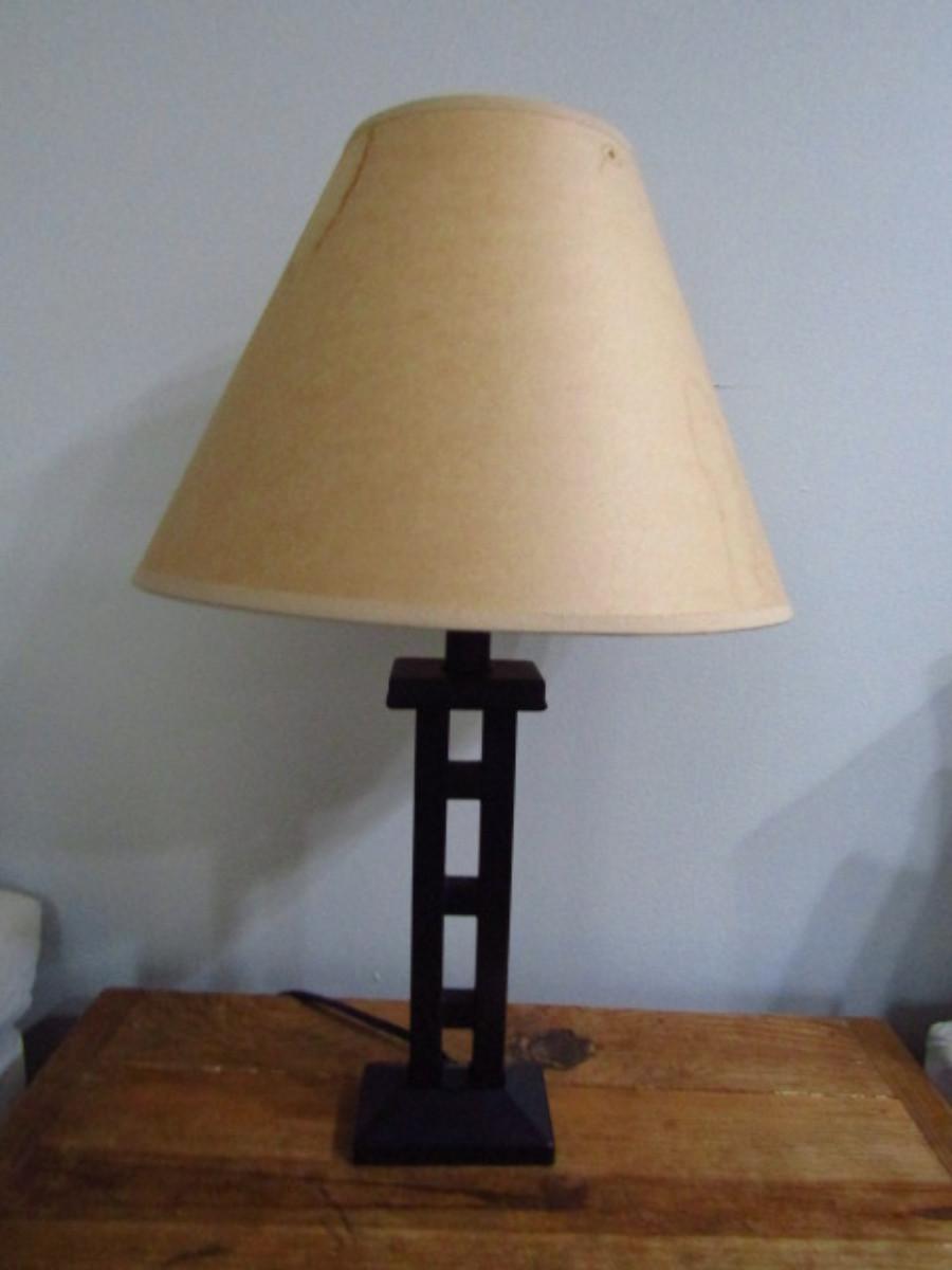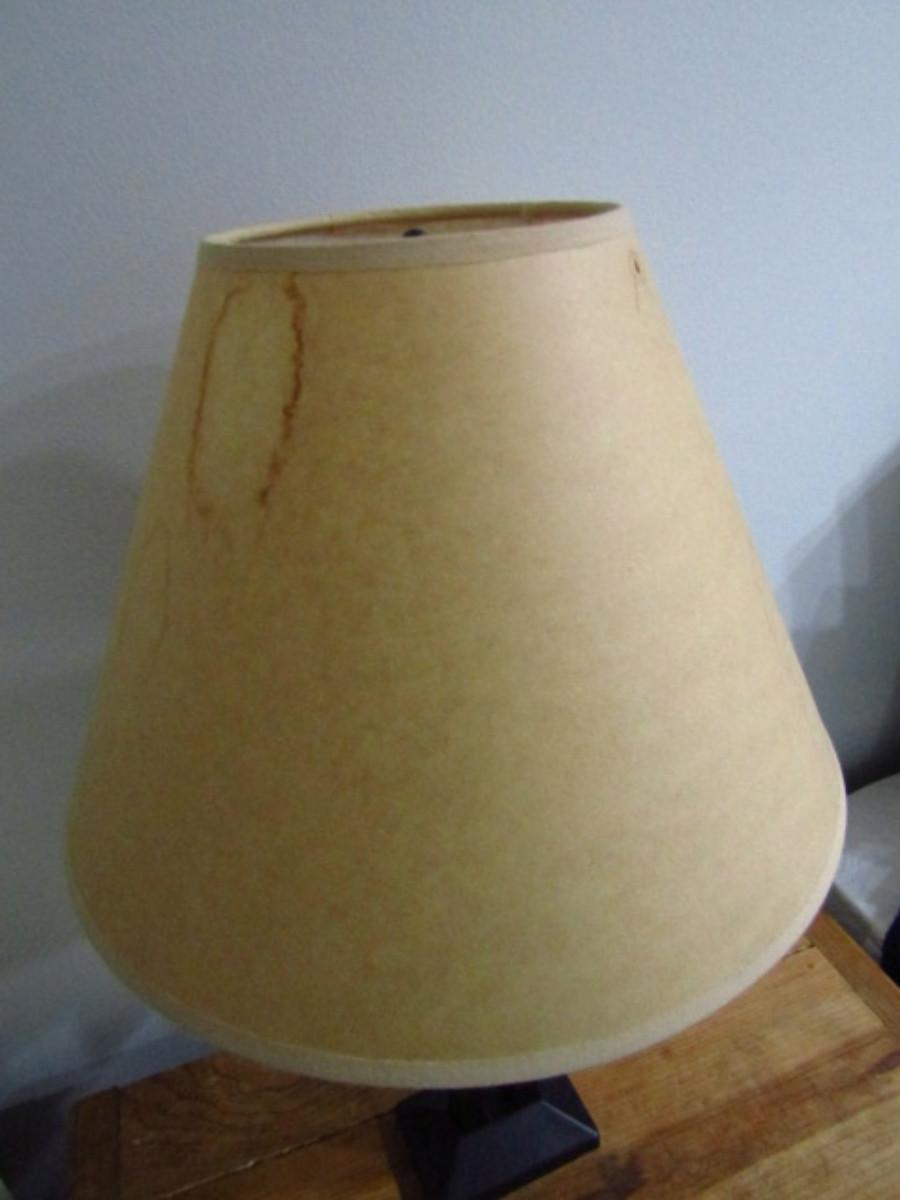 Metal Table Top Lamp with Shade (Upstairs). Approx 22" tall. Please see all pictures- some staining on shade.