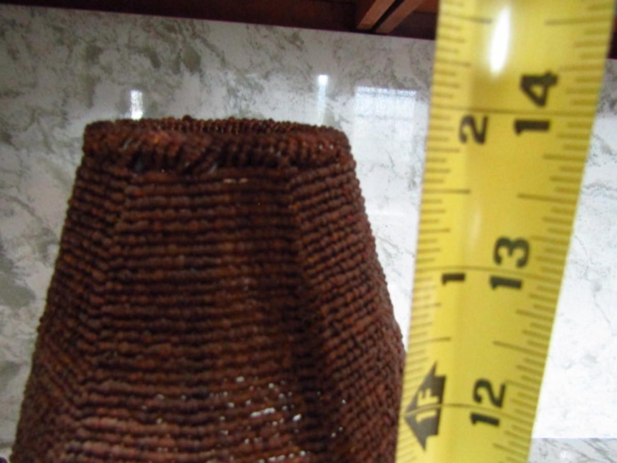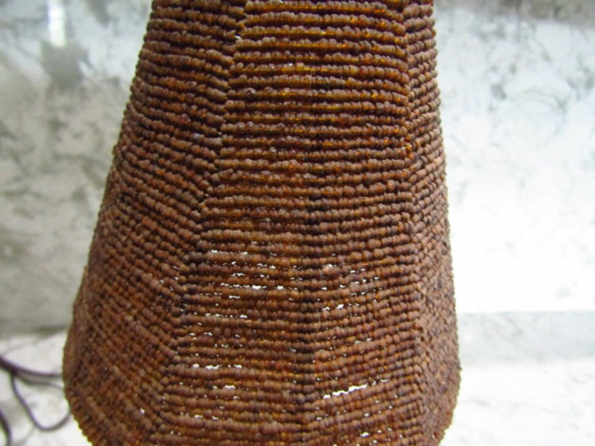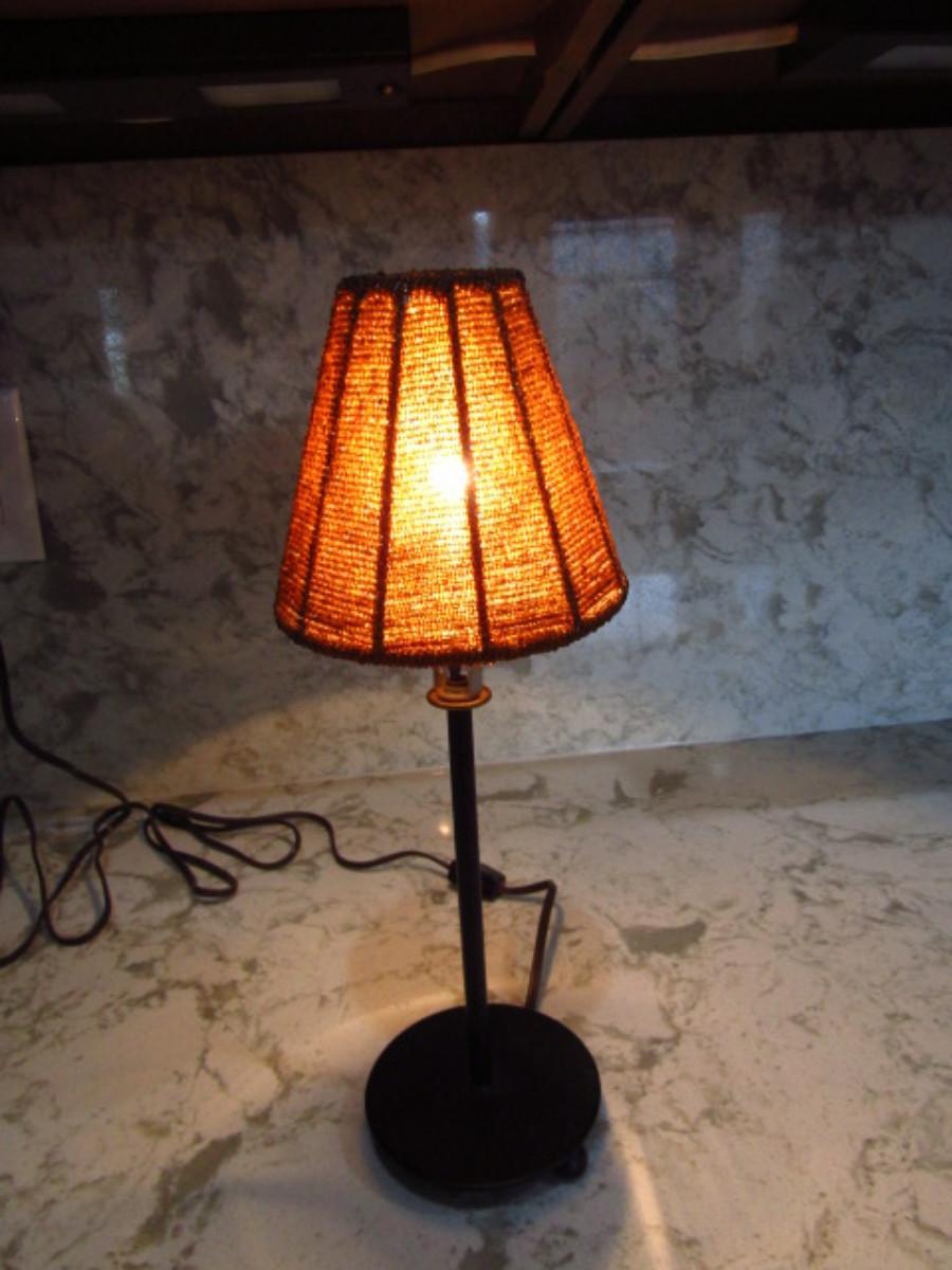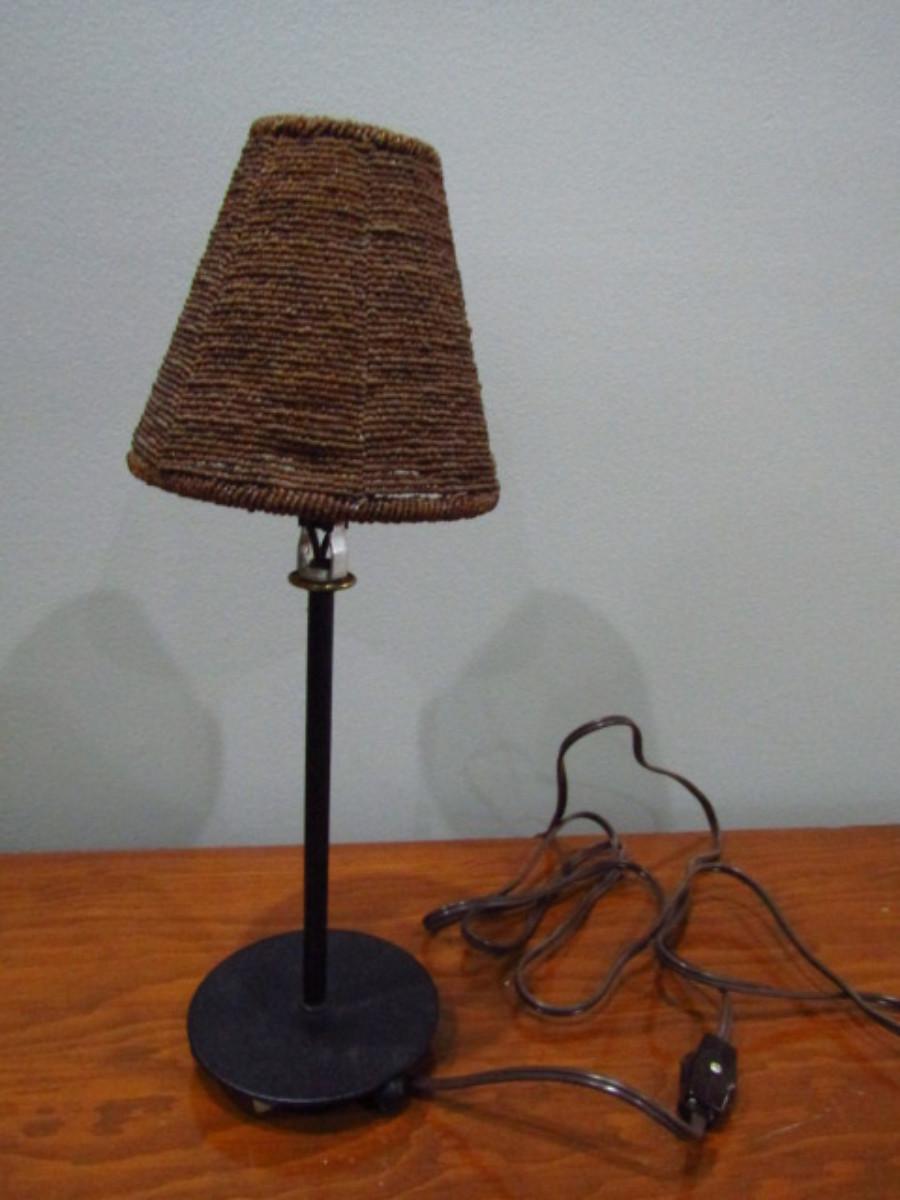 Metal Table Top Lamp with Beaded Shade (LR). Approx 14" tall.