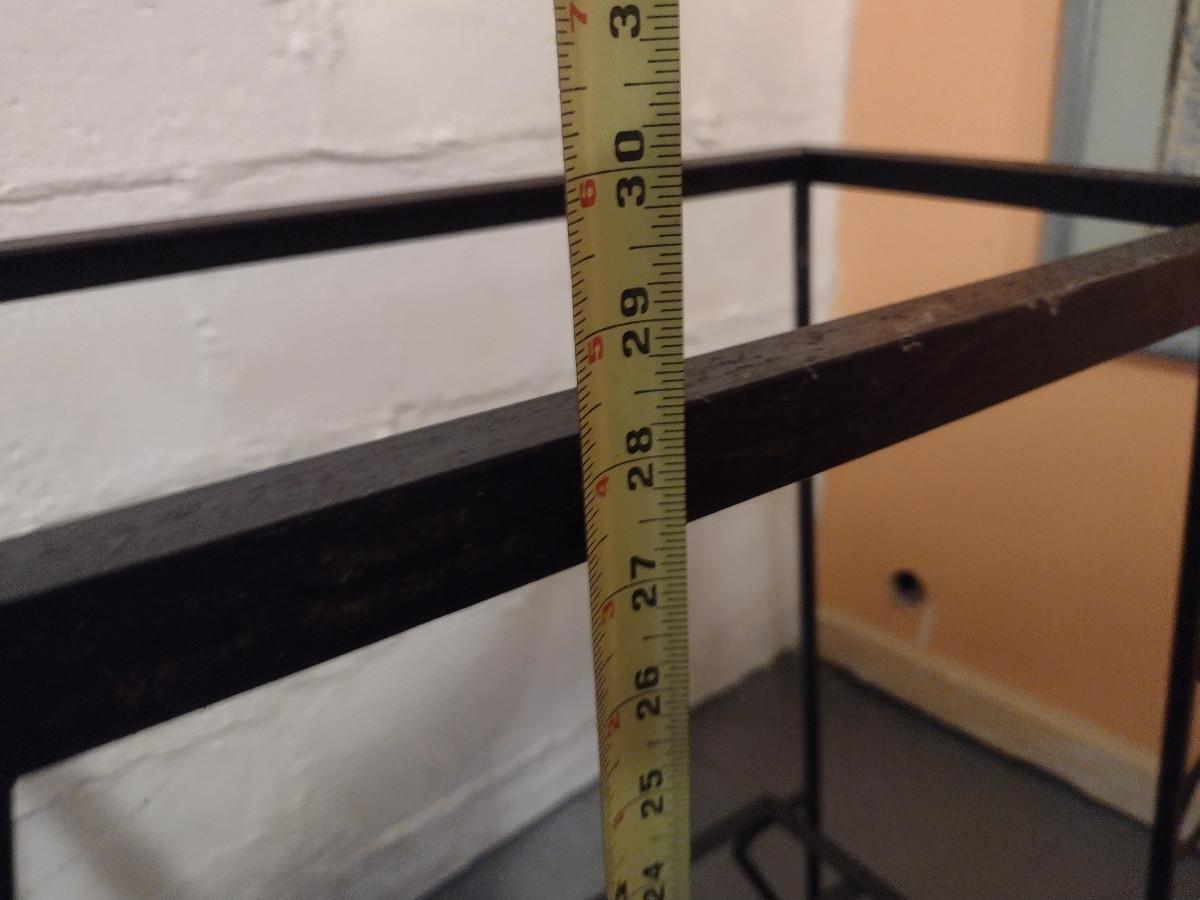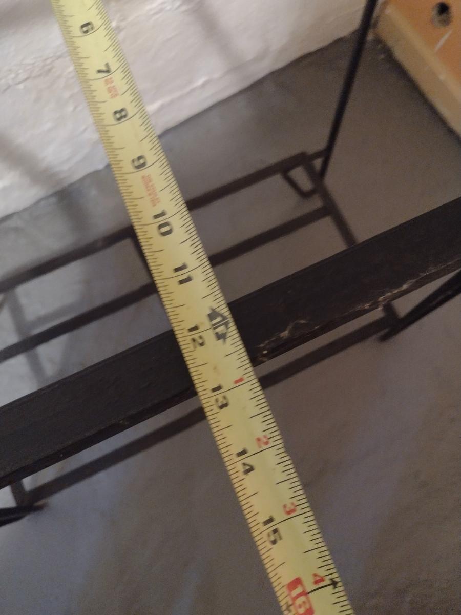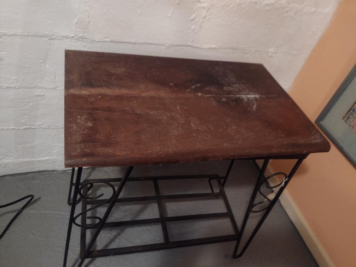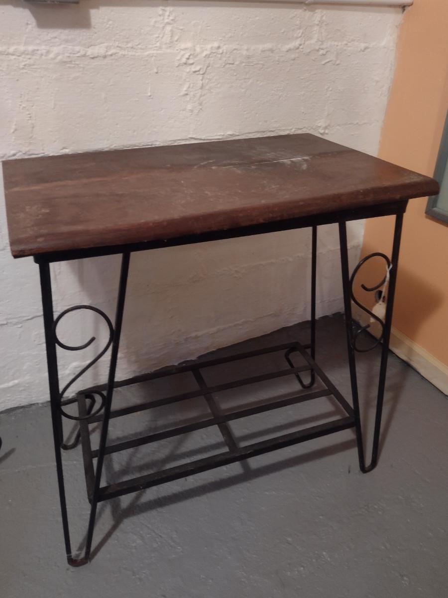 Metal Table/Aquarium Frame with Unattached Wooden Top. Item is located downstairs and will have to be brought up a flight of steps.