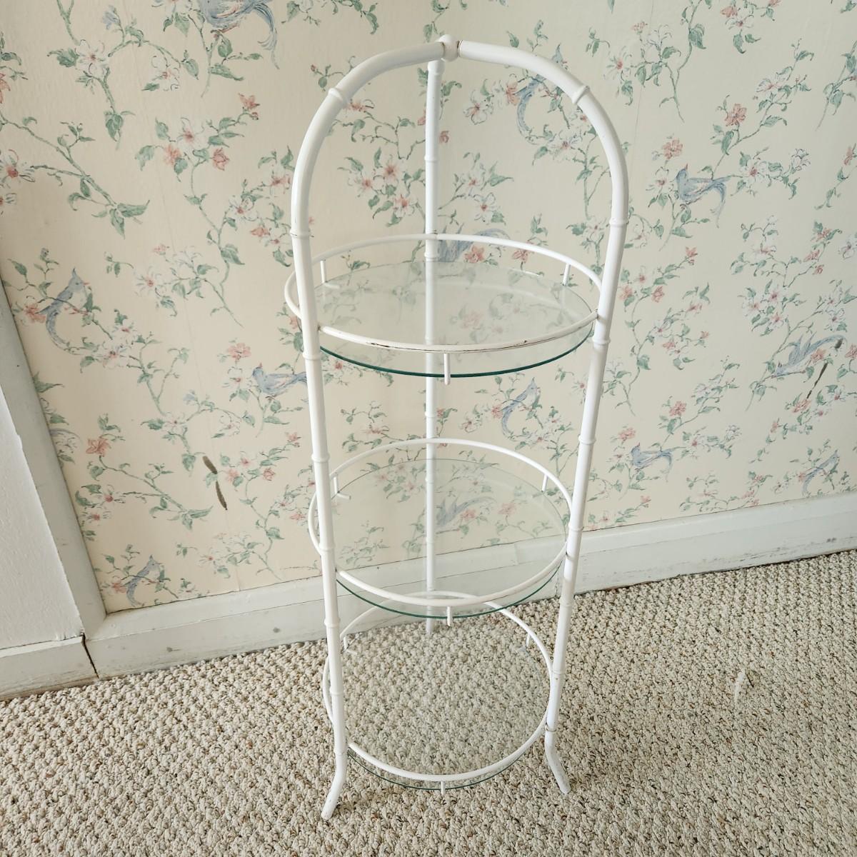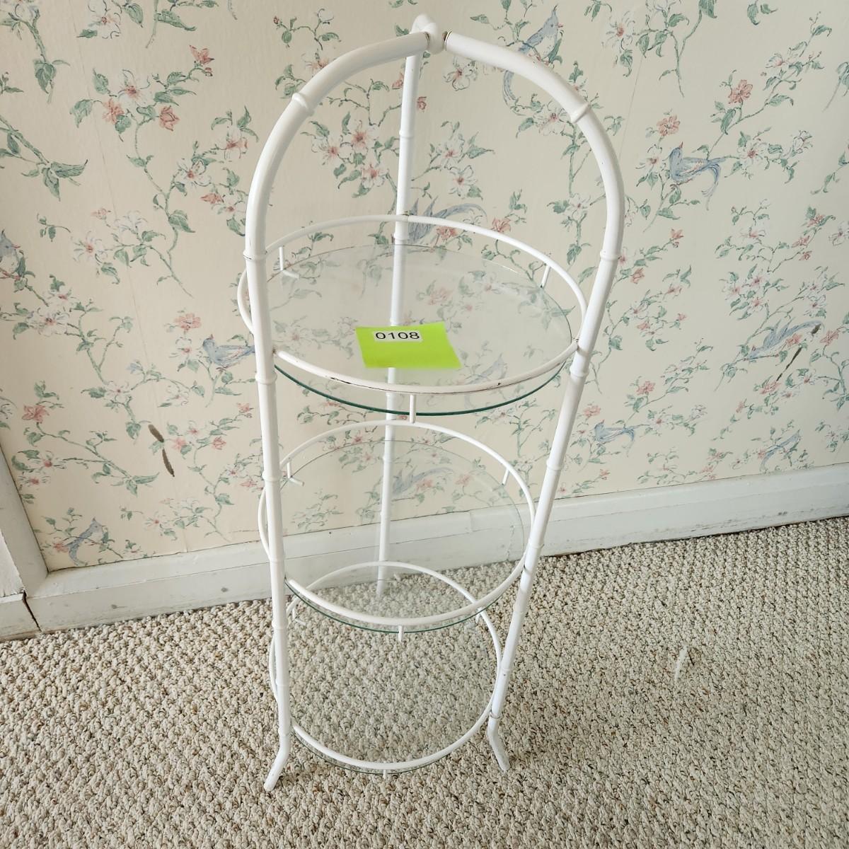 Metal Three Shelves Plant Stand Glass Shelves 32" tall 11.5 Dia