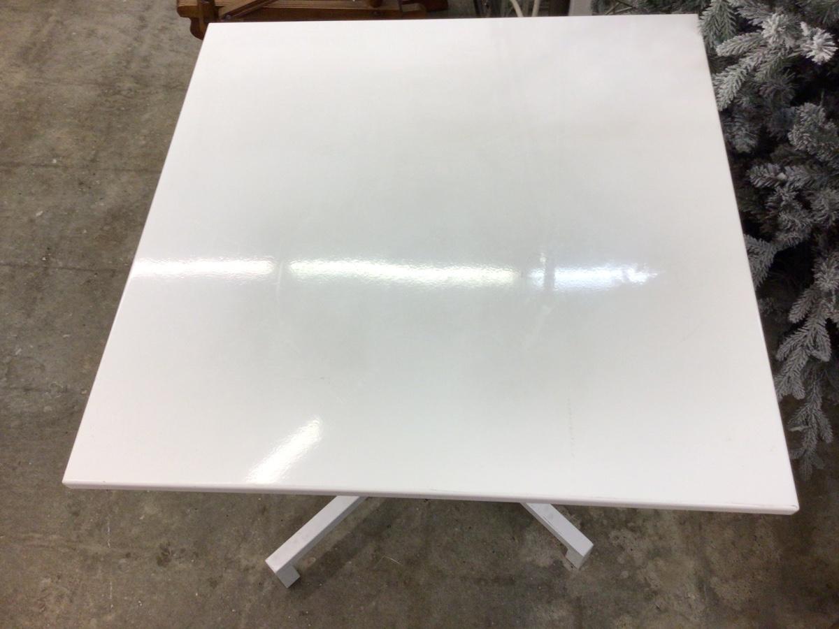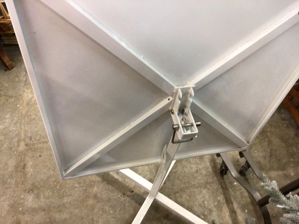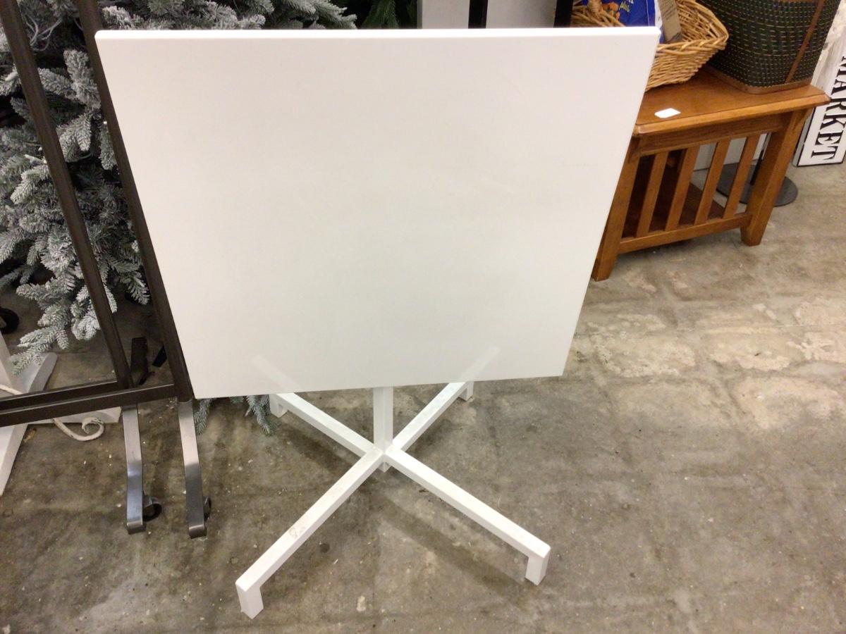 This is a great metal tilt table. Folds down to nice square surface but can tilt up for storage.