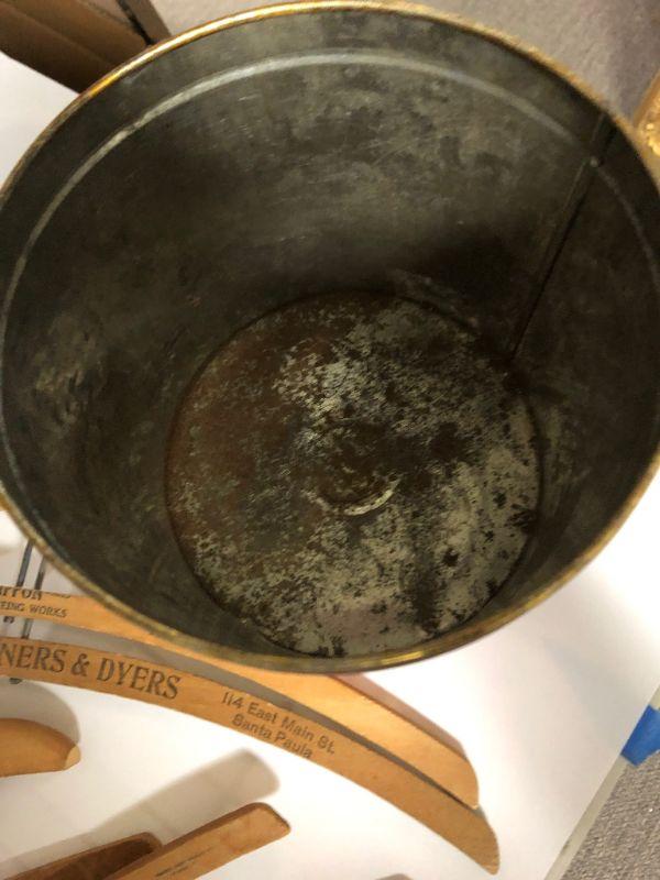 Metal Tin Bucket of Vintage Wood Hangers