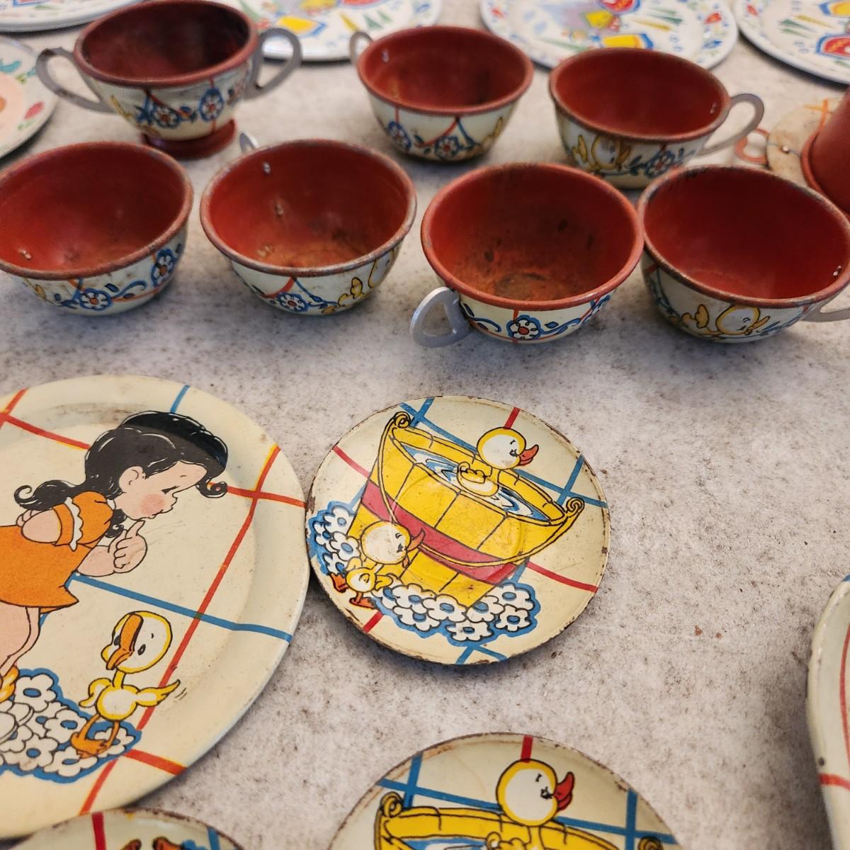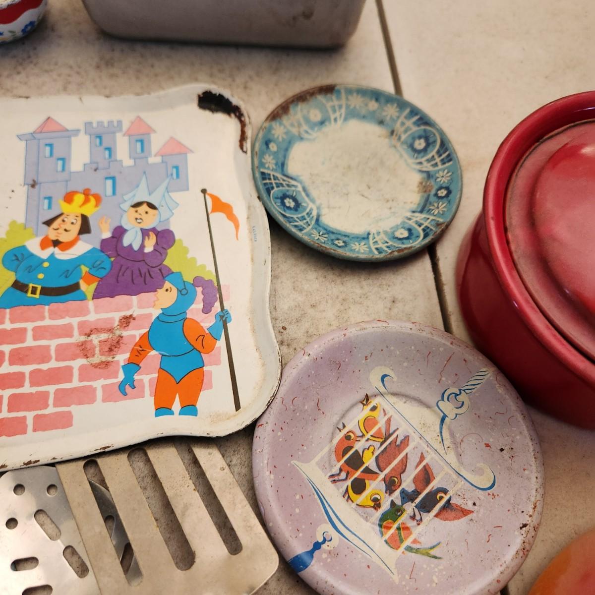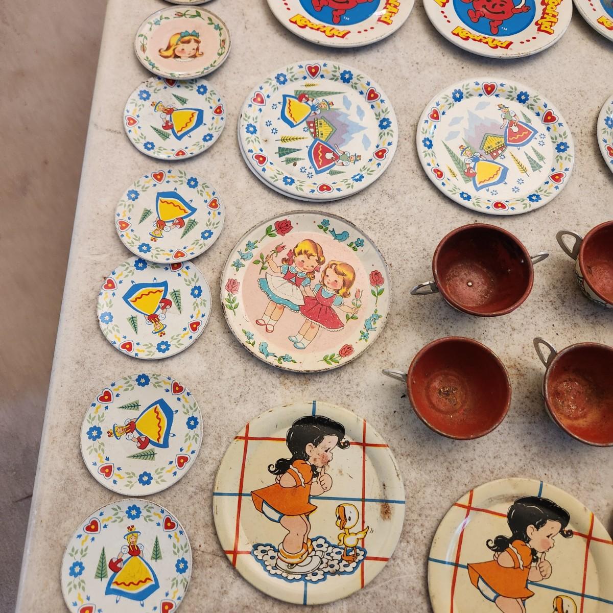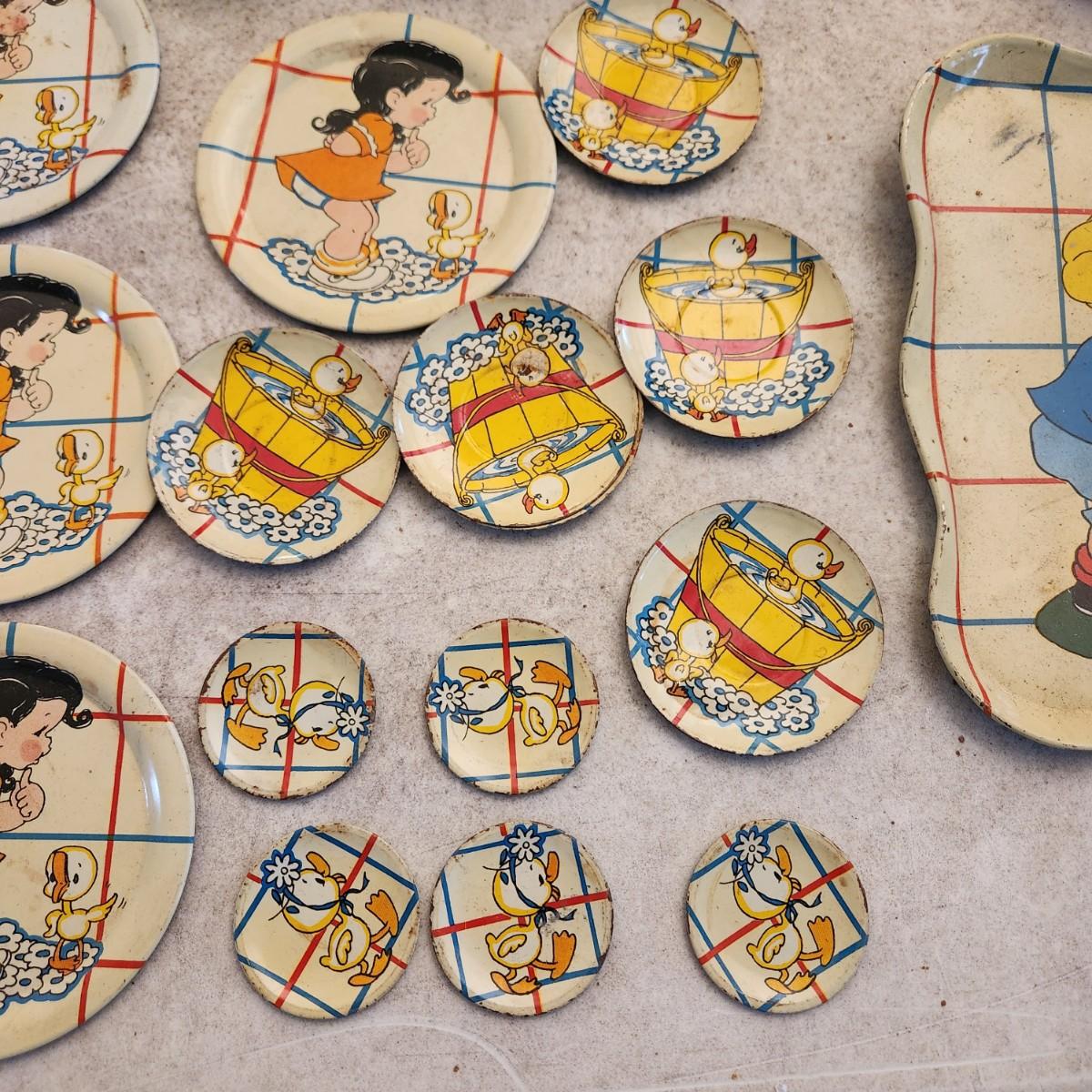 Metal Tin Toy Lot Plates Cups Kitchenware Kool-Aid Ohio Art Elaine Ends Hileman Ducky Bath Time