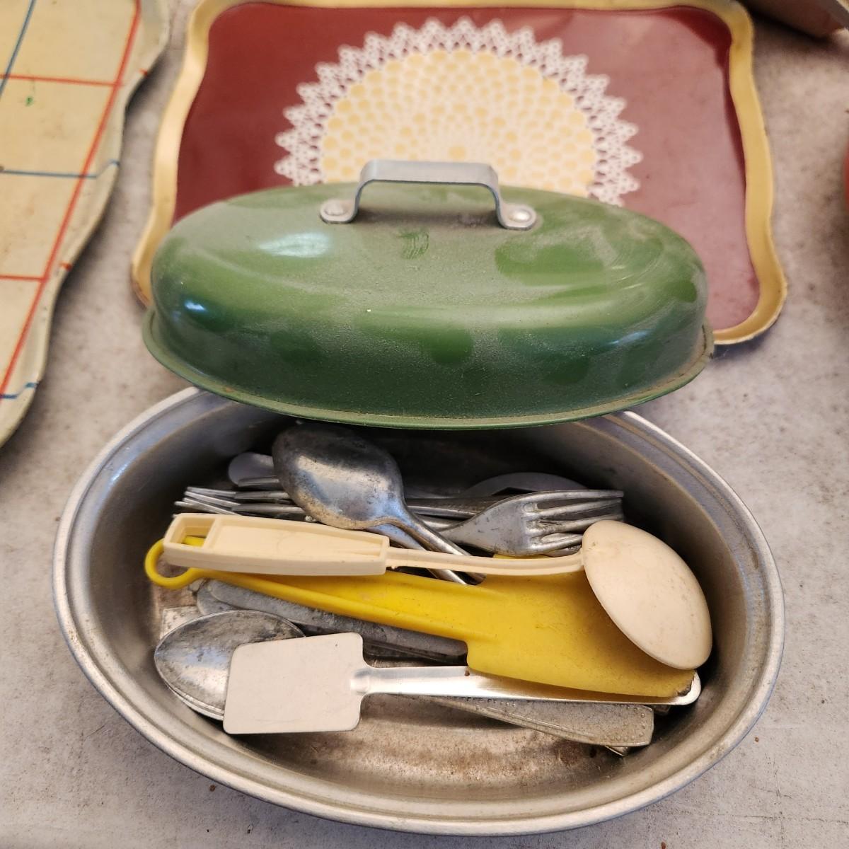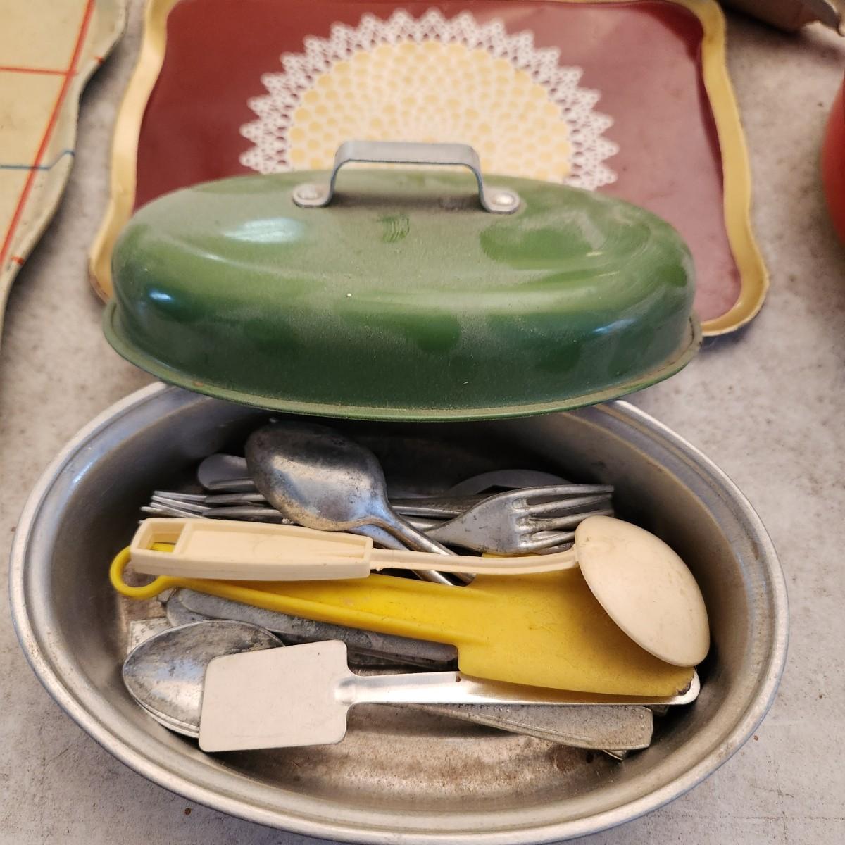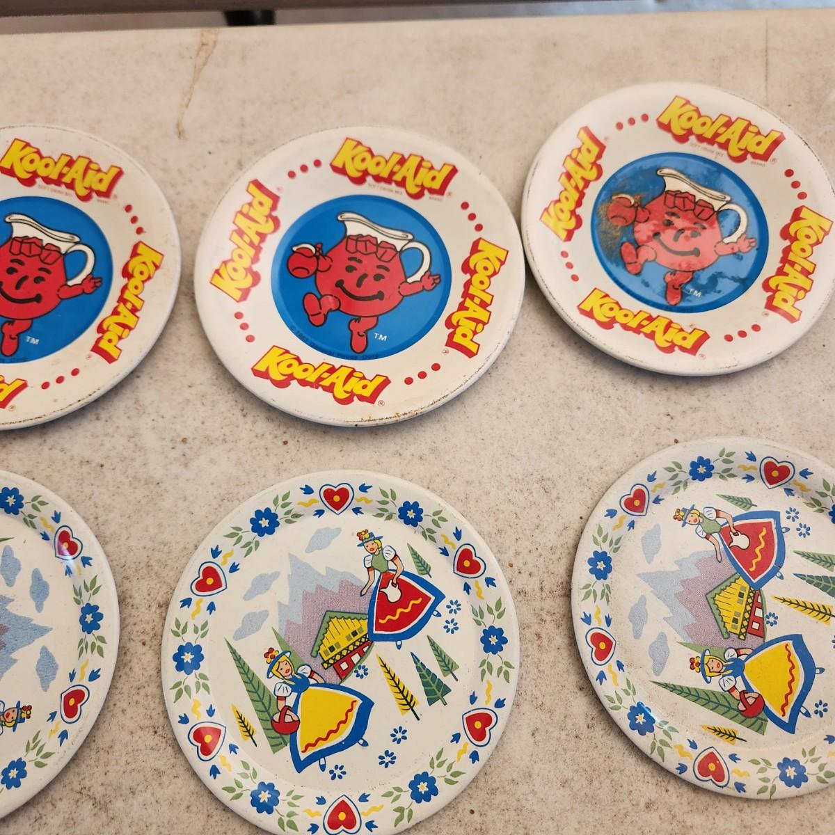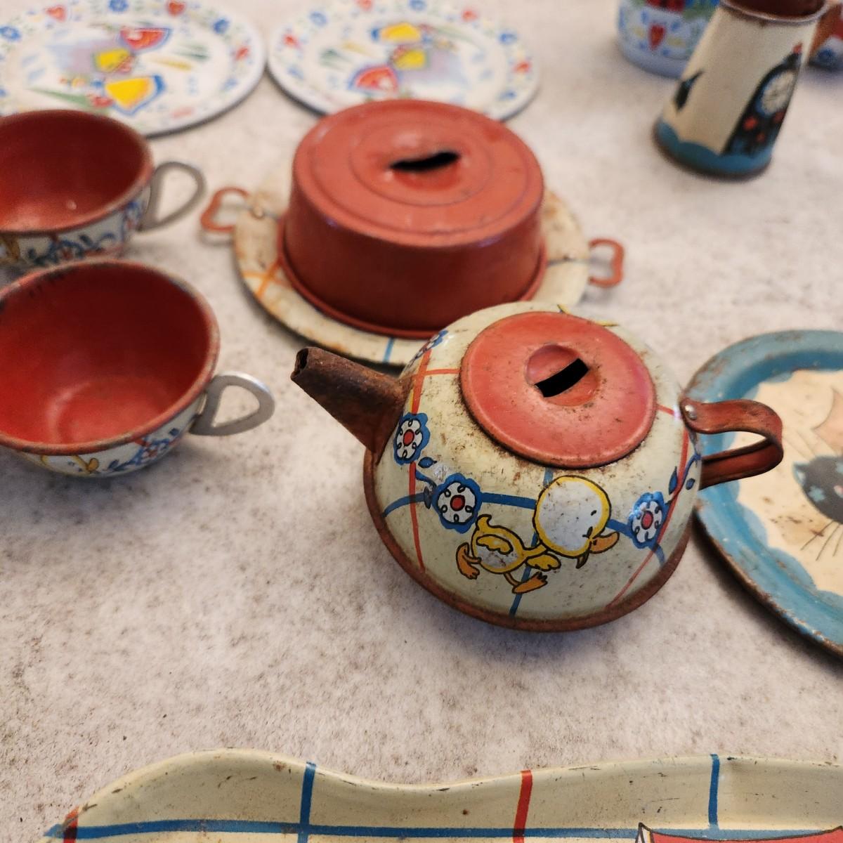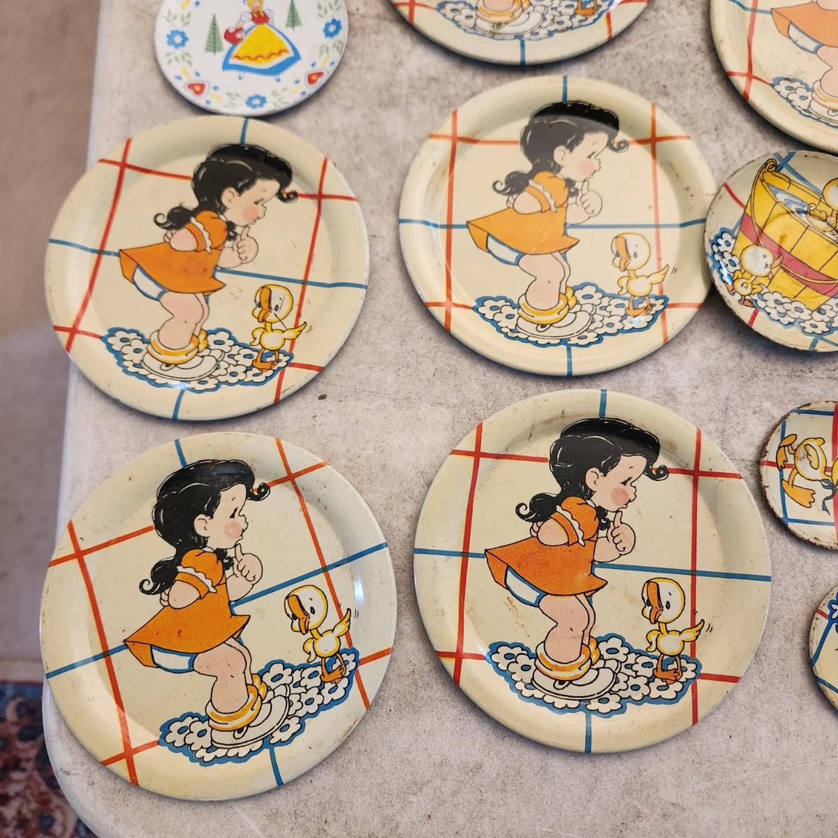 Metal Tin Toy Lot Plates Cups Kitchenware Kool-Aid Ohio Art Elaine Ends Hileman Ducky Bath Time