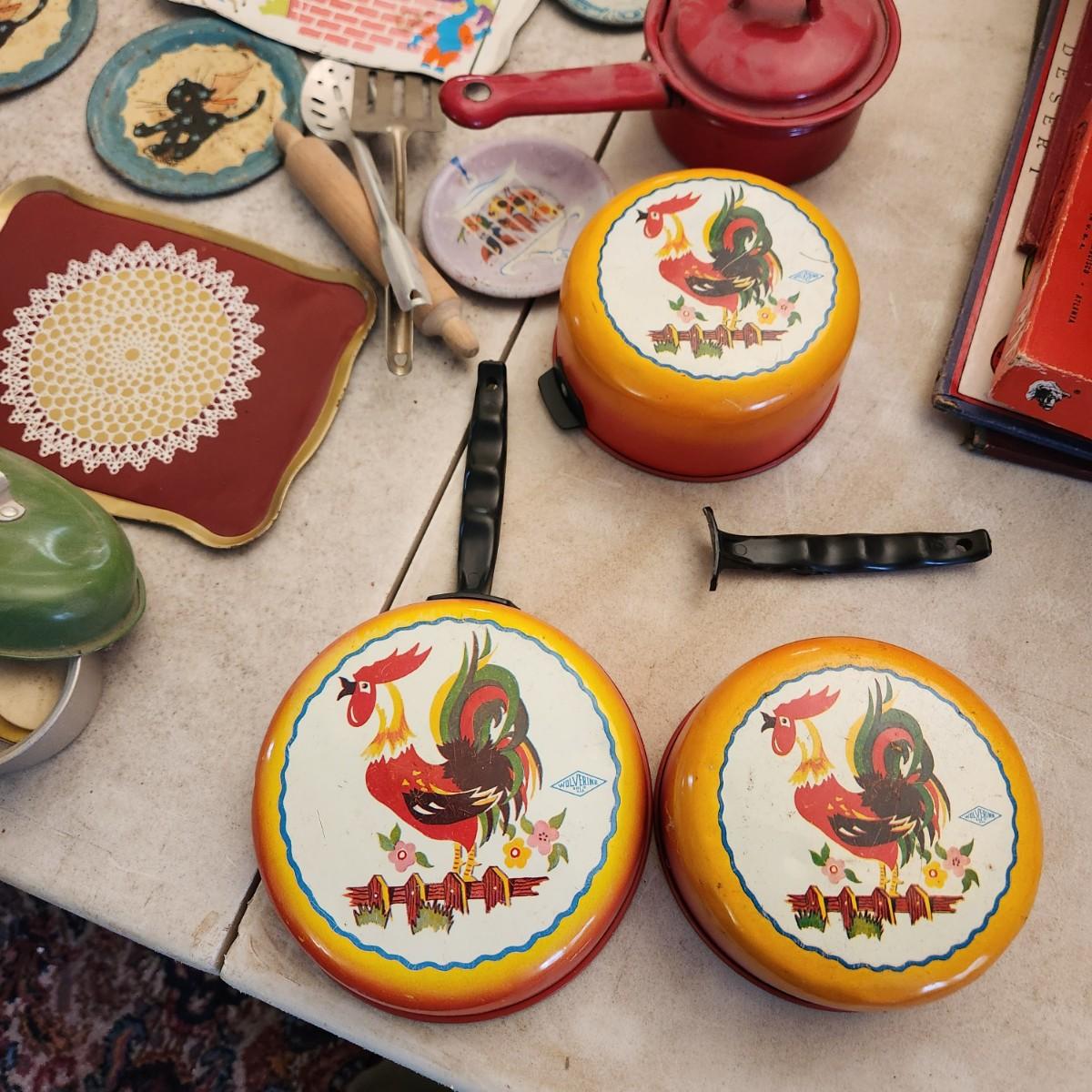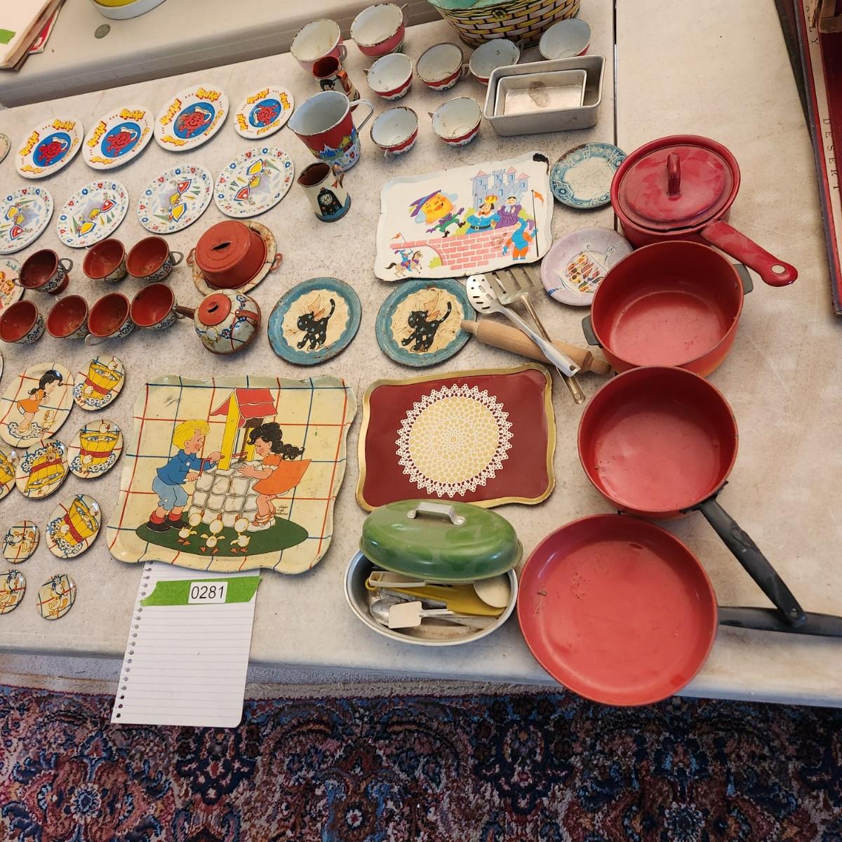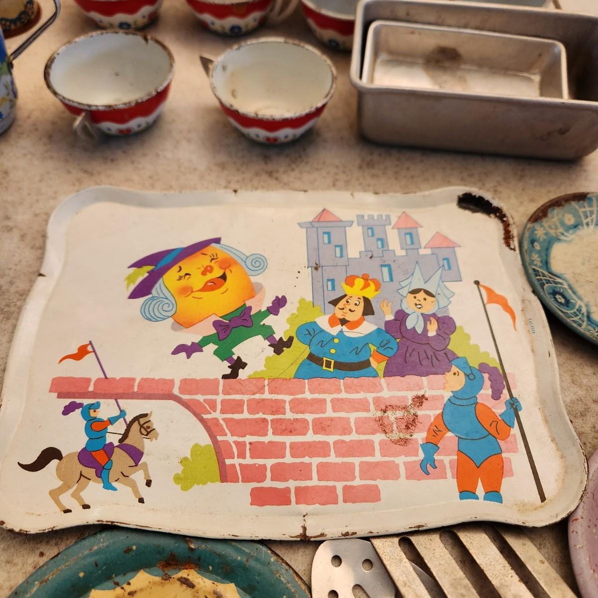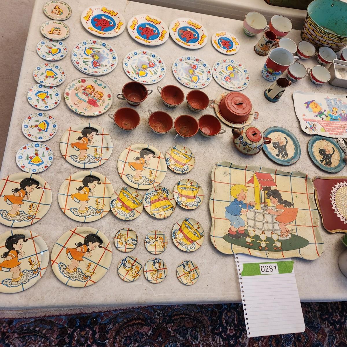 Metal Tin Toy Lot Plates Cups Kitchenware Kool-Aid Ohio Art Elaine Ends Hileman Ducky Bath Time