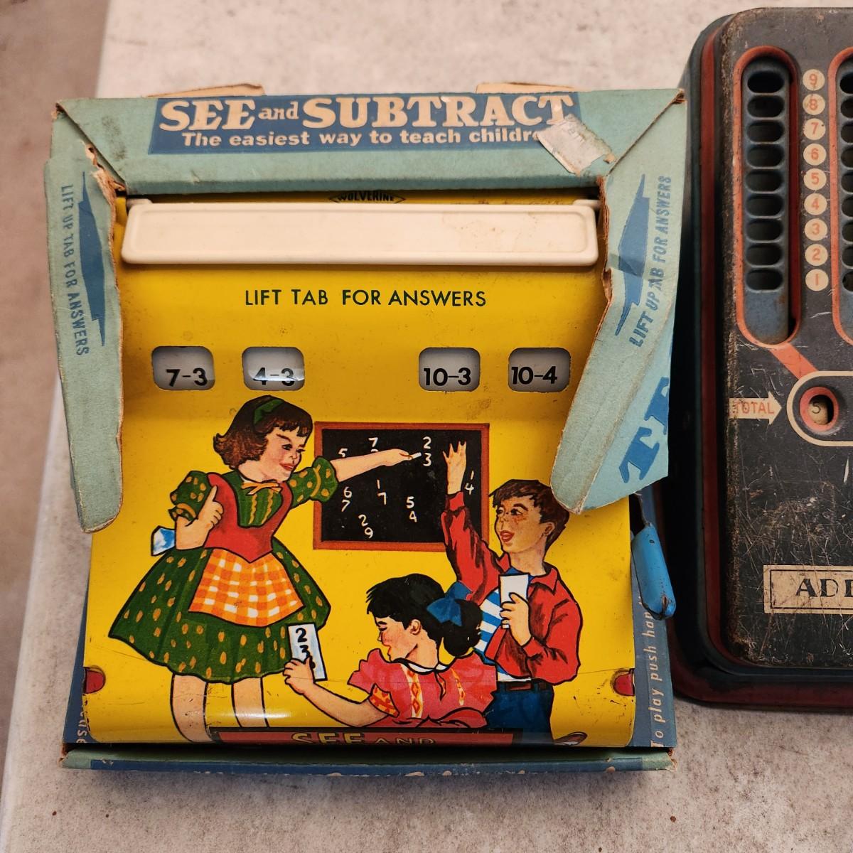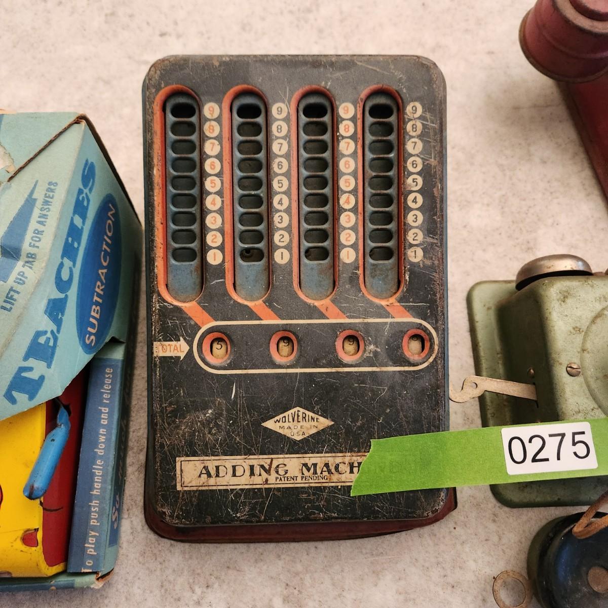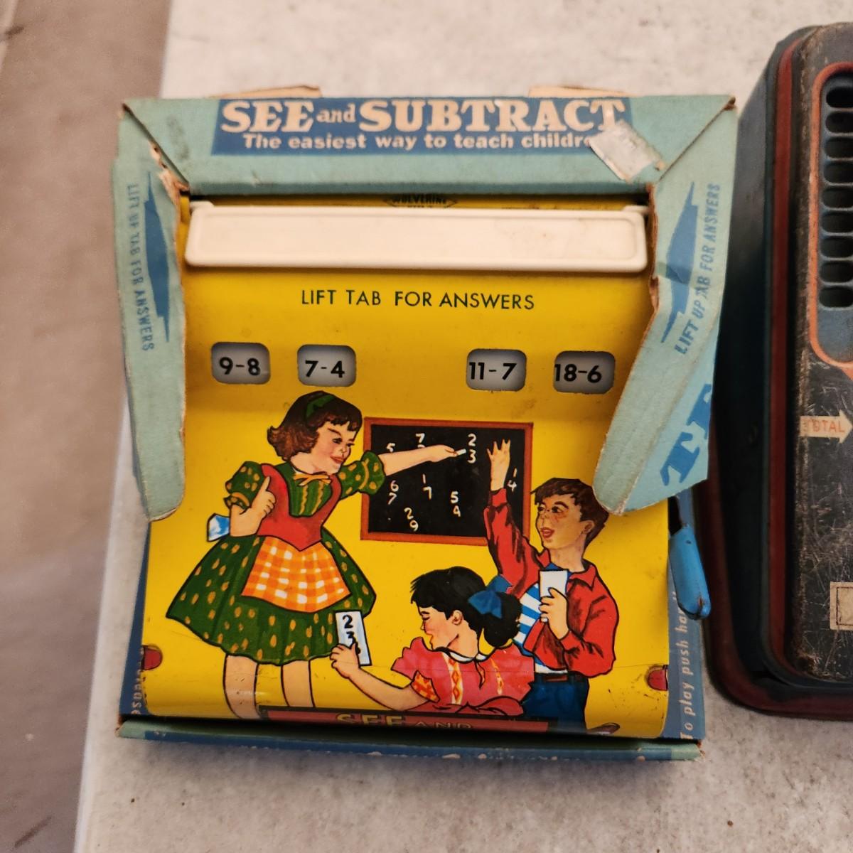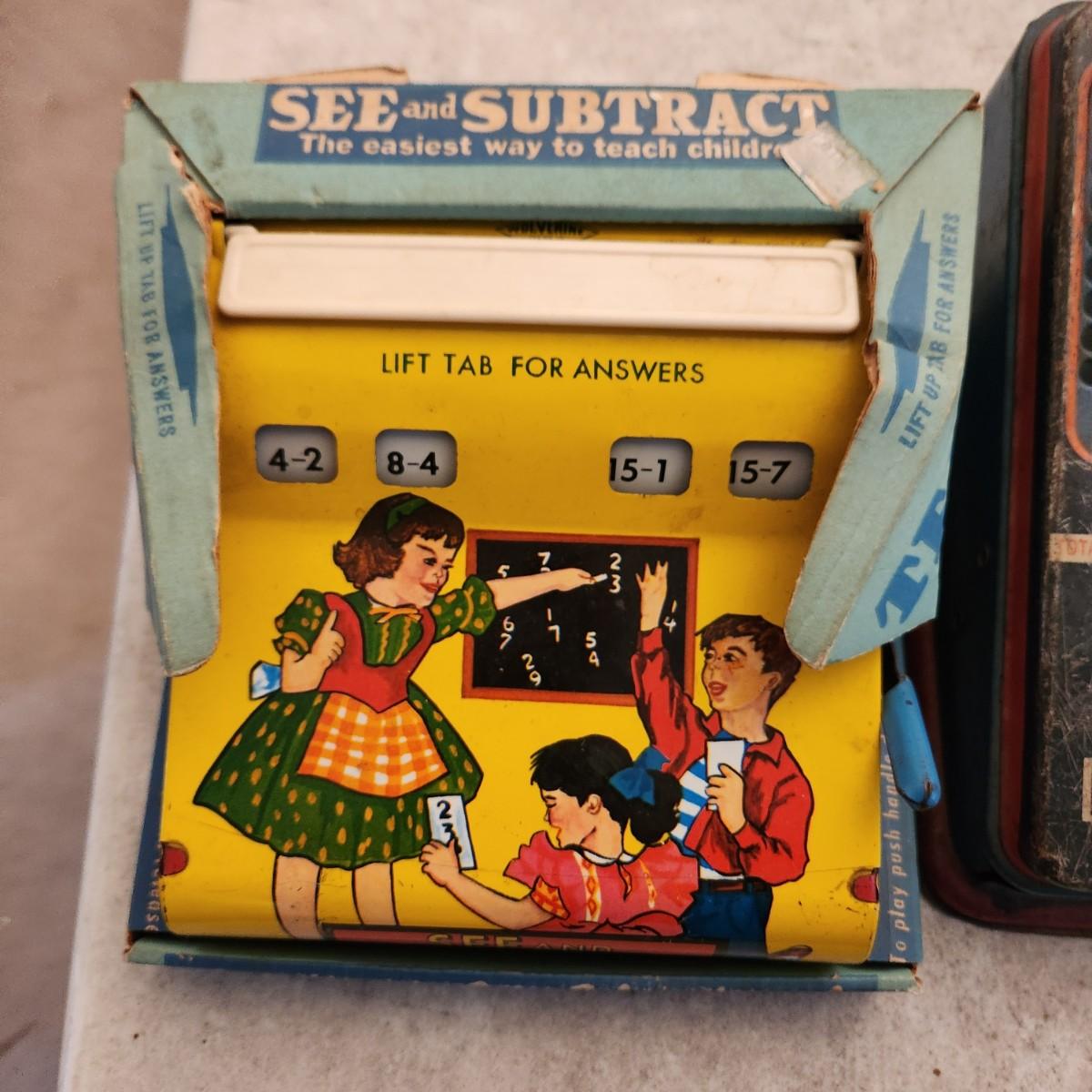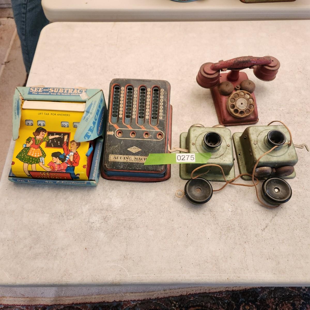 Metal Tin Toys See & Subtract, Adding Machine, Telephones