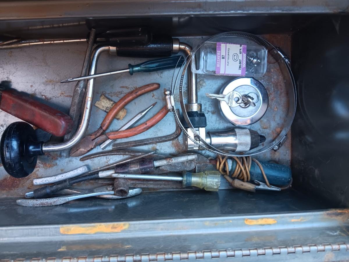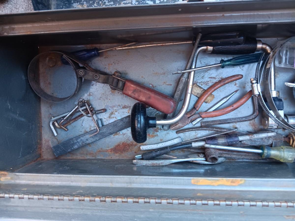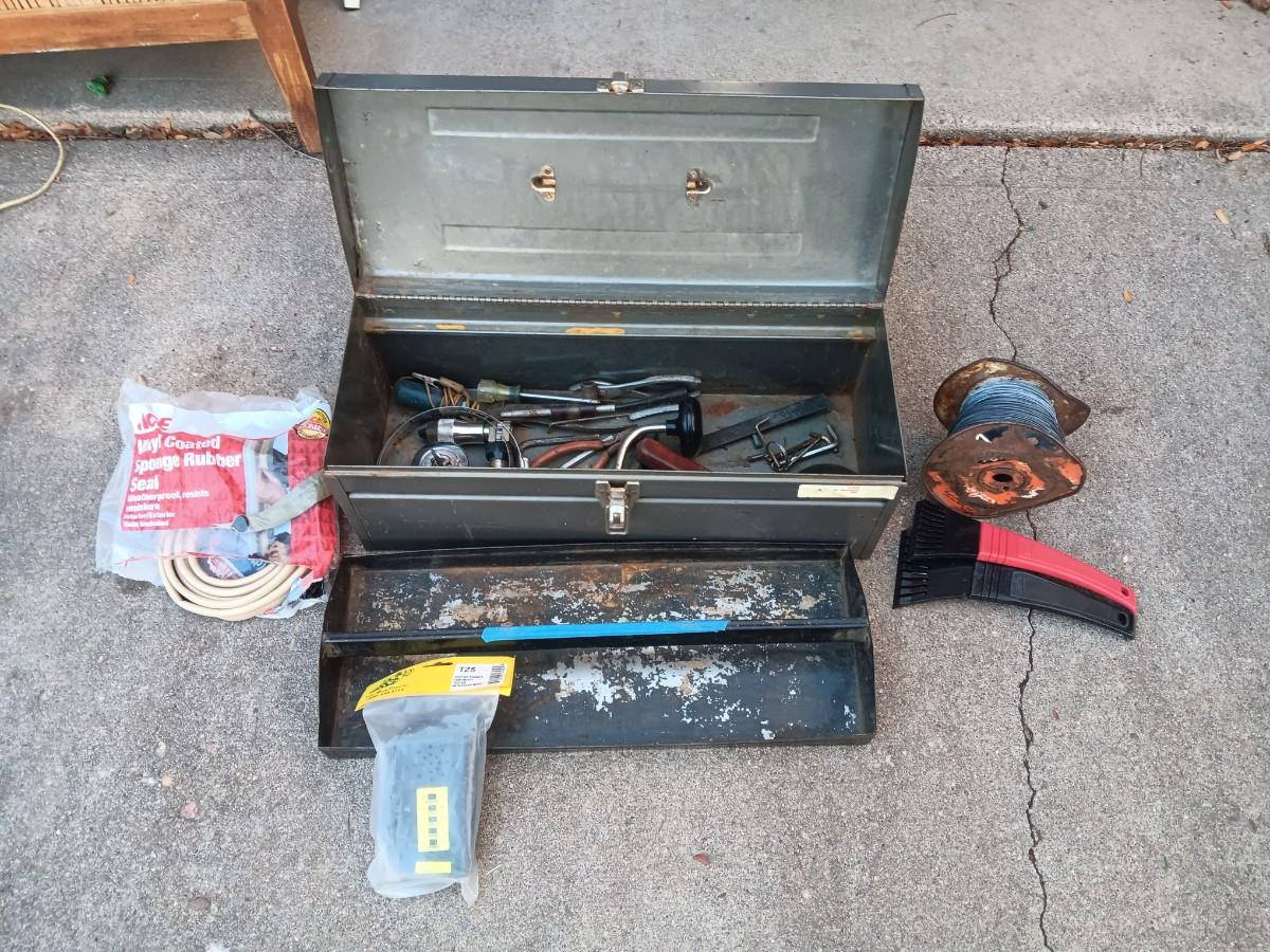 METAL TOOL BOX W/SOME TOOLS AND MORE