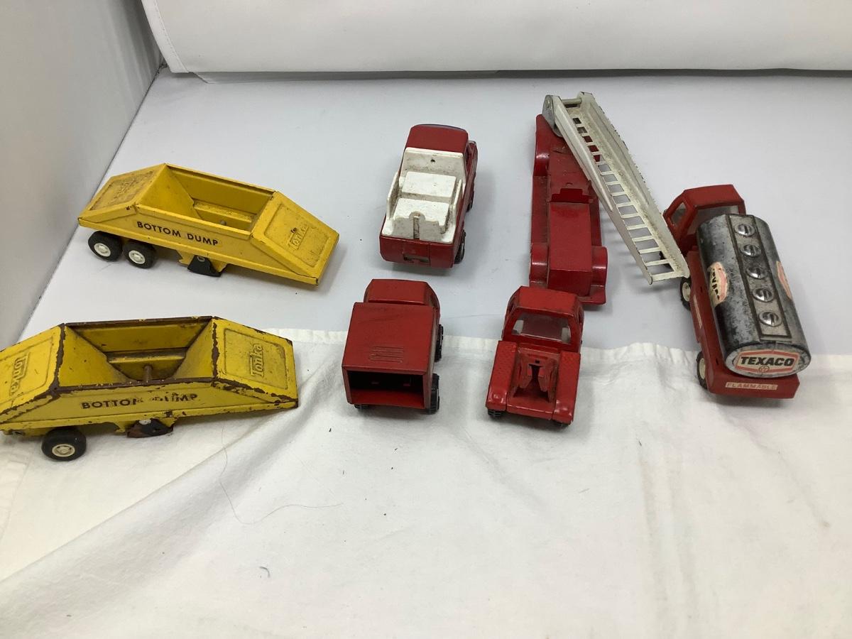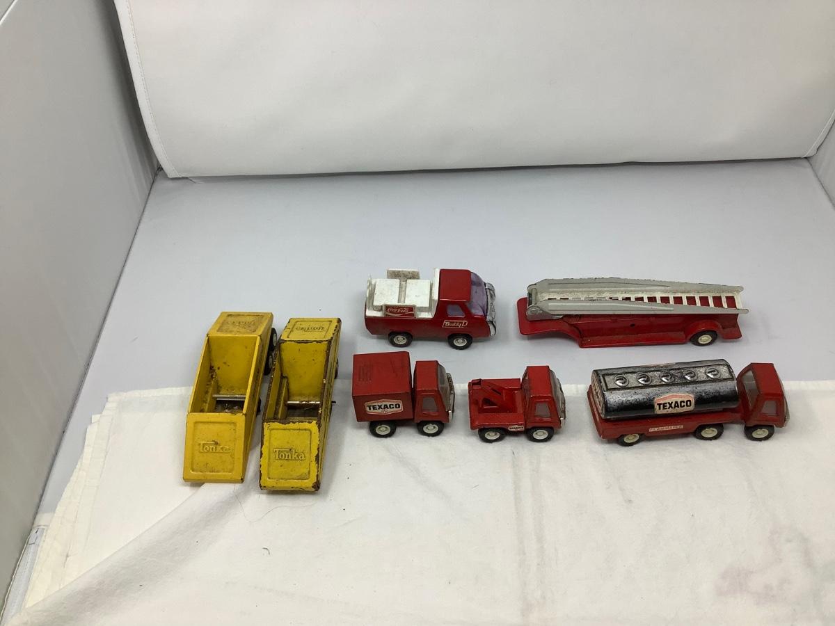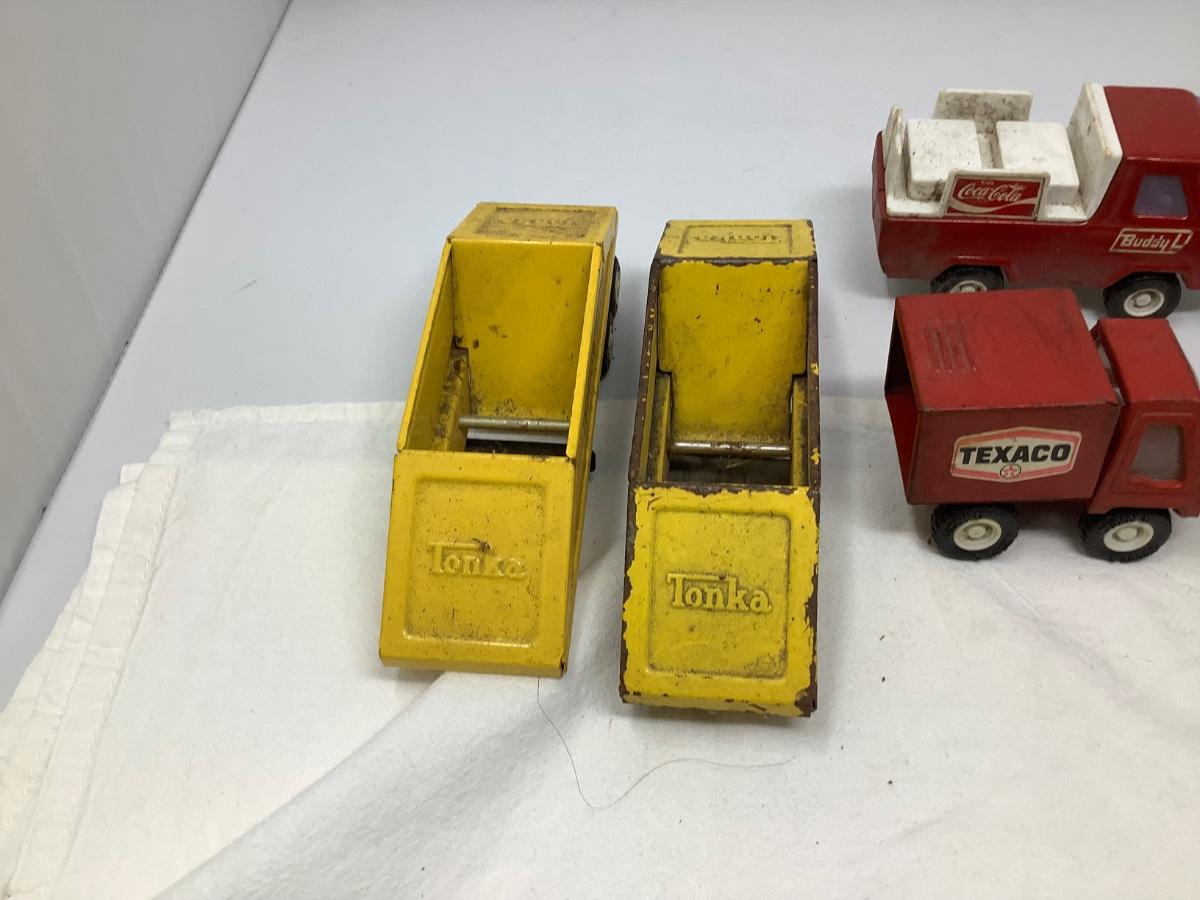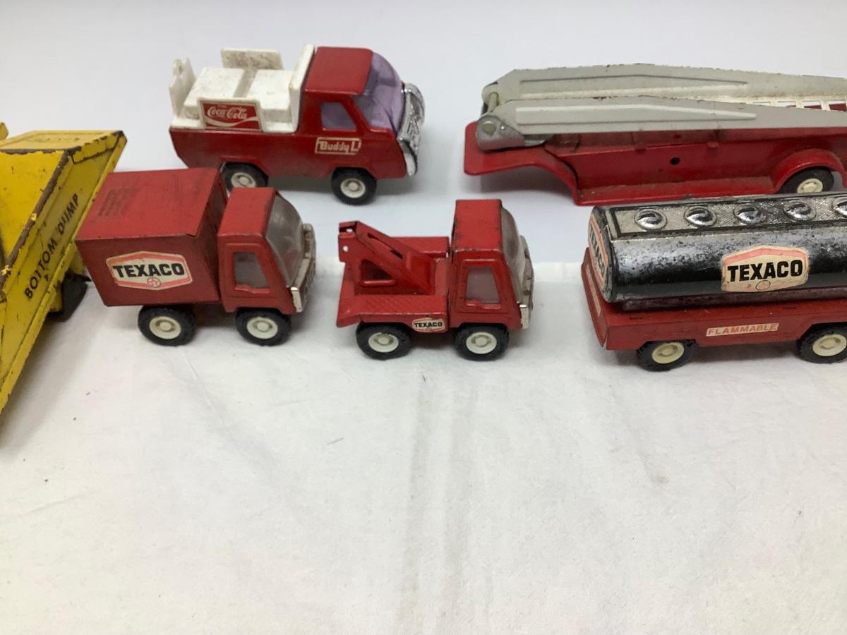 3 Texaco Buddy L, Coke Buddy L, 2 Yellow Tonka’s, Fire Truck.