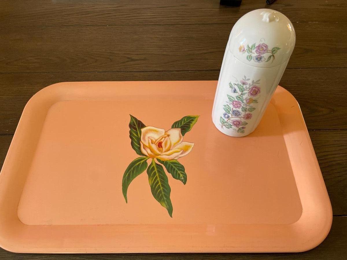 Metal tray with Elizabeth Arden porcelain container