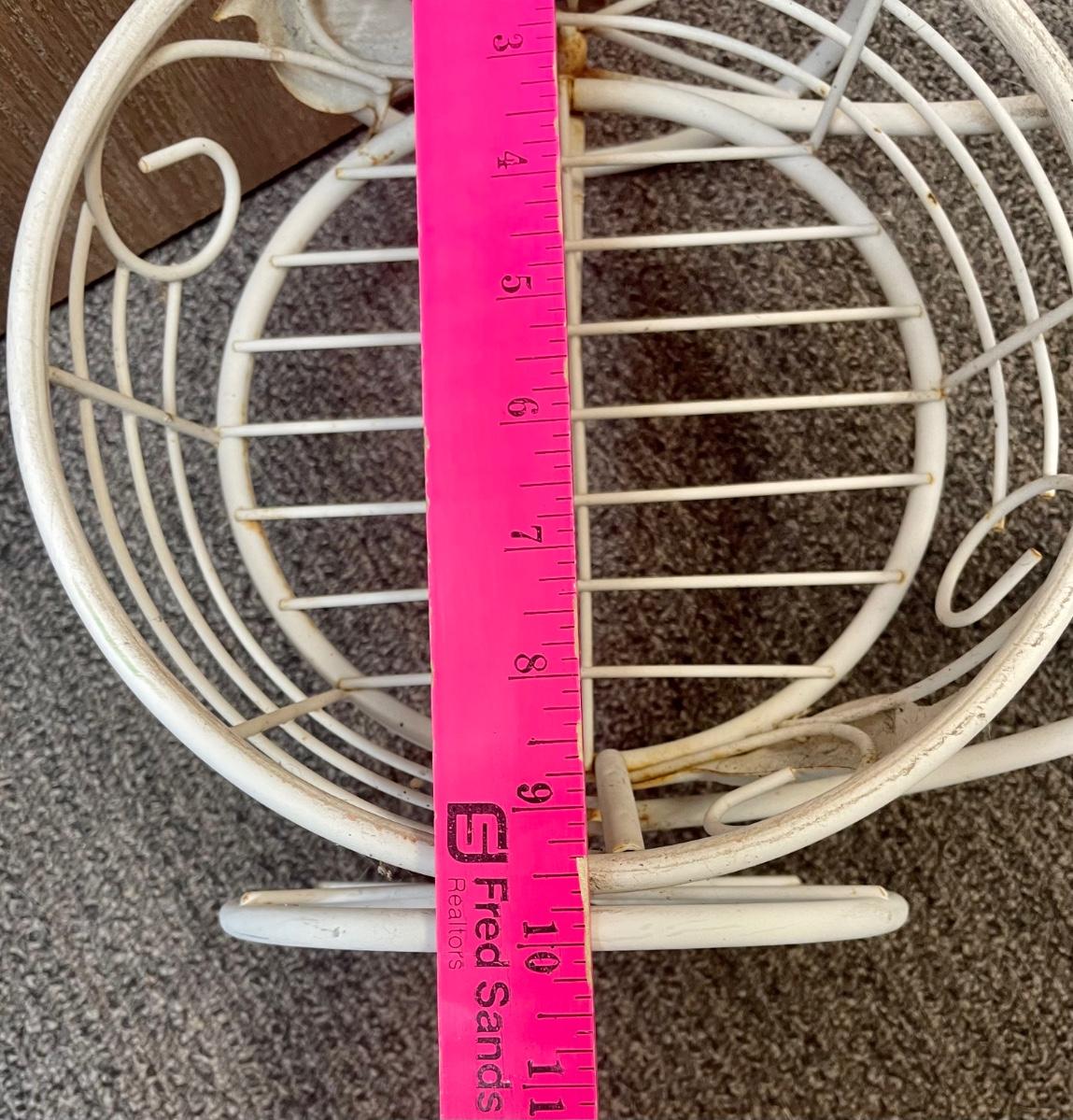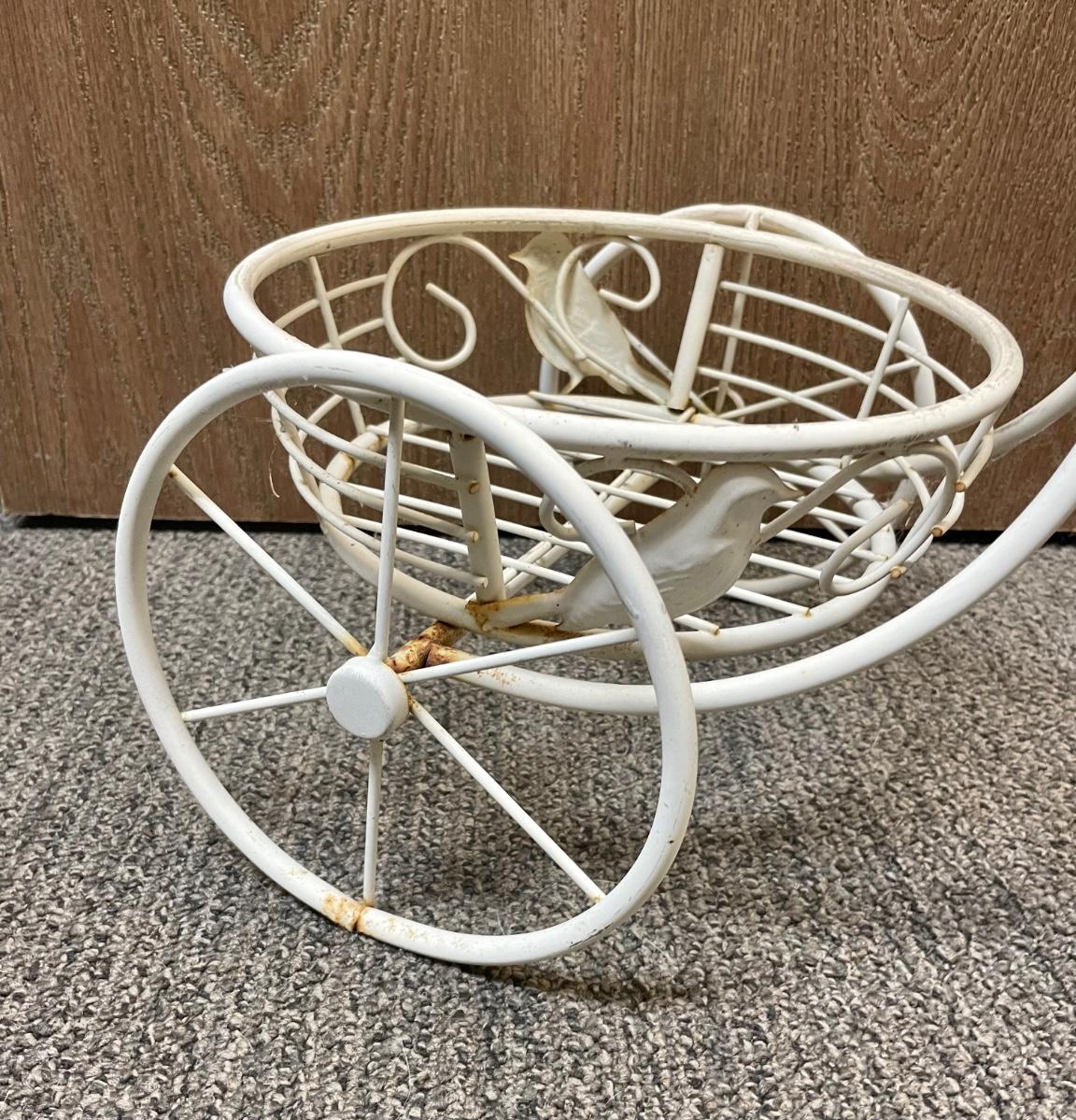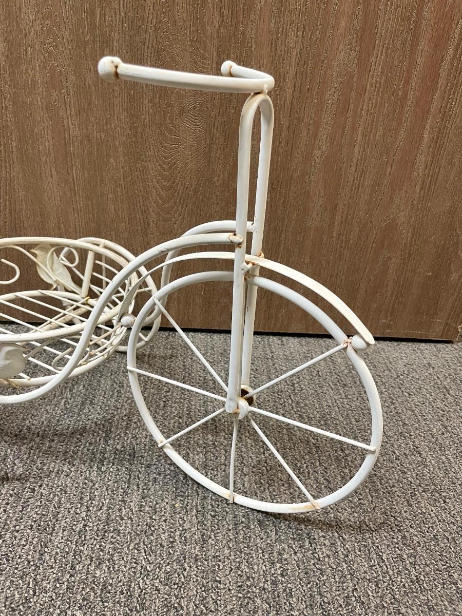 Wire-frame tricycle with a large basket for holding a potted plant where the seat would be. Good, solid condition.