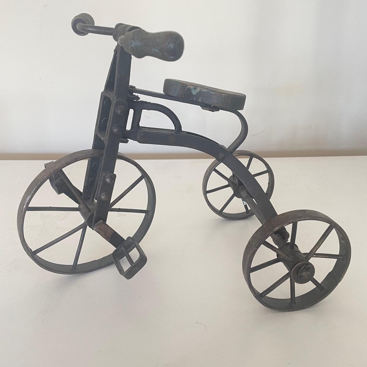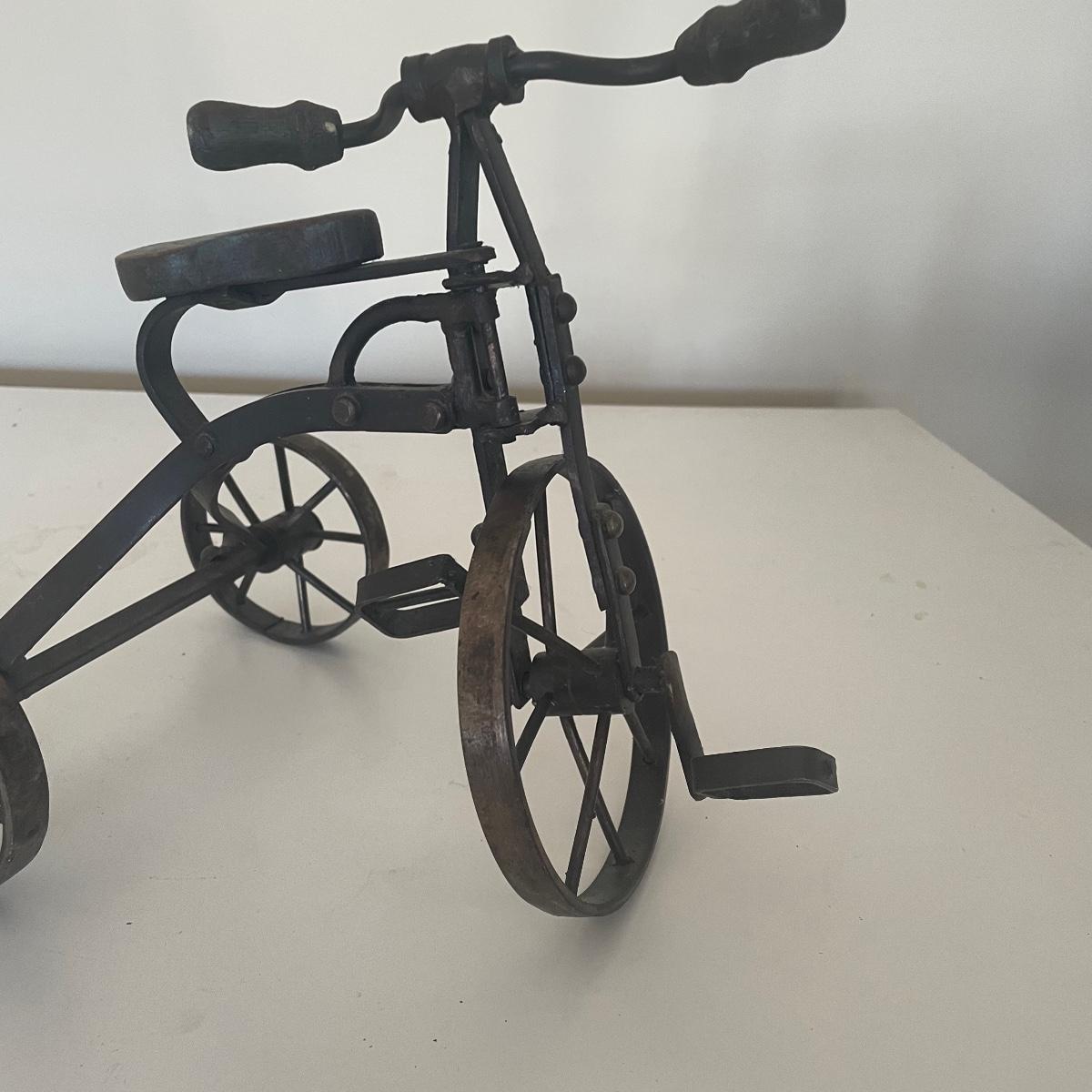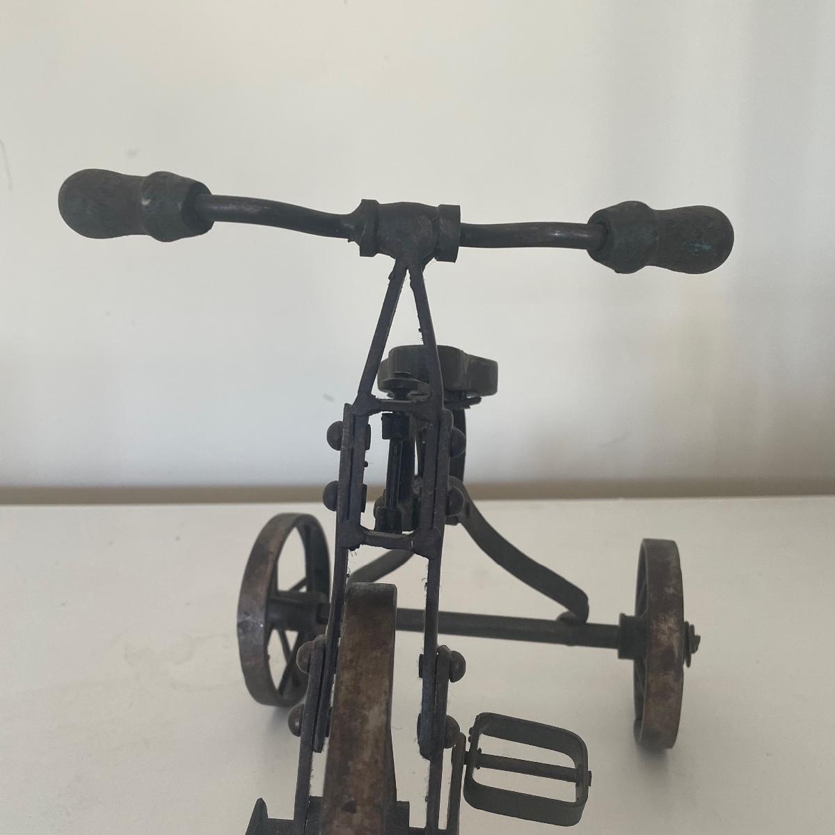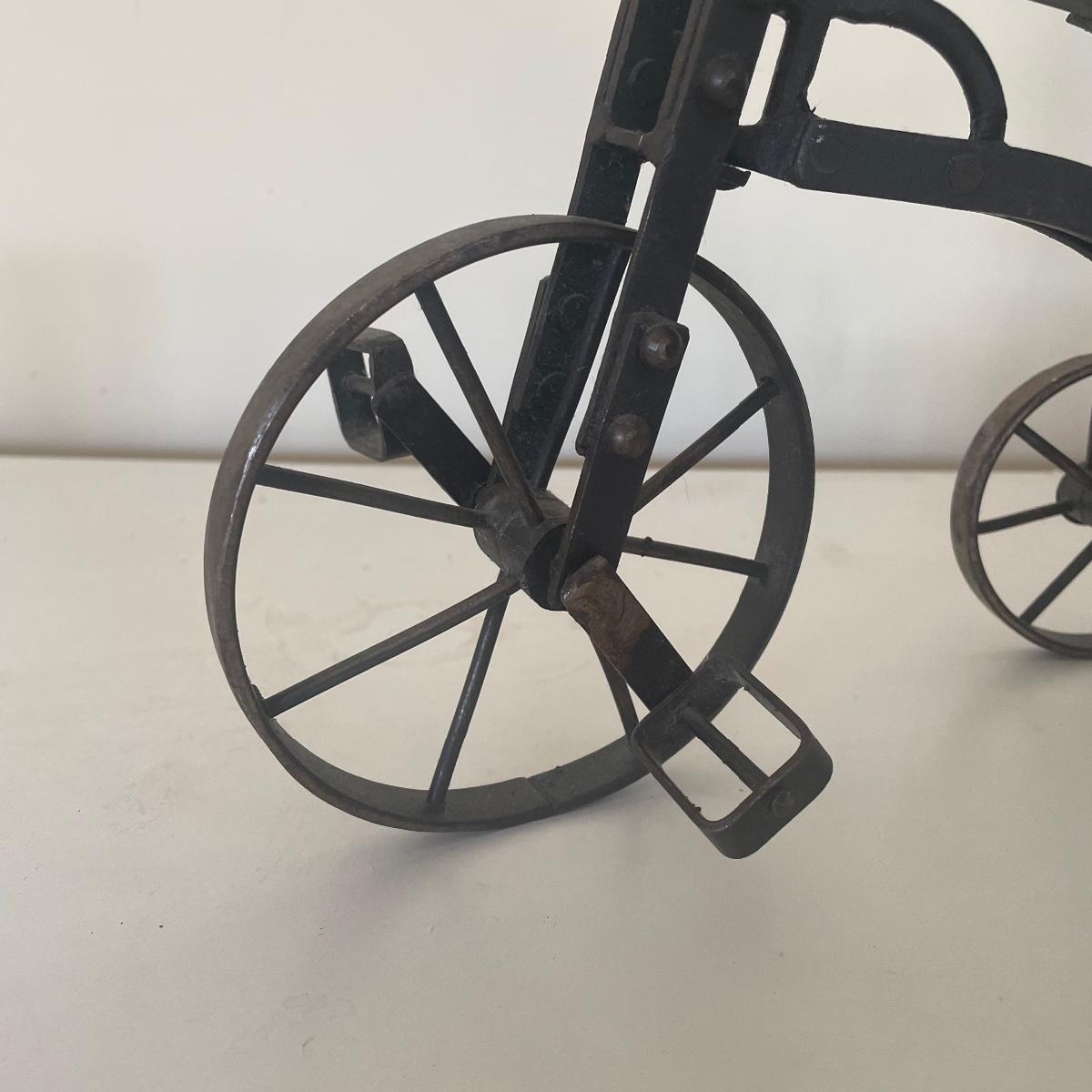 This well made bicycle has been crafted with steel and has a wooden seat and handles. It is in excellent condition and measures approximately 12” x 8” x 9”.