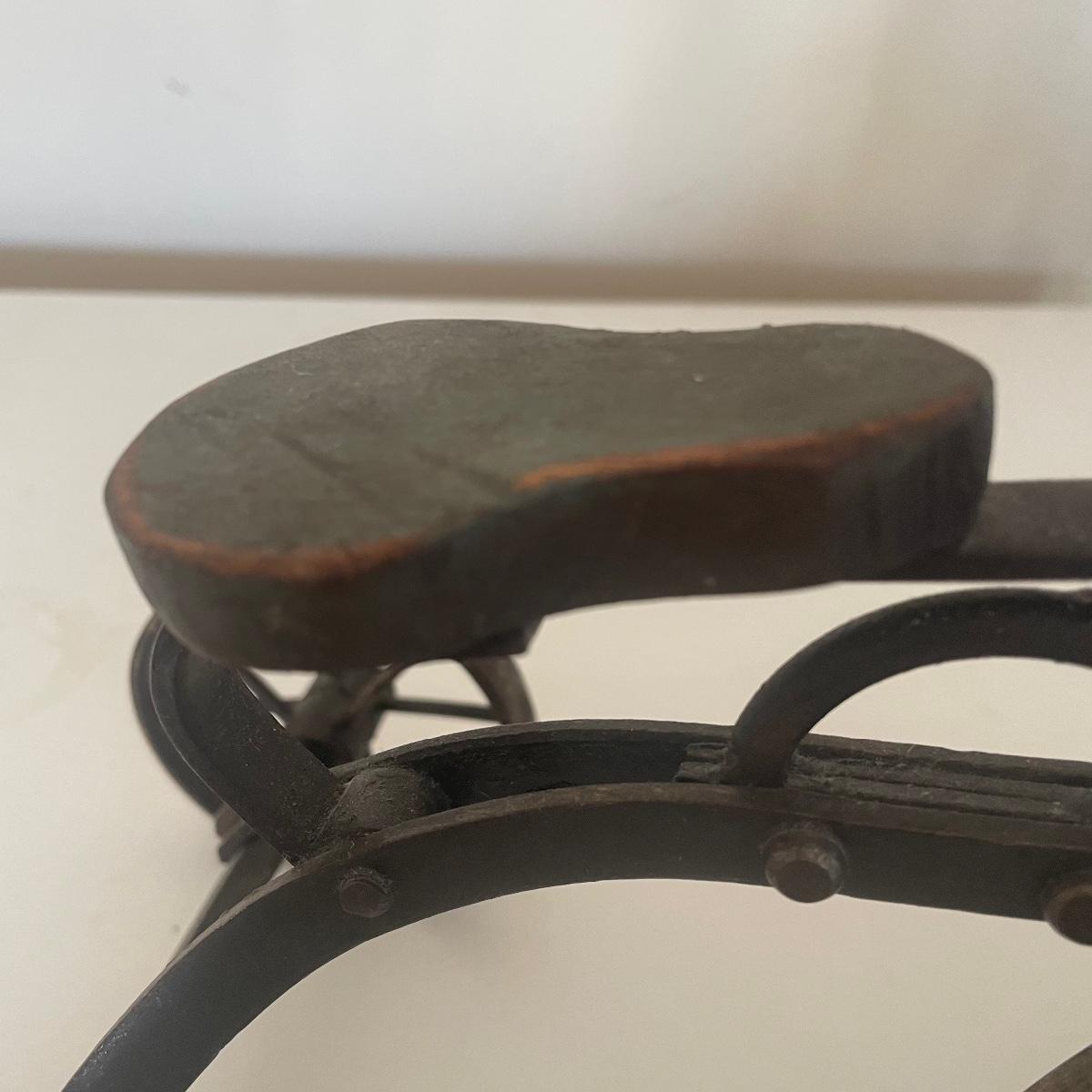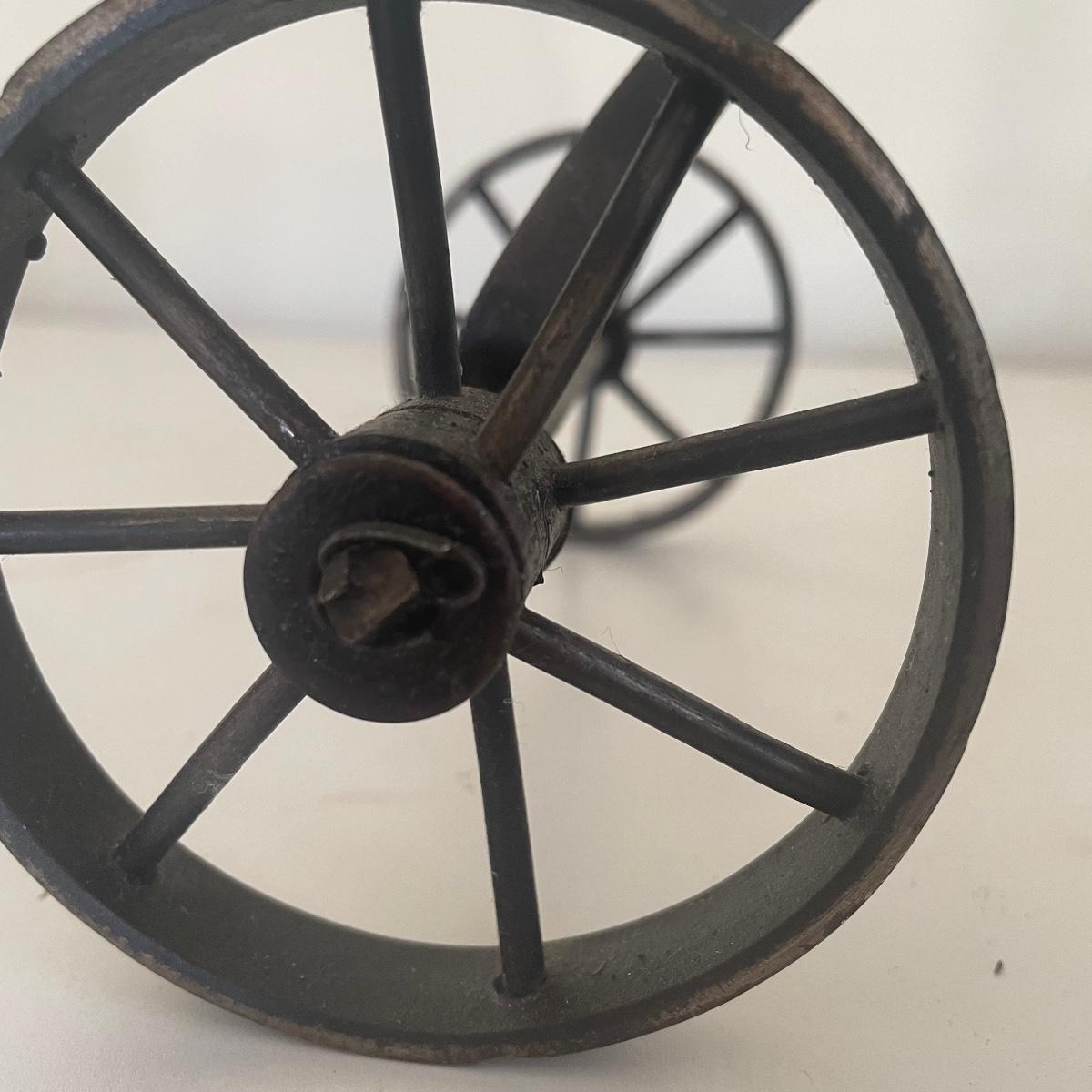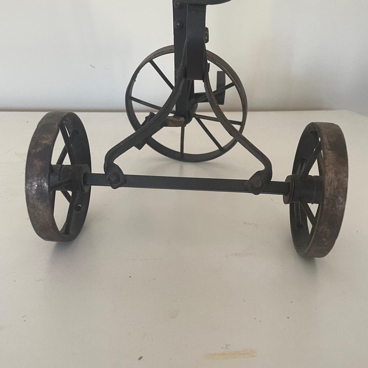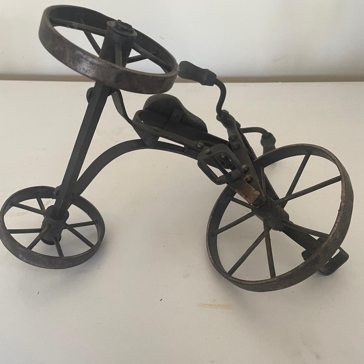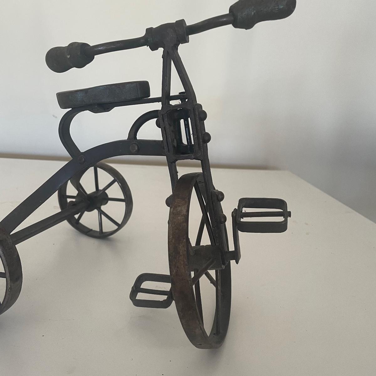 This well made bicycle has been crafted with steel and has a wooden seat and handles. It is in excellent condition and measures approximately 12” x 8” x 9”.