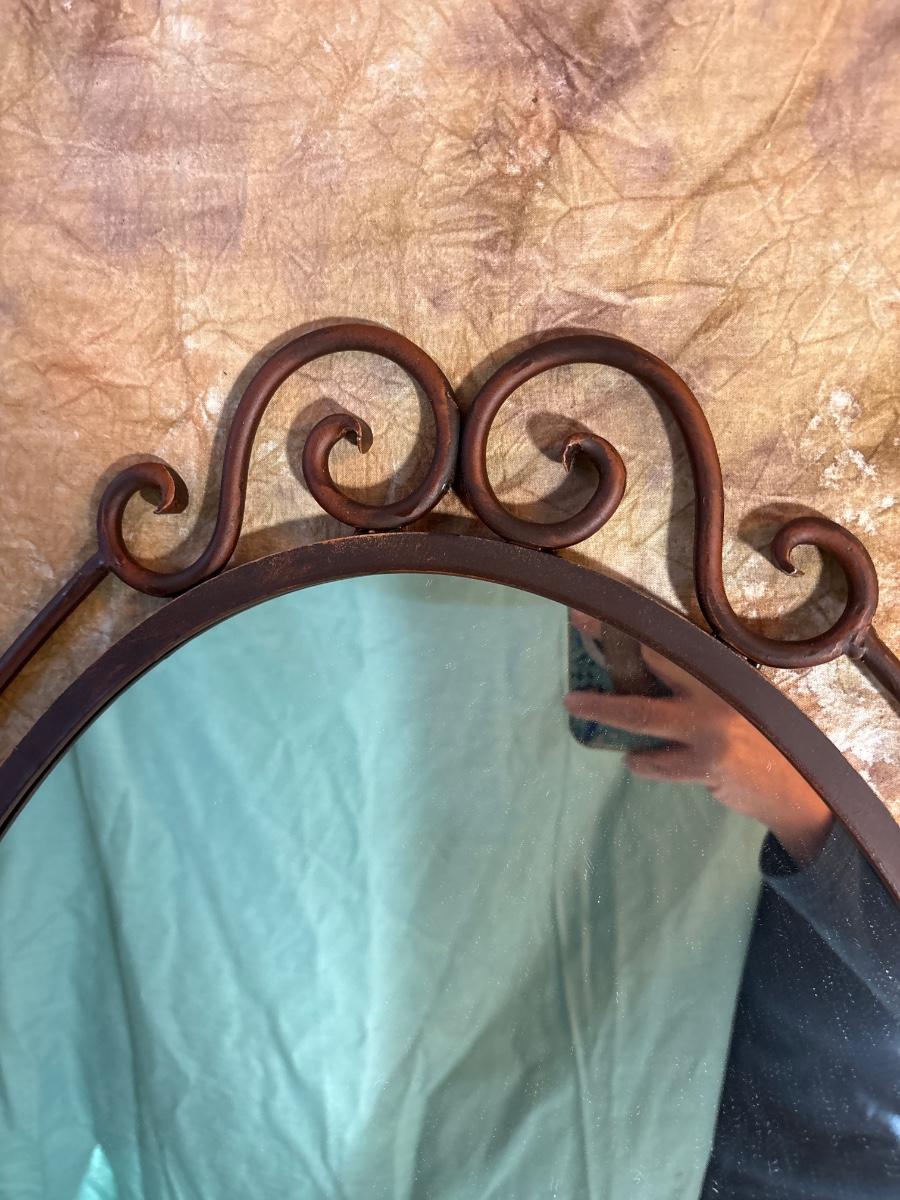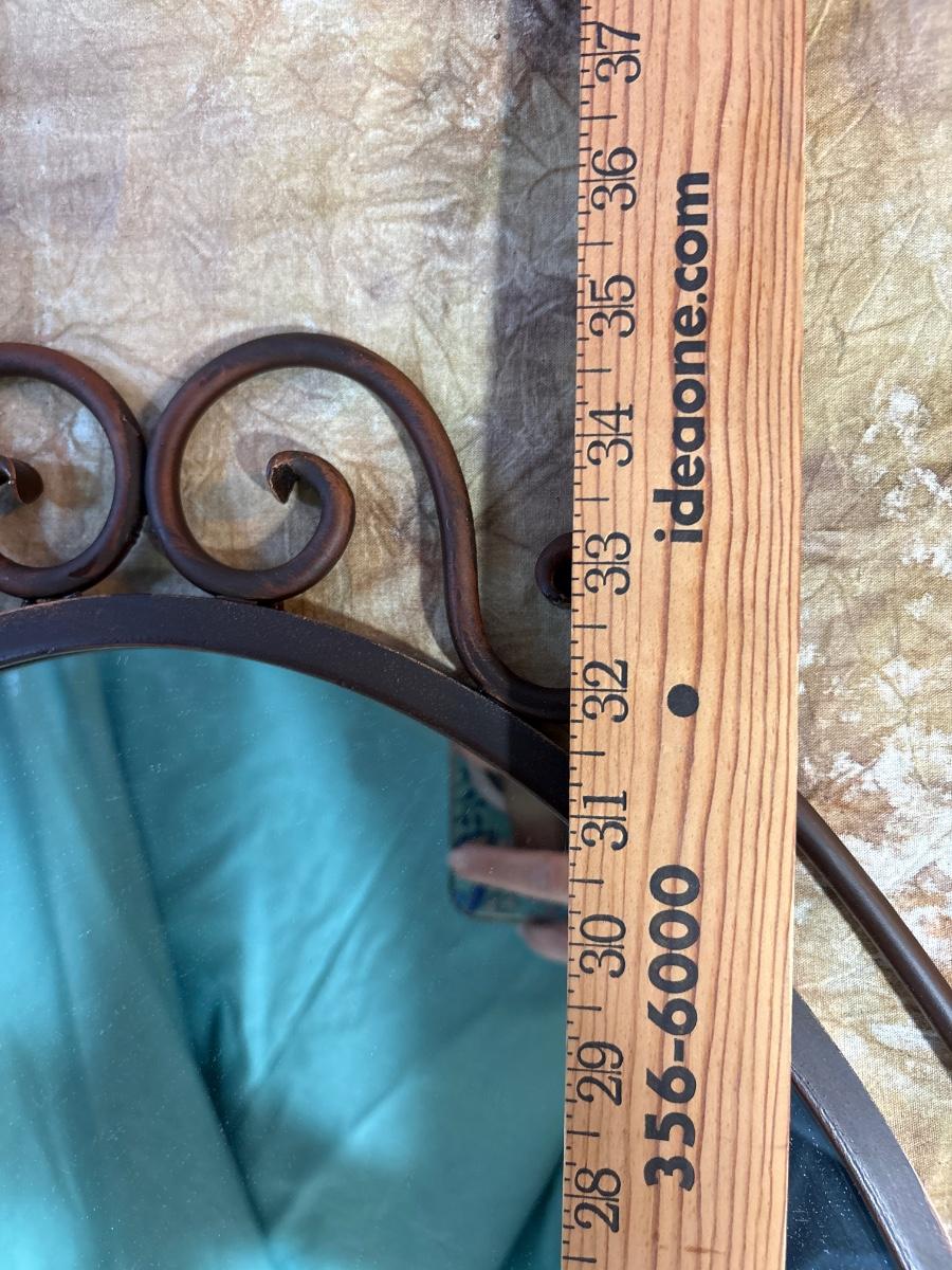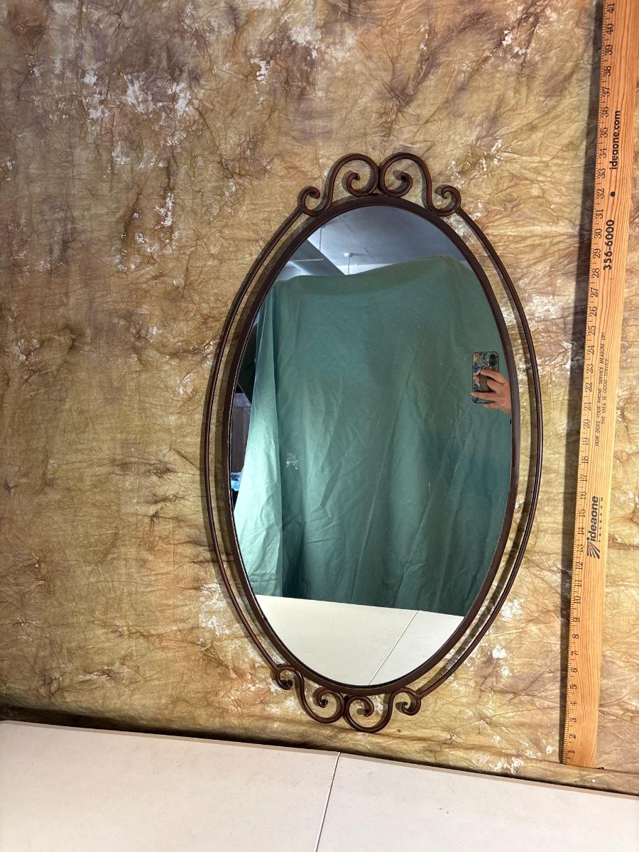 Metal trimmed oval mirror