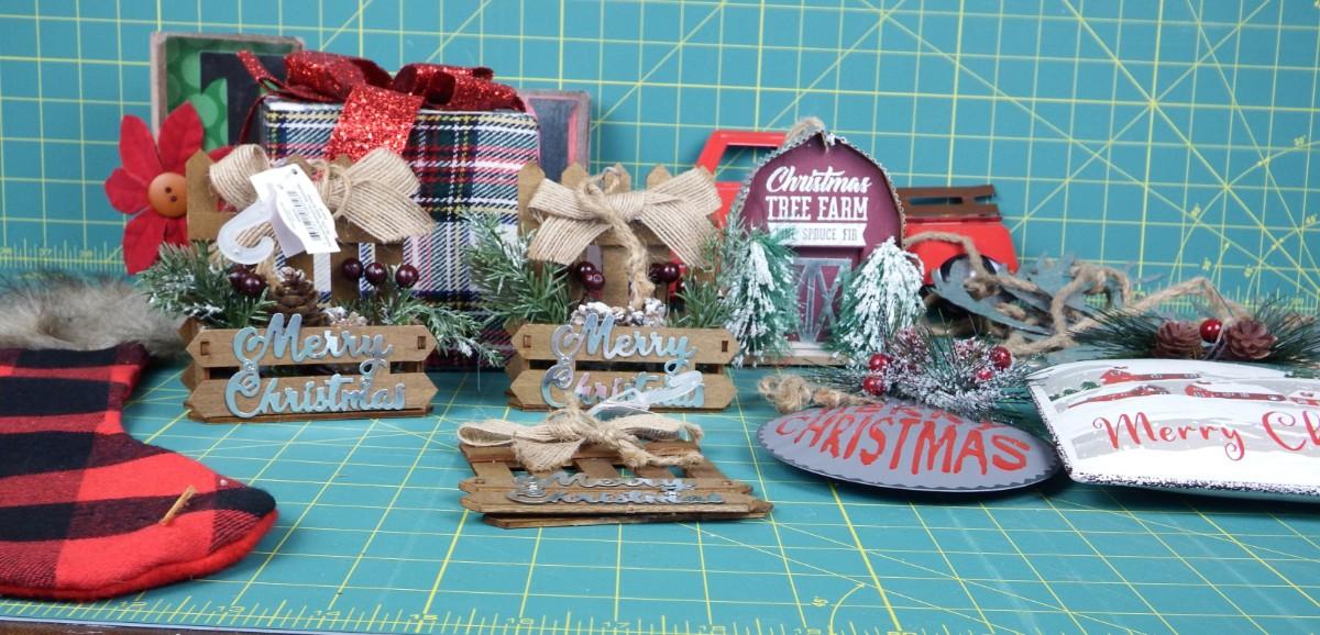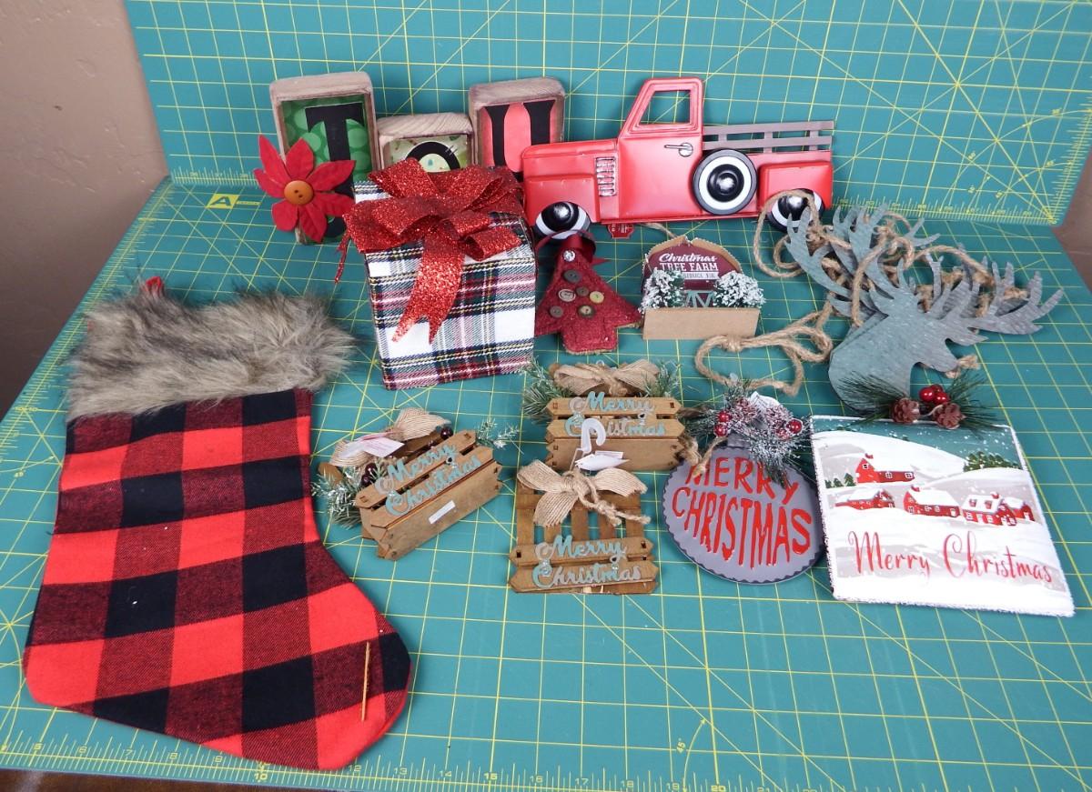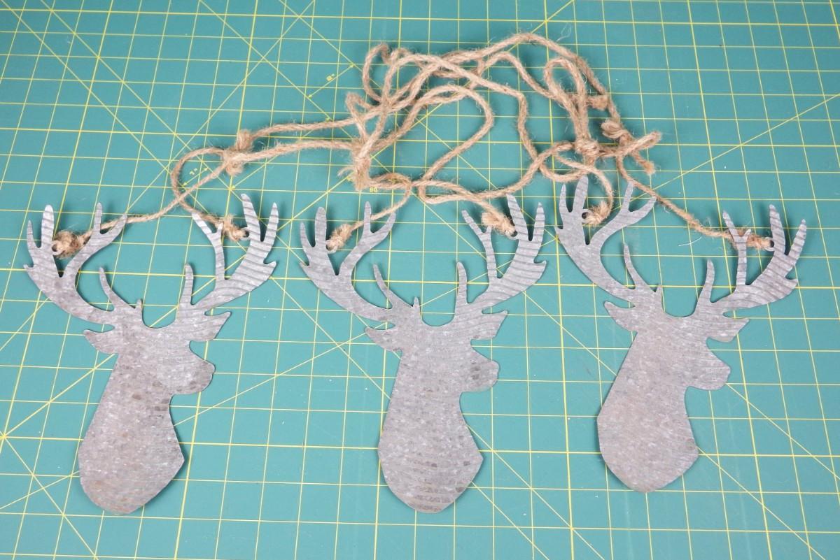 Deer are connected with rope like a garland. Truck and some other items are new.