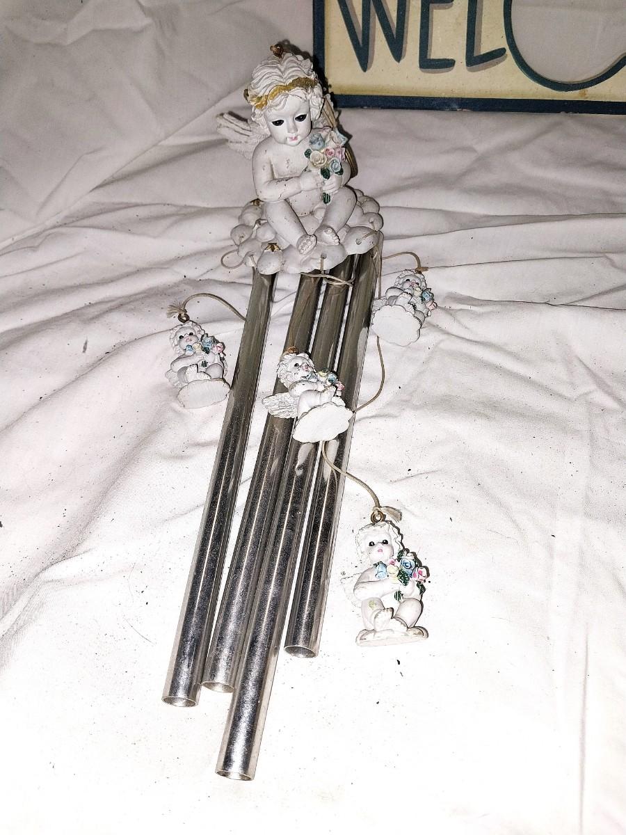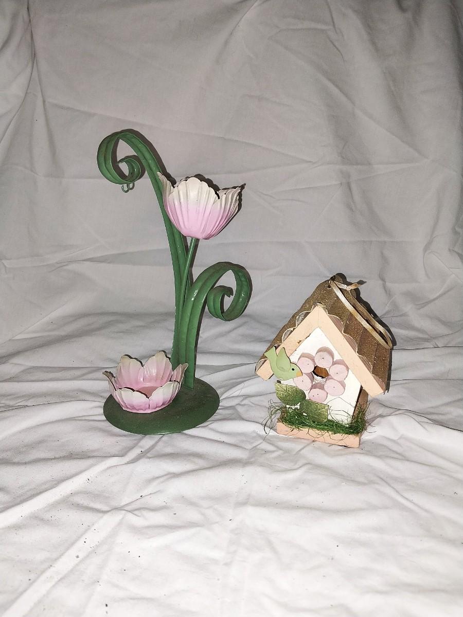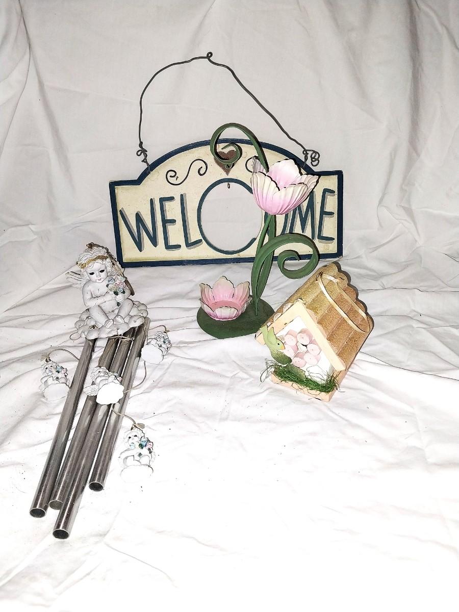 METAL TULIP-BIRDHOUSE-ANGEL CHIMES AND WECOME SIGN