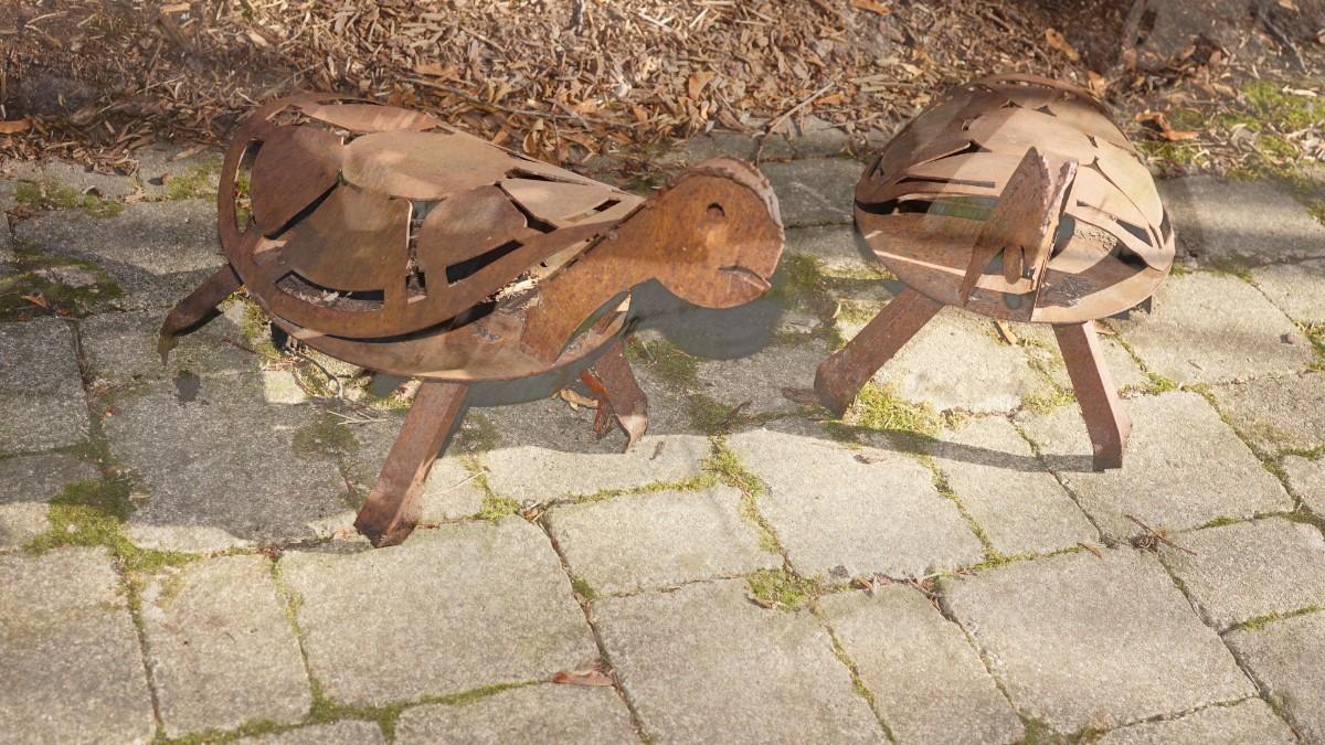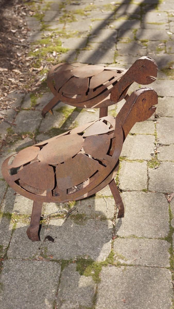 very well constructed heavier metal turtle sculptures. These are a medium size of 21" in height at the head and about 22" in lenth,