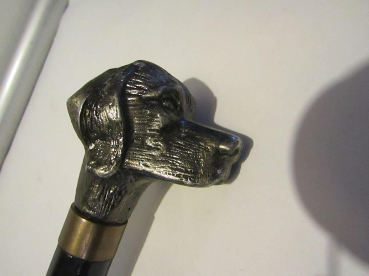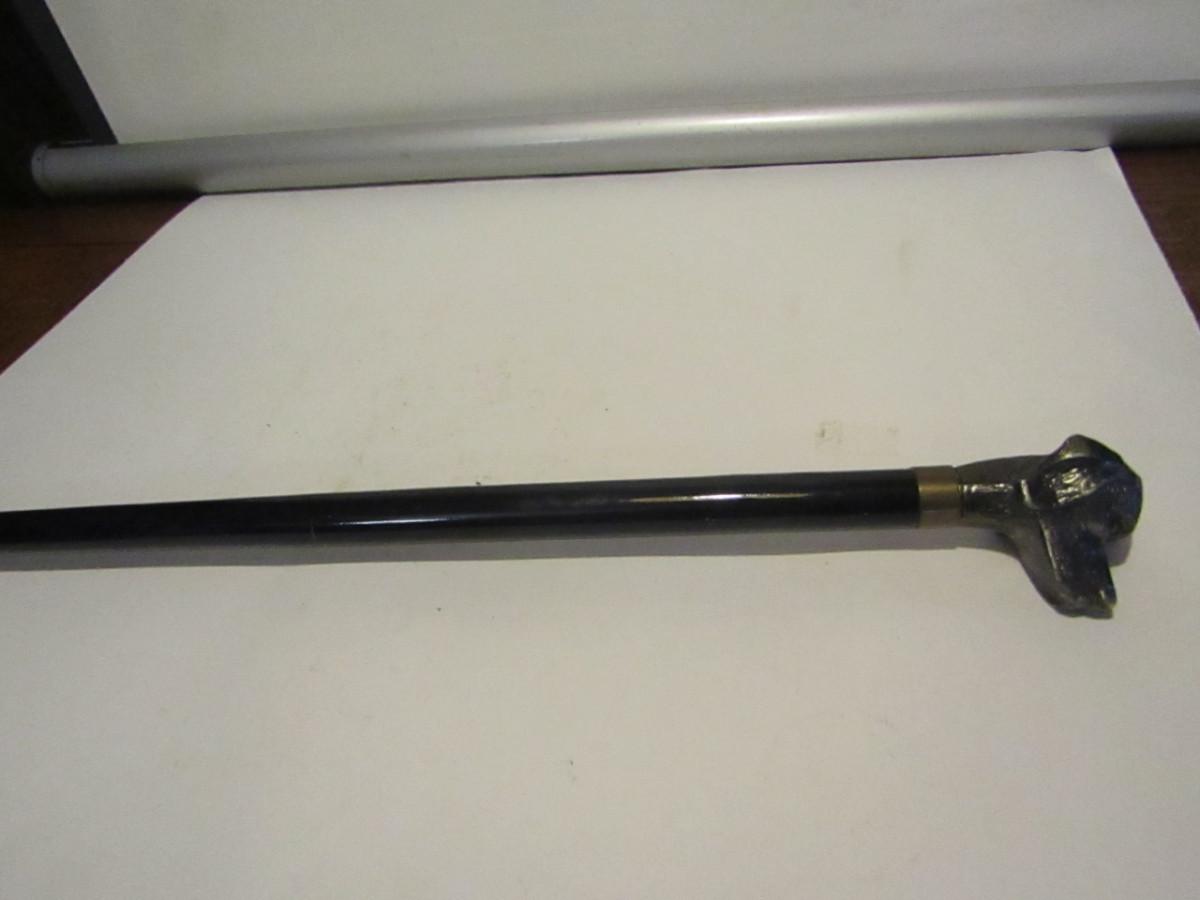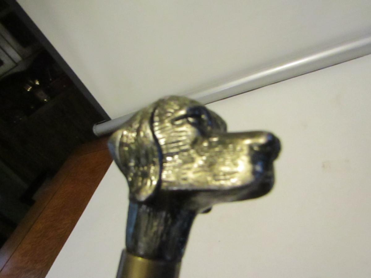 Metal Walking Stick- Dog Design Handle with Concealed Cutlery- Approx 34" Long