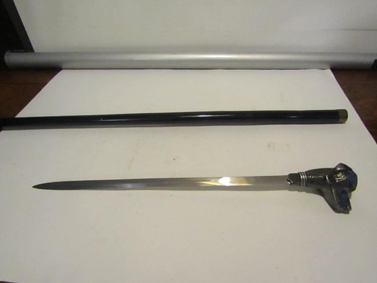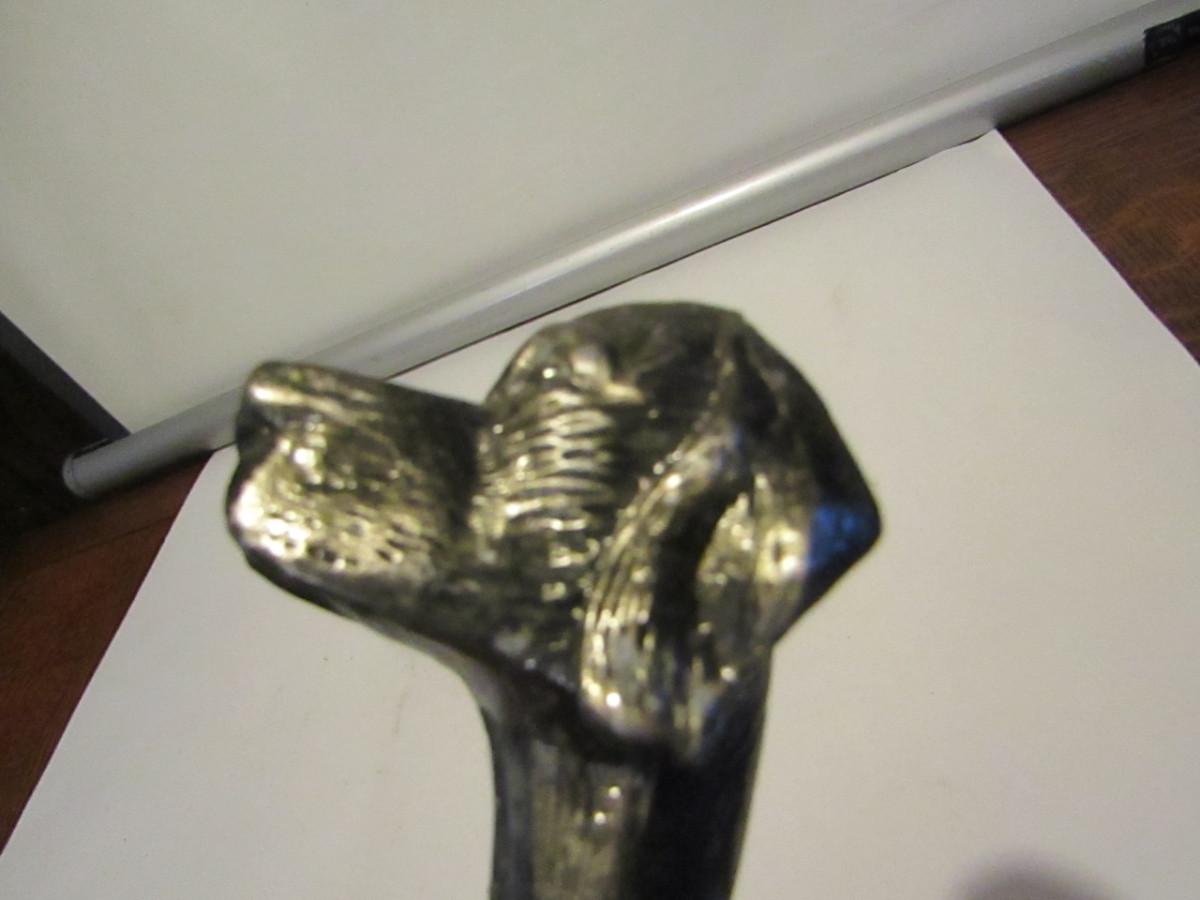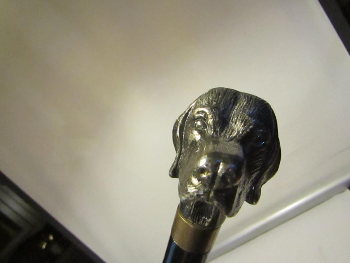 Metal Walking Stick- Dog Design Handle with Concealed Cutlery- Approx 34" Long