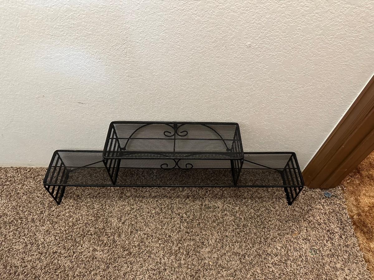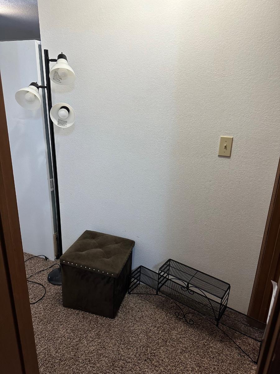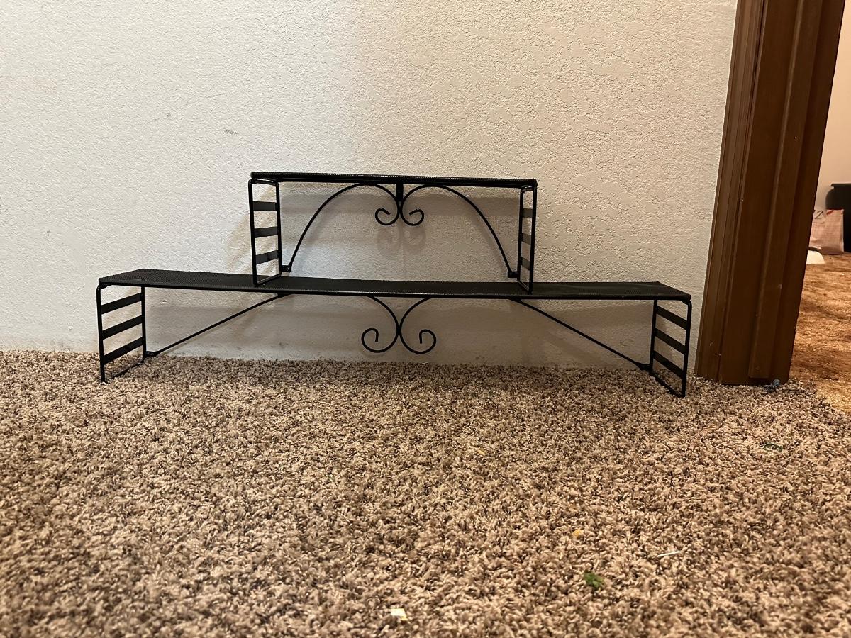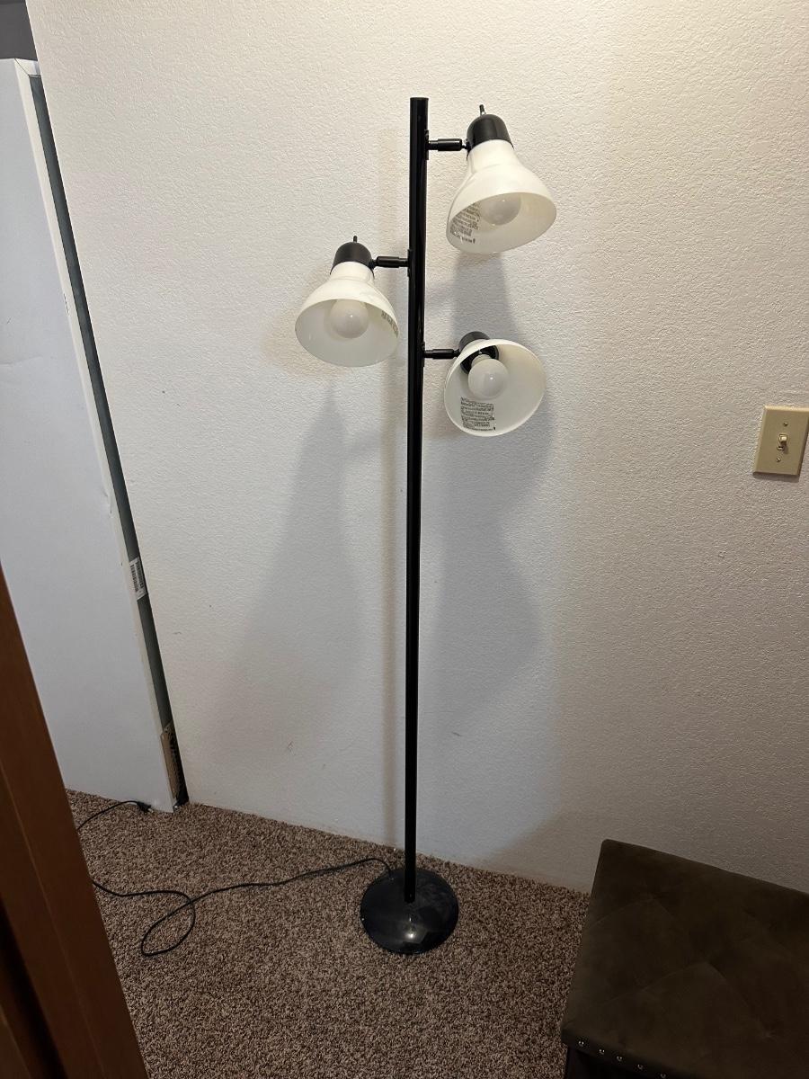 METAL WALL SHELF, STORAGE CUBE AND 3 LIGHT FLOOR LAMP