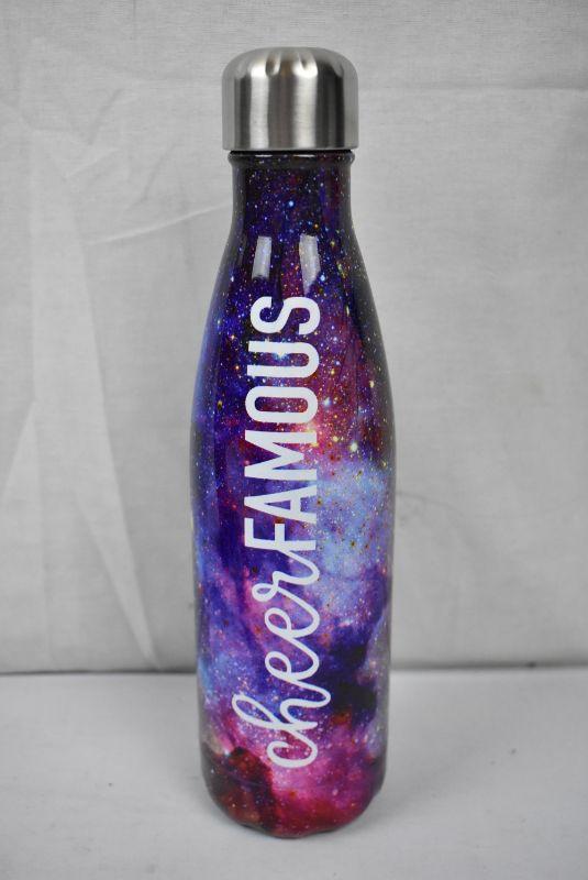 Metal Water Bottle, Galaxy Print with "Cheer Famous" - New