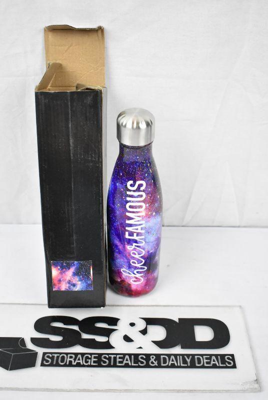 Metal Water Bottle, Galaxy Print with "Cheer Famous" - New
