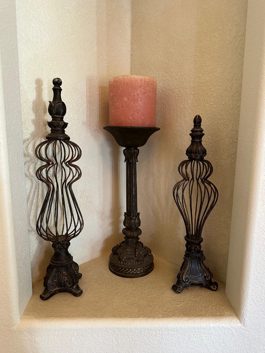 METAL WIRE FENIALS AND A CANDLE HOLDER
