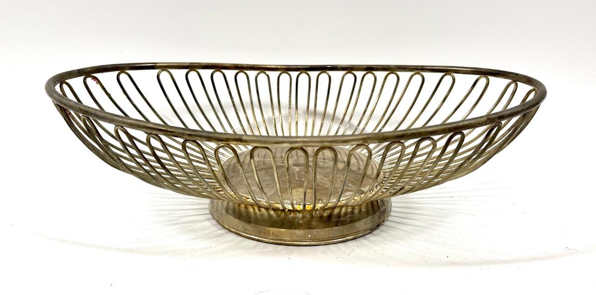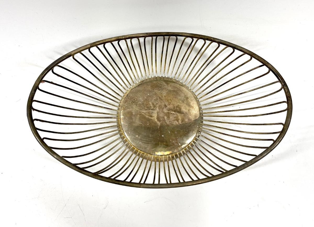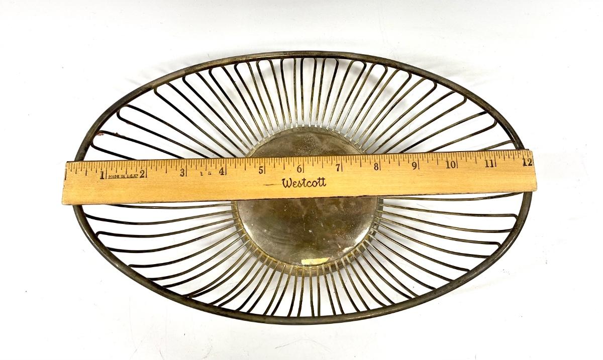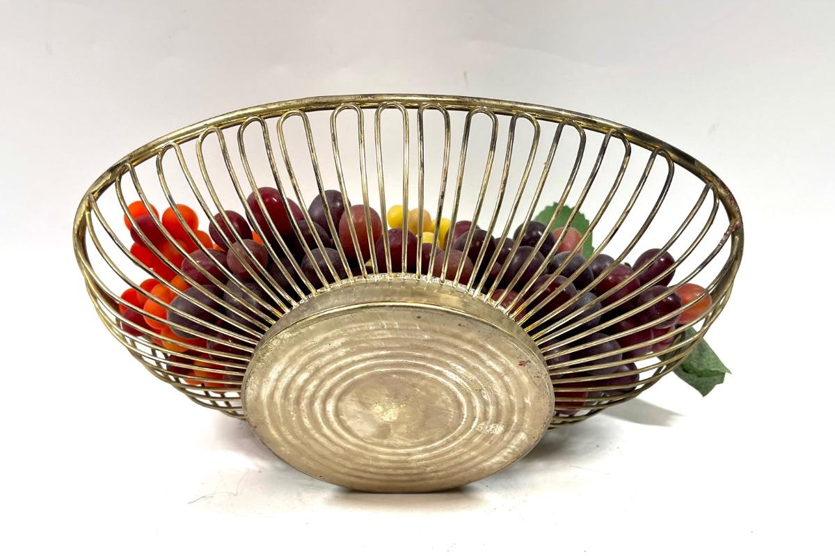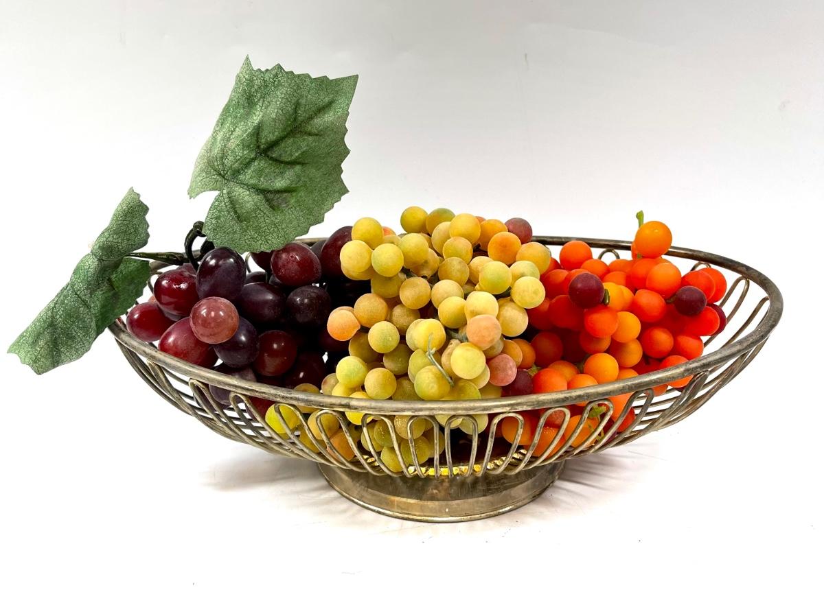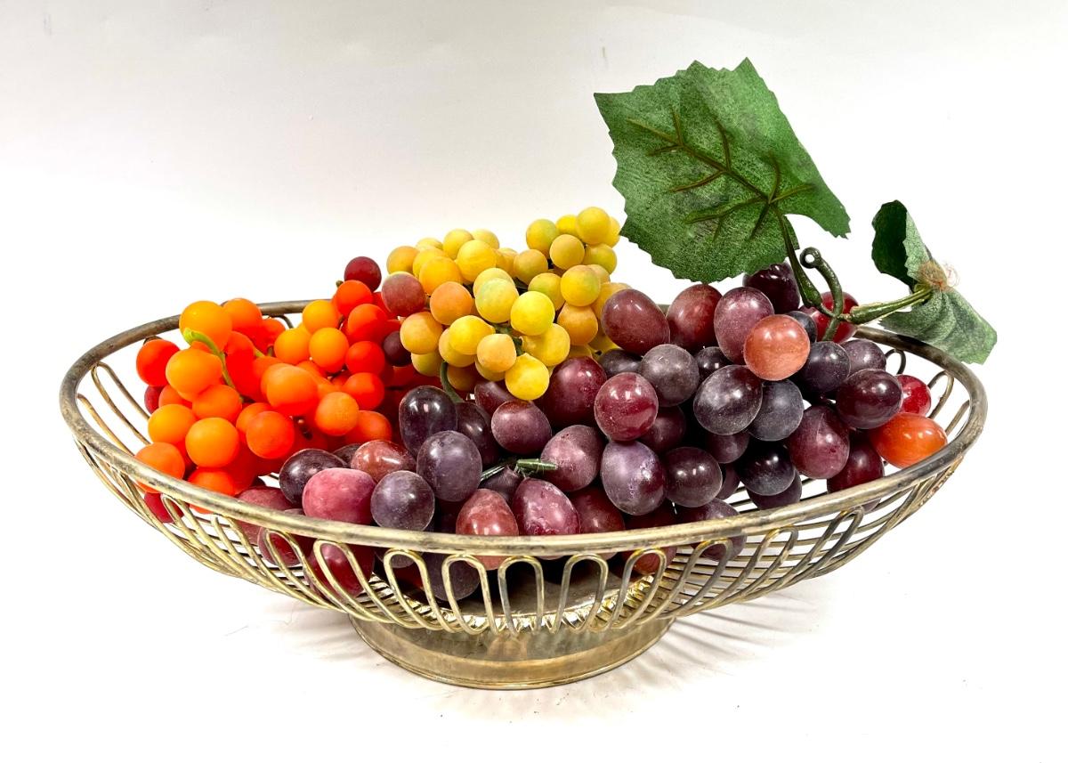 Metal wire oval shaped fruit bowl with fake grapes multicolor