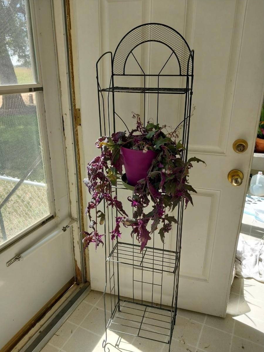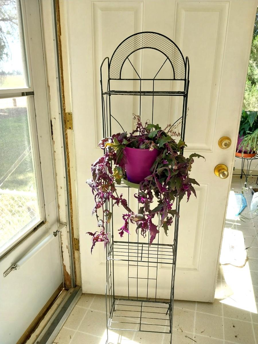 METAL WIRE THREE SHELF STAND AND LIVE POTTED PLANT