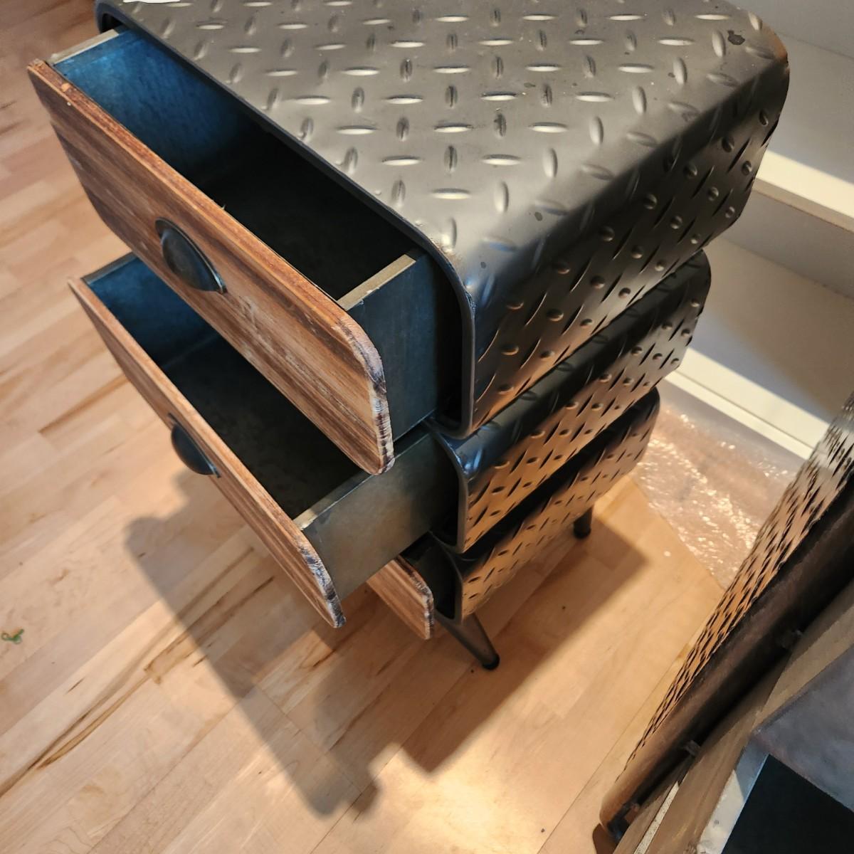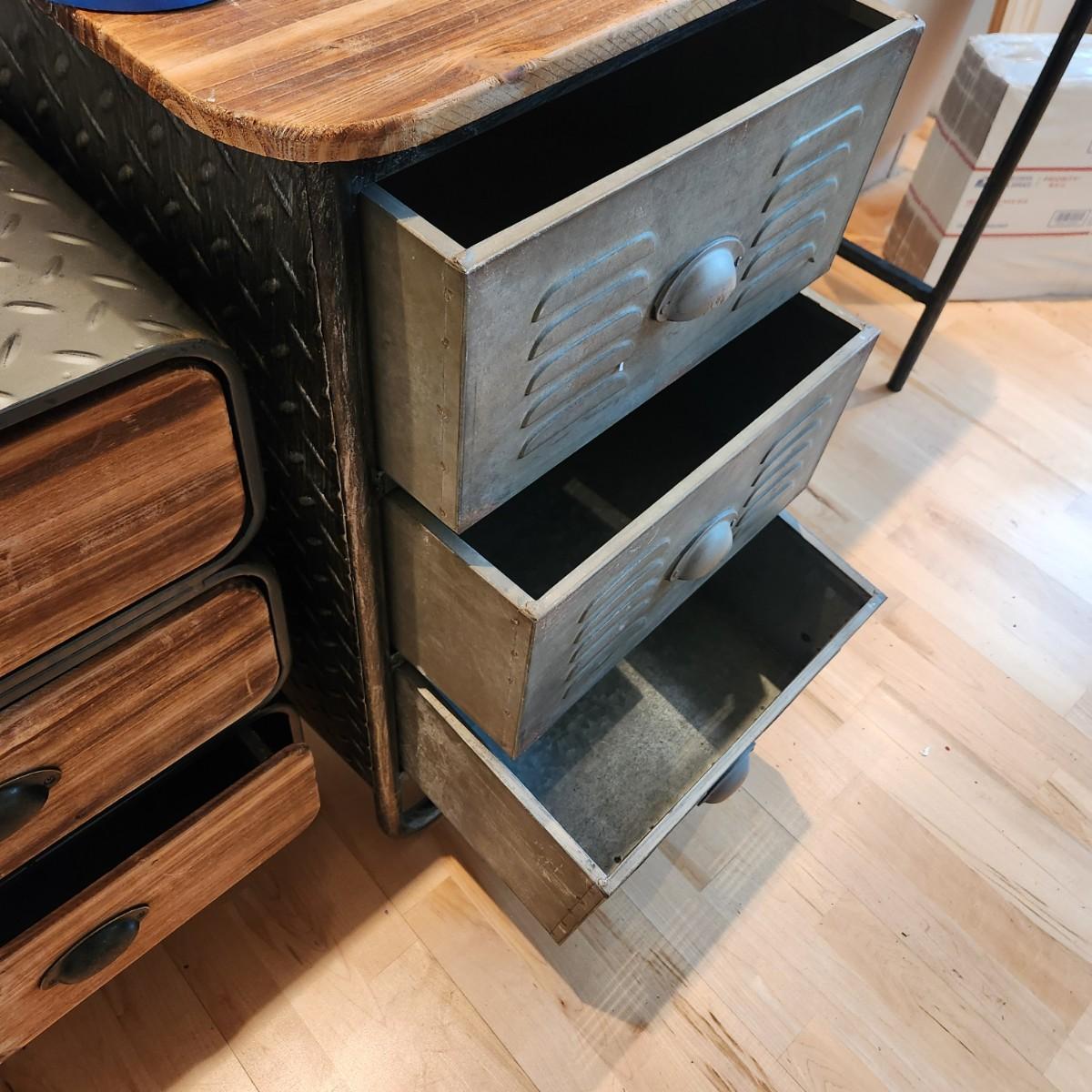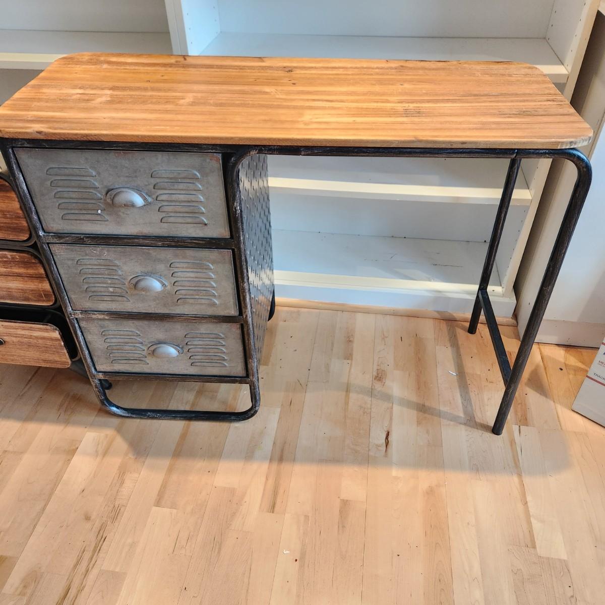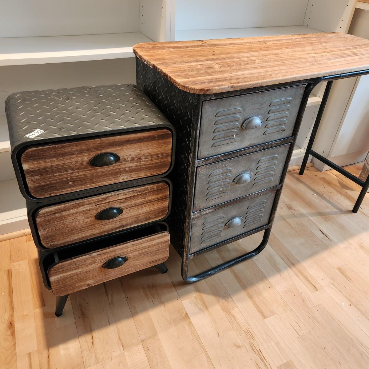 Steam Punk Style Metal & Wood 3 drawer Desk w 3 Drawer Storage Cabinet