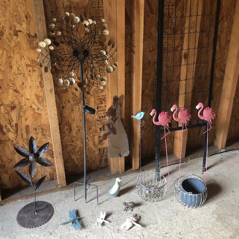 Lot includes an assortment of metal yard art. These unique pieces add a quirky touch to any yard. This lot is perfect for those who value originality and want their yard to look special. Tallest piece measures 16.5"W x 70"H. Small bug piece measures 3"W x 3.5"D x 2.5"H. Local pick up only.