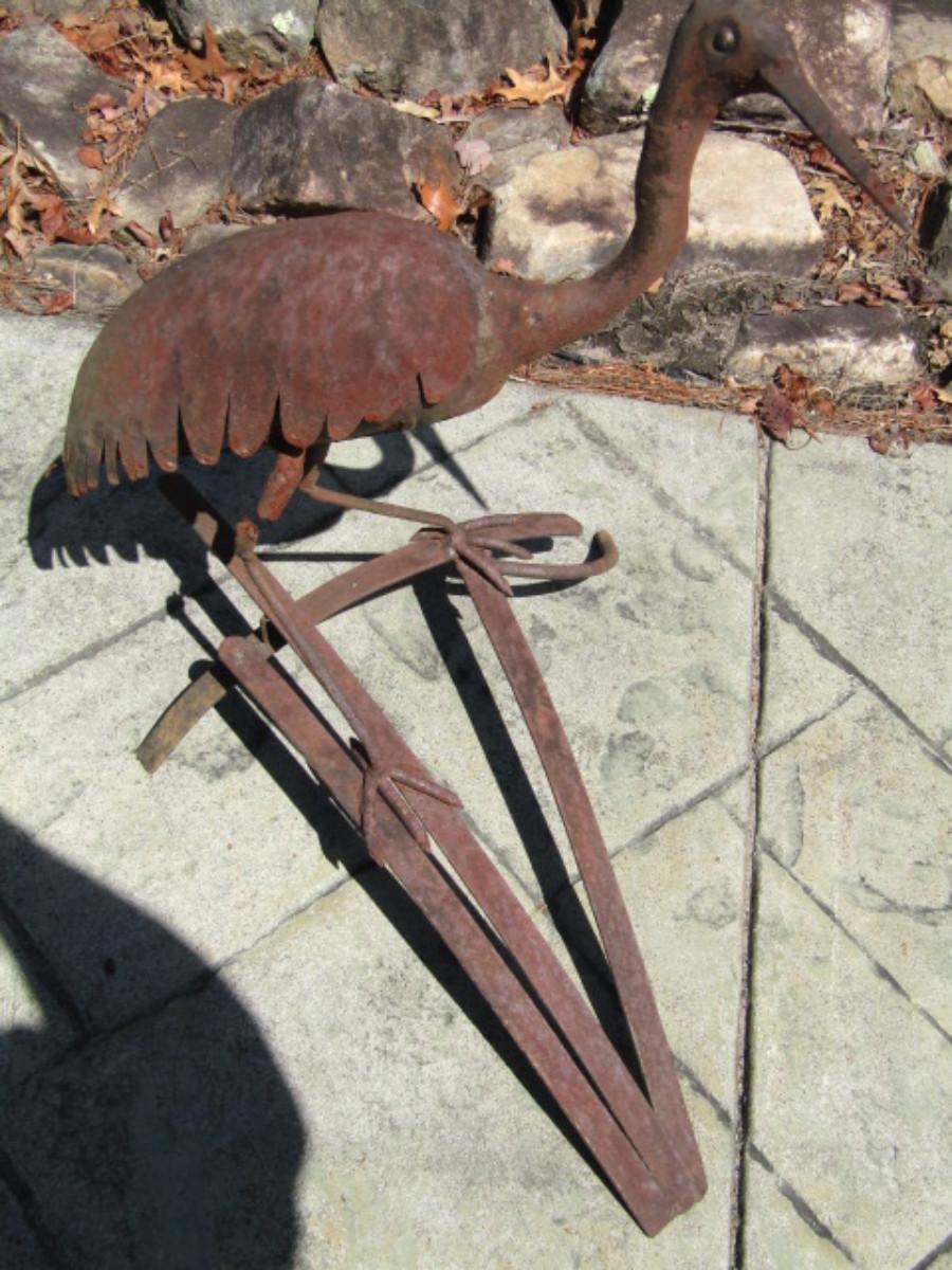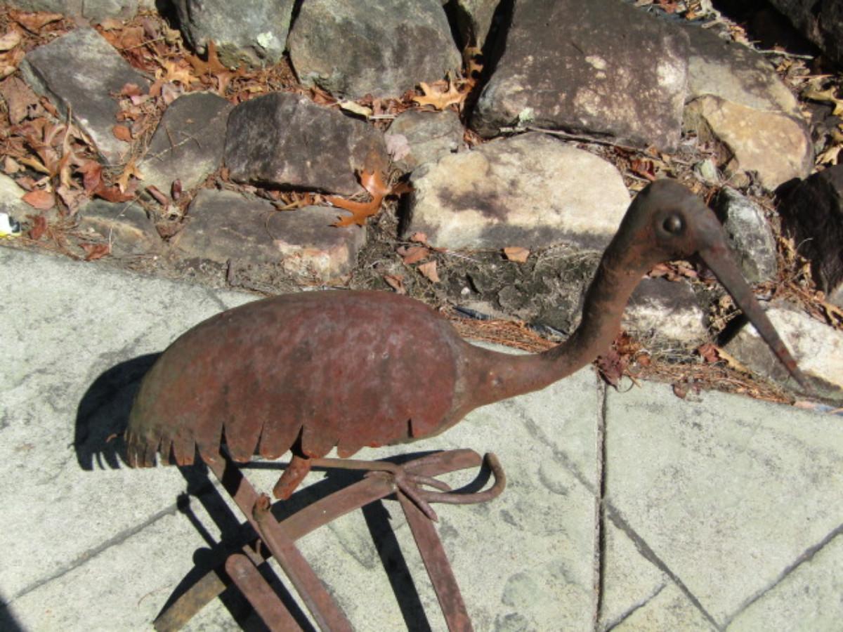 Metal Yard Art- Bird- Approx 21 1/2" Tall. Please see all pictures- item has rust and one leg is broken.