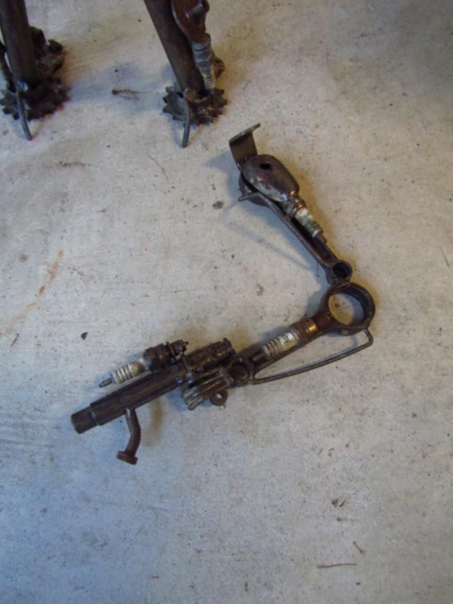Metal Yard Art- Man Made from Car Parts. Please see all pictures- Arm need to be reattached, but is present.