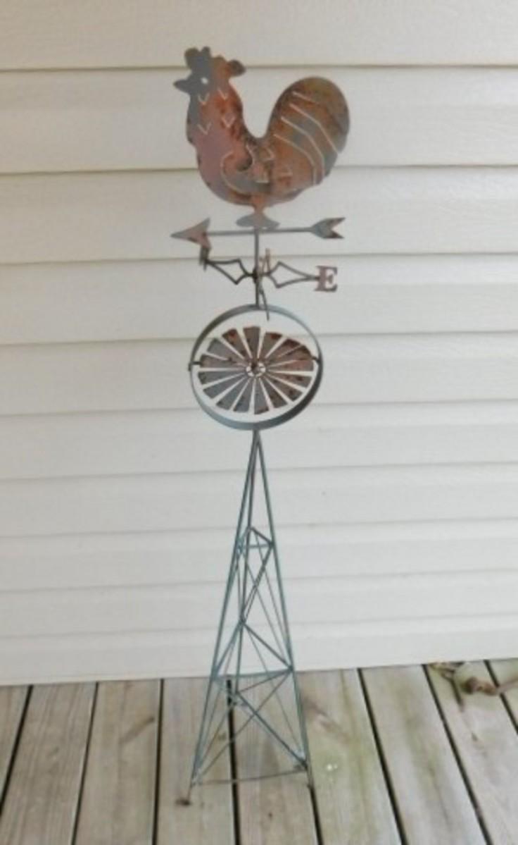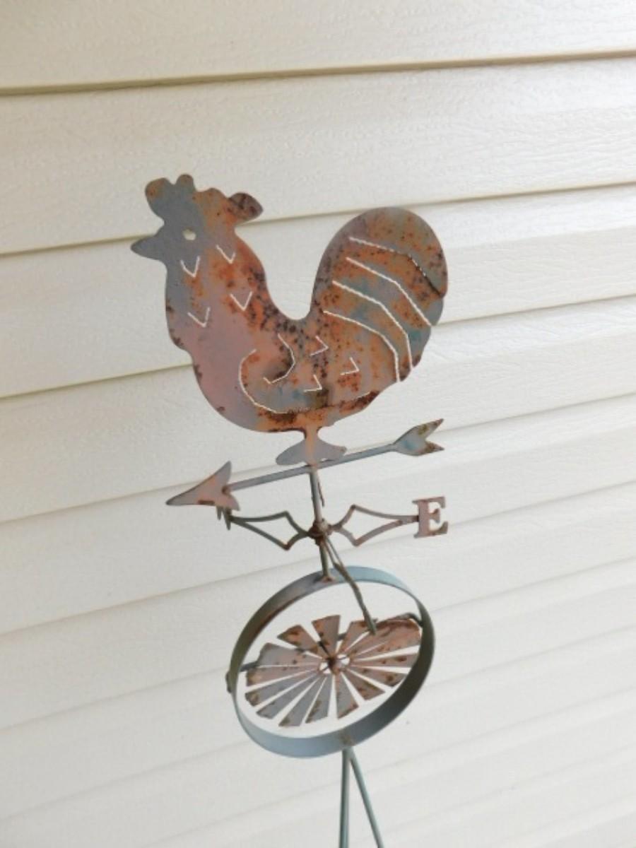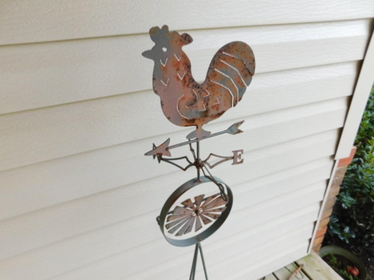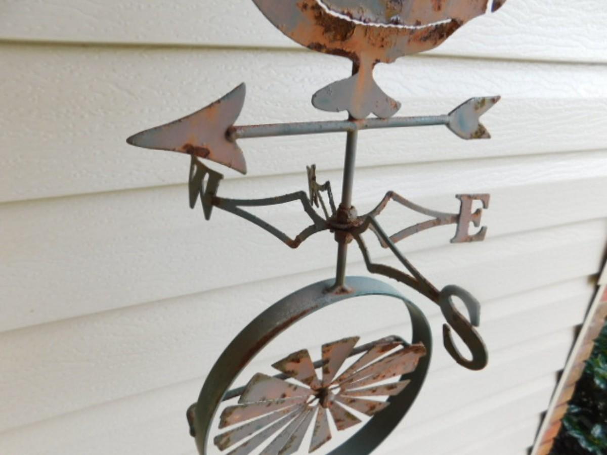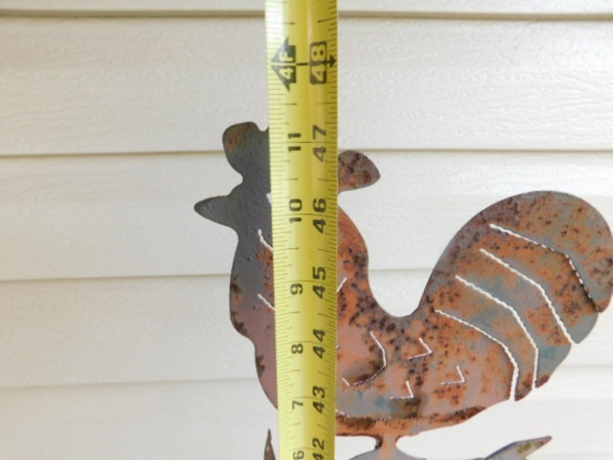 Metal Yard Art Rooster Weathervane 48" has some wear from being outdoors