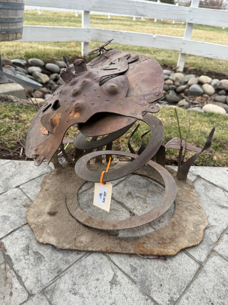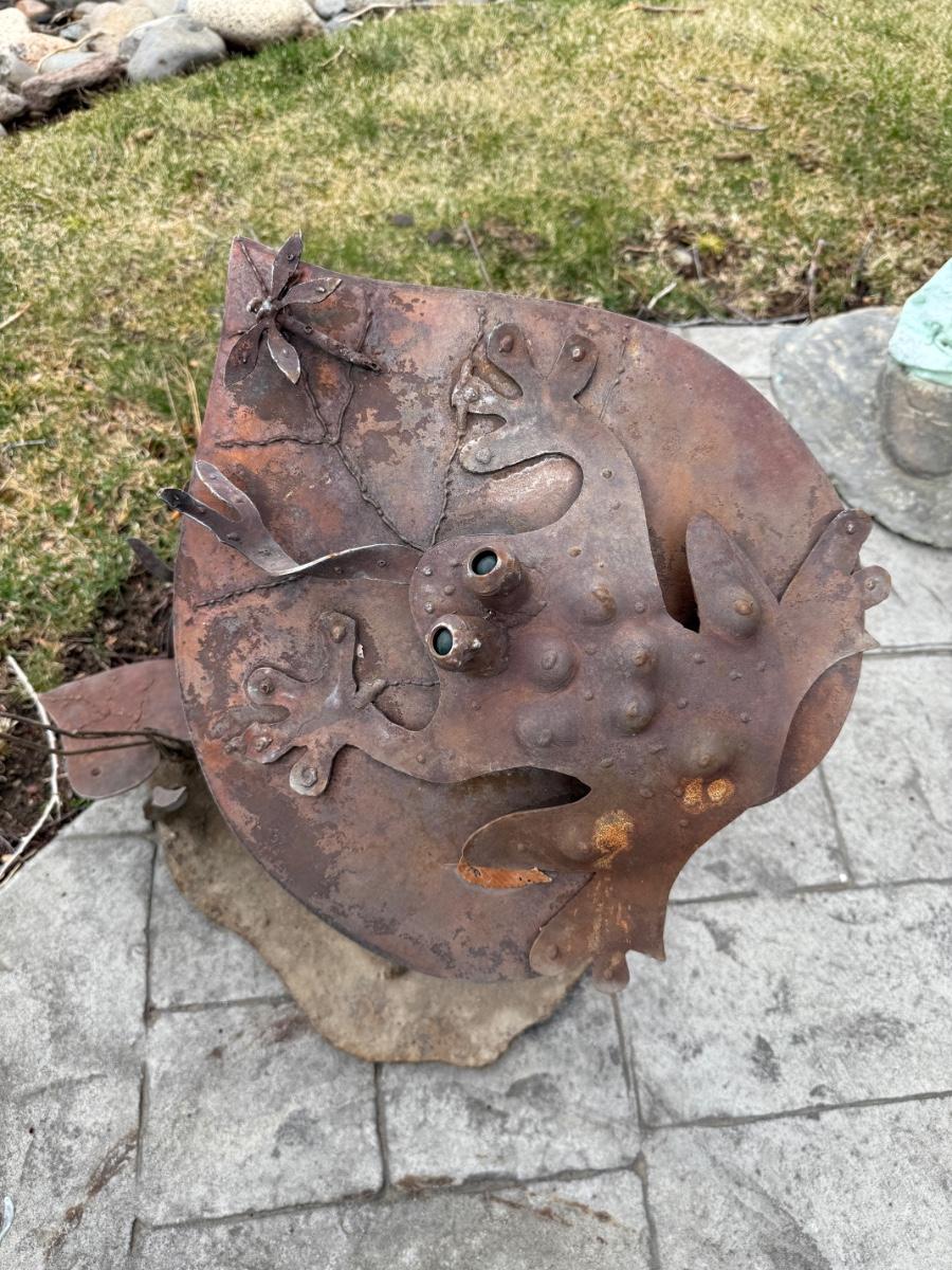 Metal Yard Frog on Lilly Pad springing type yard Art
