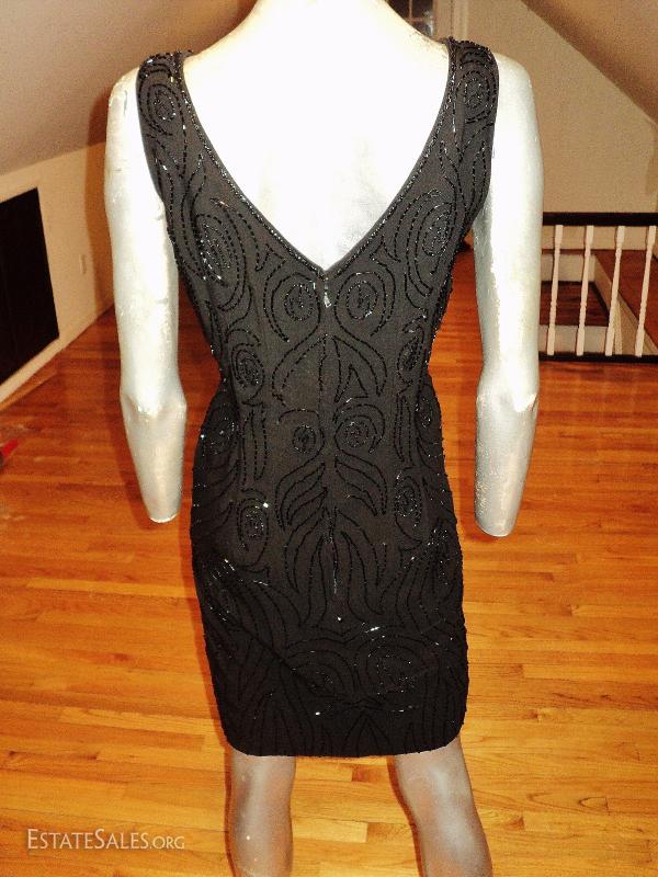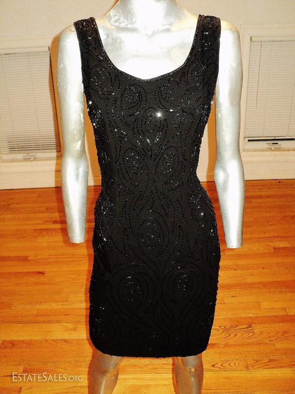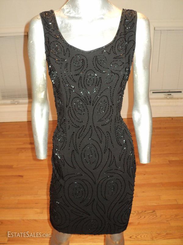 From the late 1940's to early 1950's amazing design beaded embroidery of black onyx bugle beads in a swirl design . All lined and a stunner.