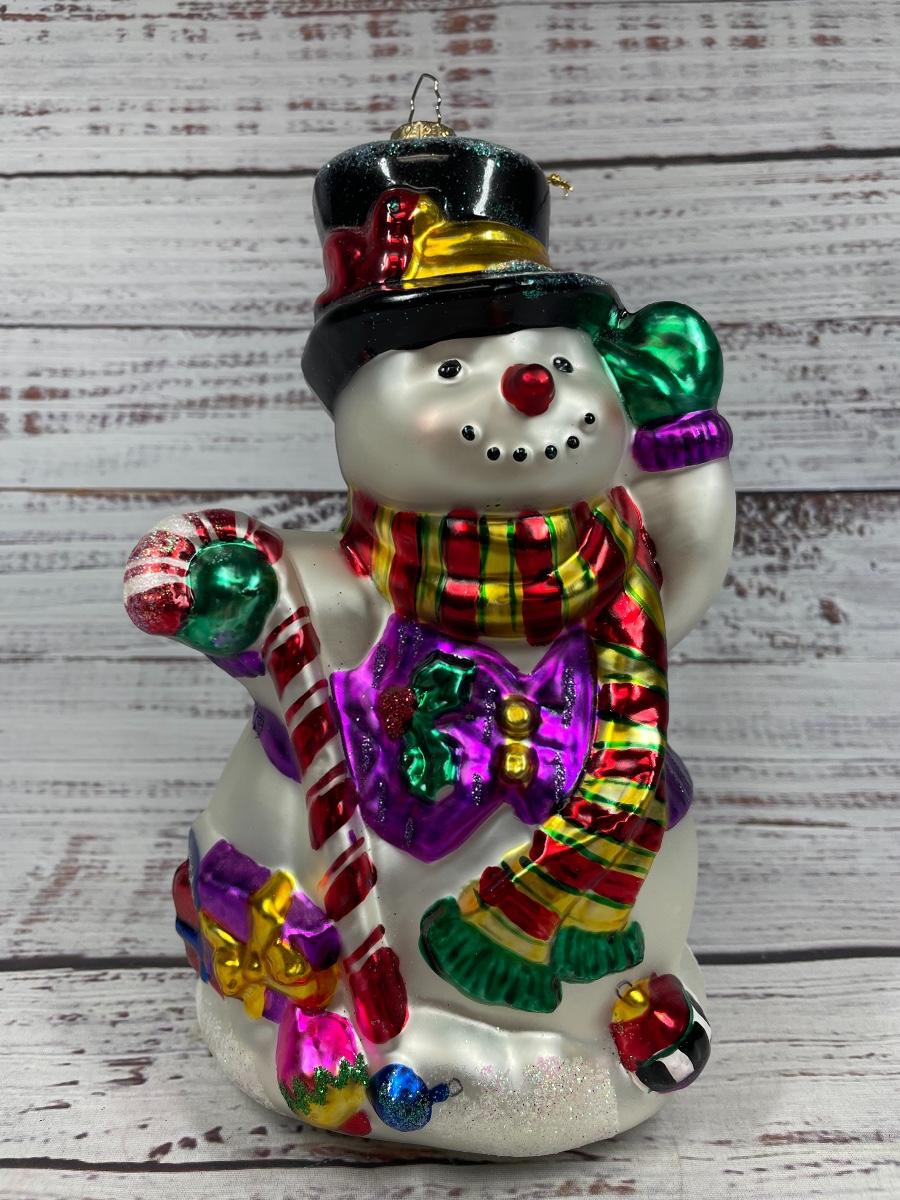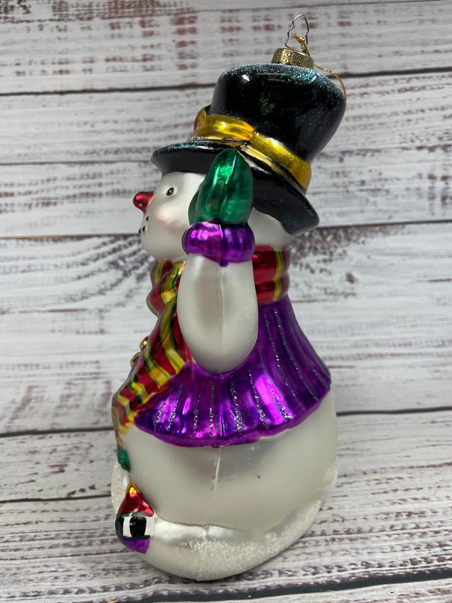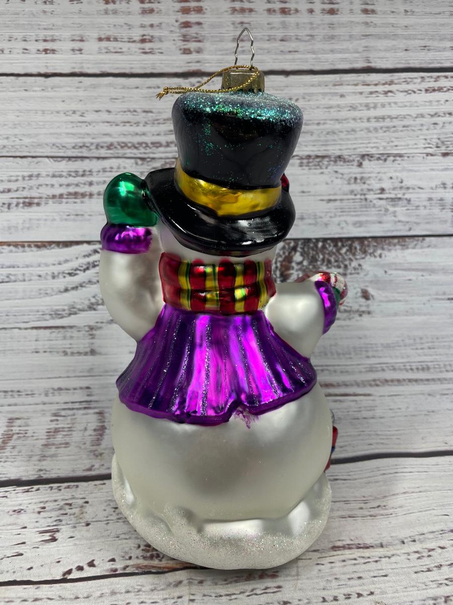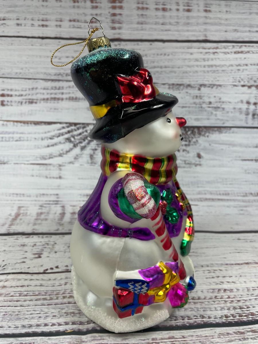 Metallic and Sparkly Glass Snowman Holiday Christmas Ornament