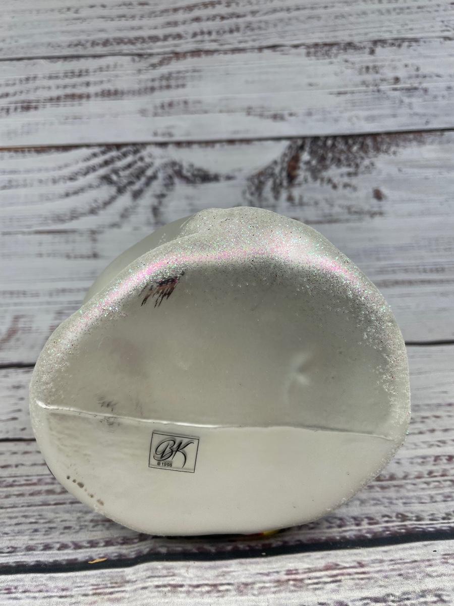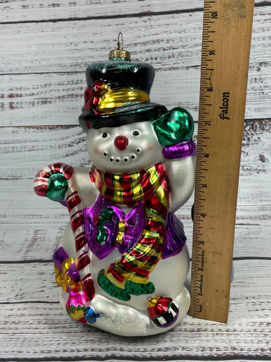 Item is in great condition but the sparkles do come off. The ornament is big and can be used as a statue or decoration as well. The snowman is approximately 9” tall.