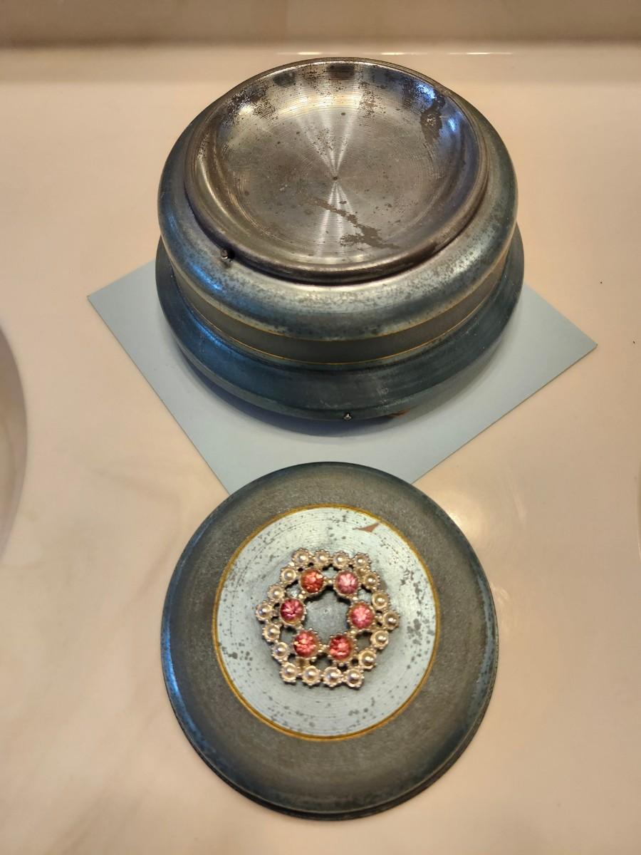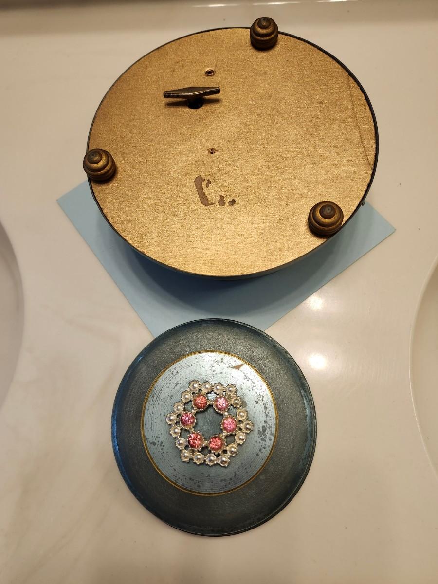 . Unbranded vintage Silvertone Powder Puff – Trinket Box- Music Box (wind up)